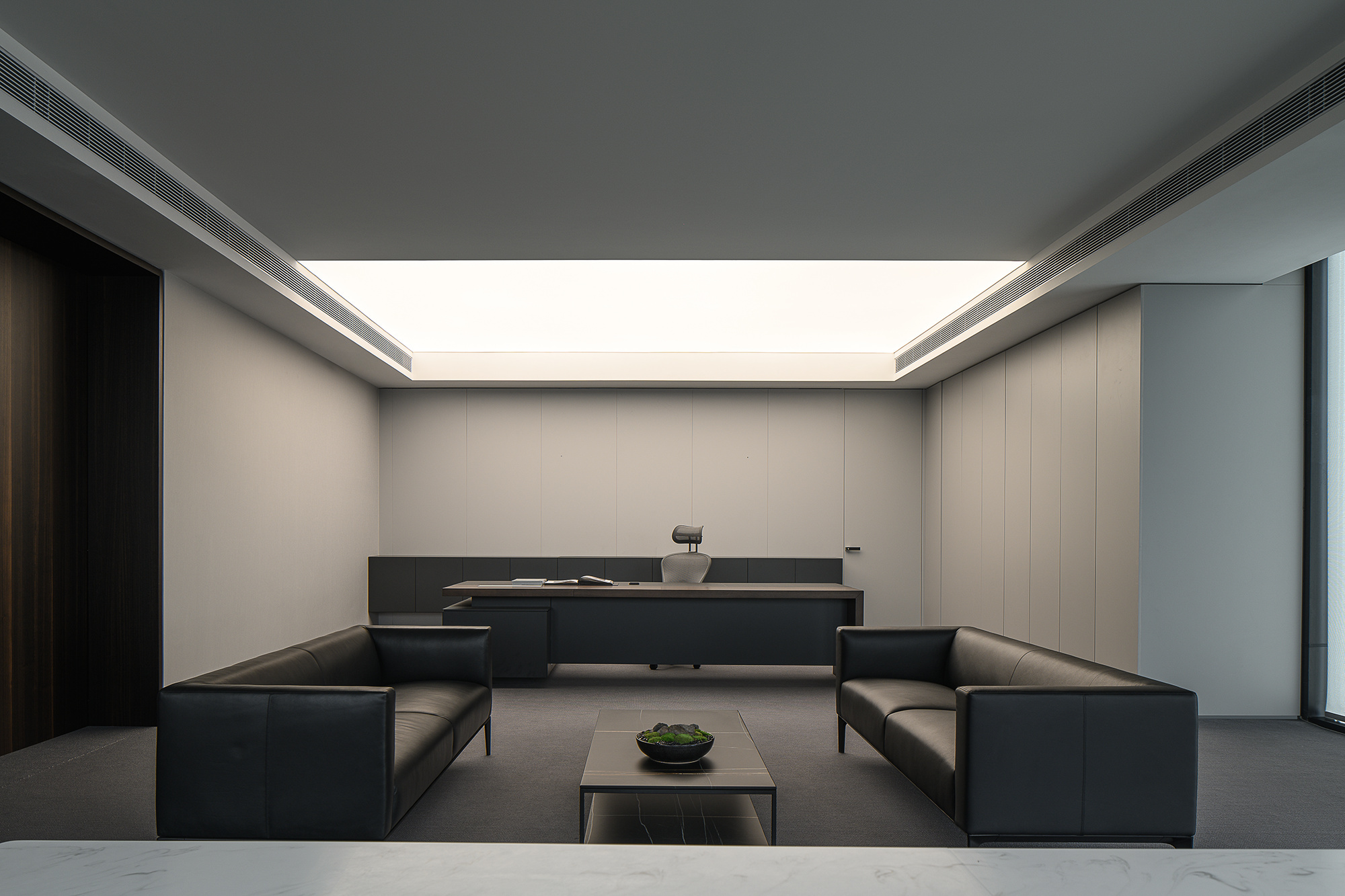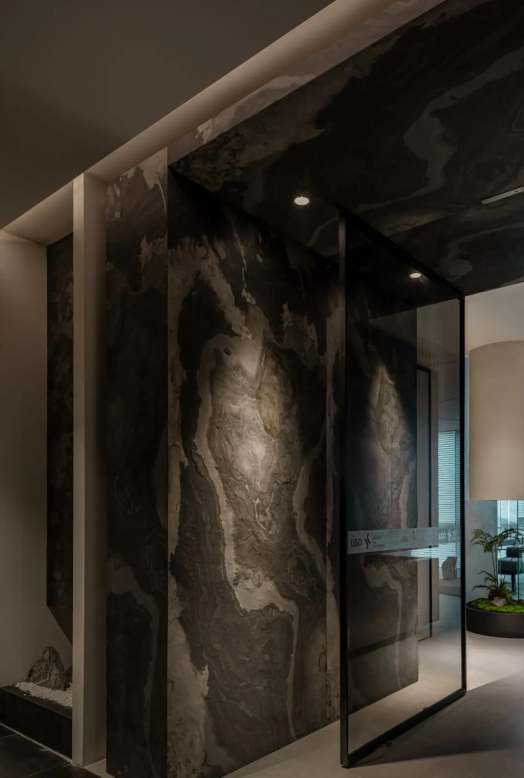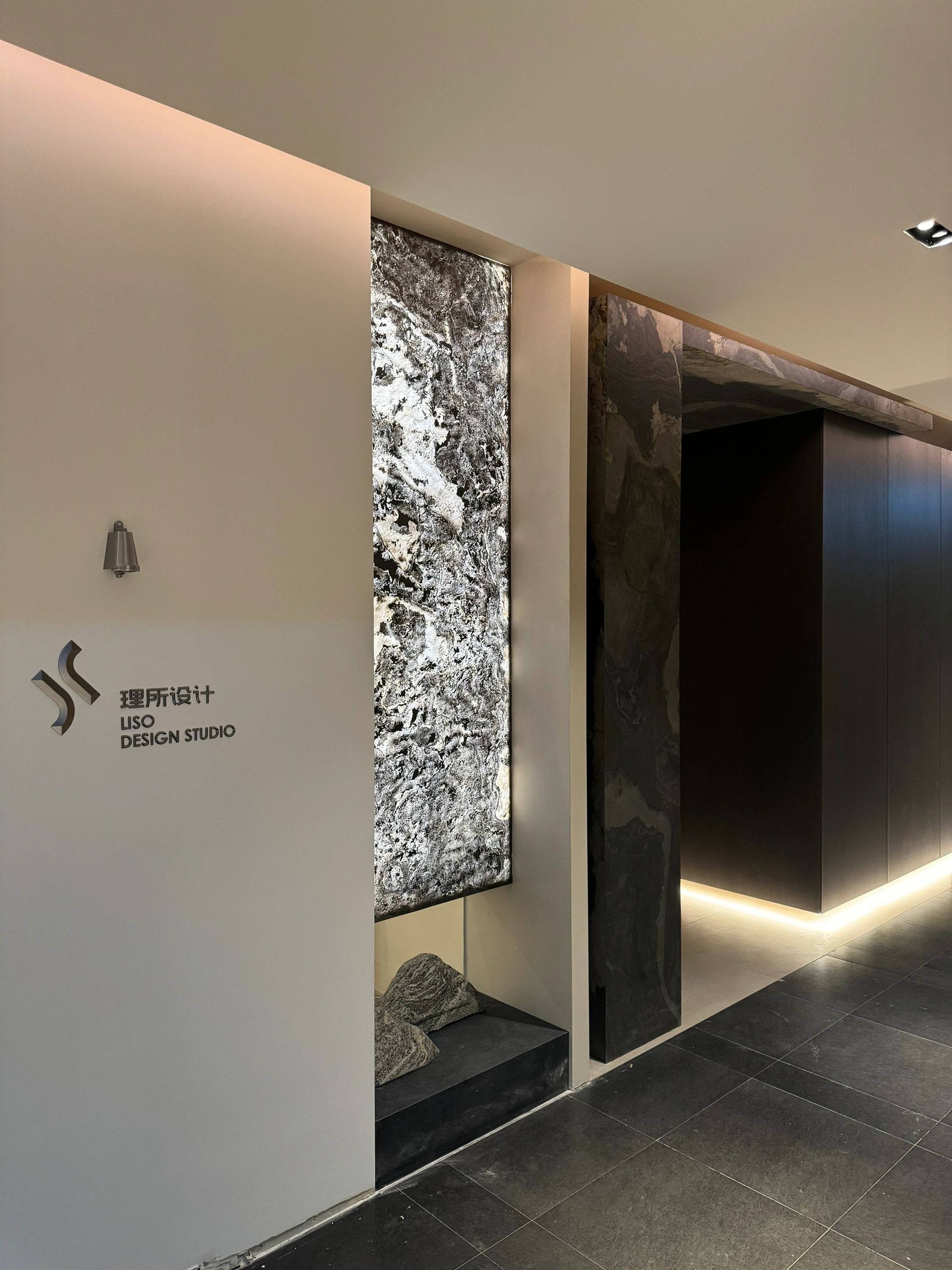 理所设计办公室探讨平衡与多样化,用最少的设计赋予空间无限想象,呈现更具创新与品质感的办公场所,聚焦创造力与空间的灵动体验。天然石皮以艺术化的姿态,在入口构建视觉焦点,洞见平衡之美。取消掉常规大门的形式,前廊内退,递进仪式感并划分空间层次,进而以景观小品作点睛之笔。工作室融入智能灯光系统,可调节灯光照度和色温,预设会客、参观、办公、休憩等多种场景模式。统一的色调视觉之下,设计巧妙融入不同肌理的材质,丰富细节触感,展现和谐统一的整体气质,同时为到访客户展示新材料的运用与工艺技术。
