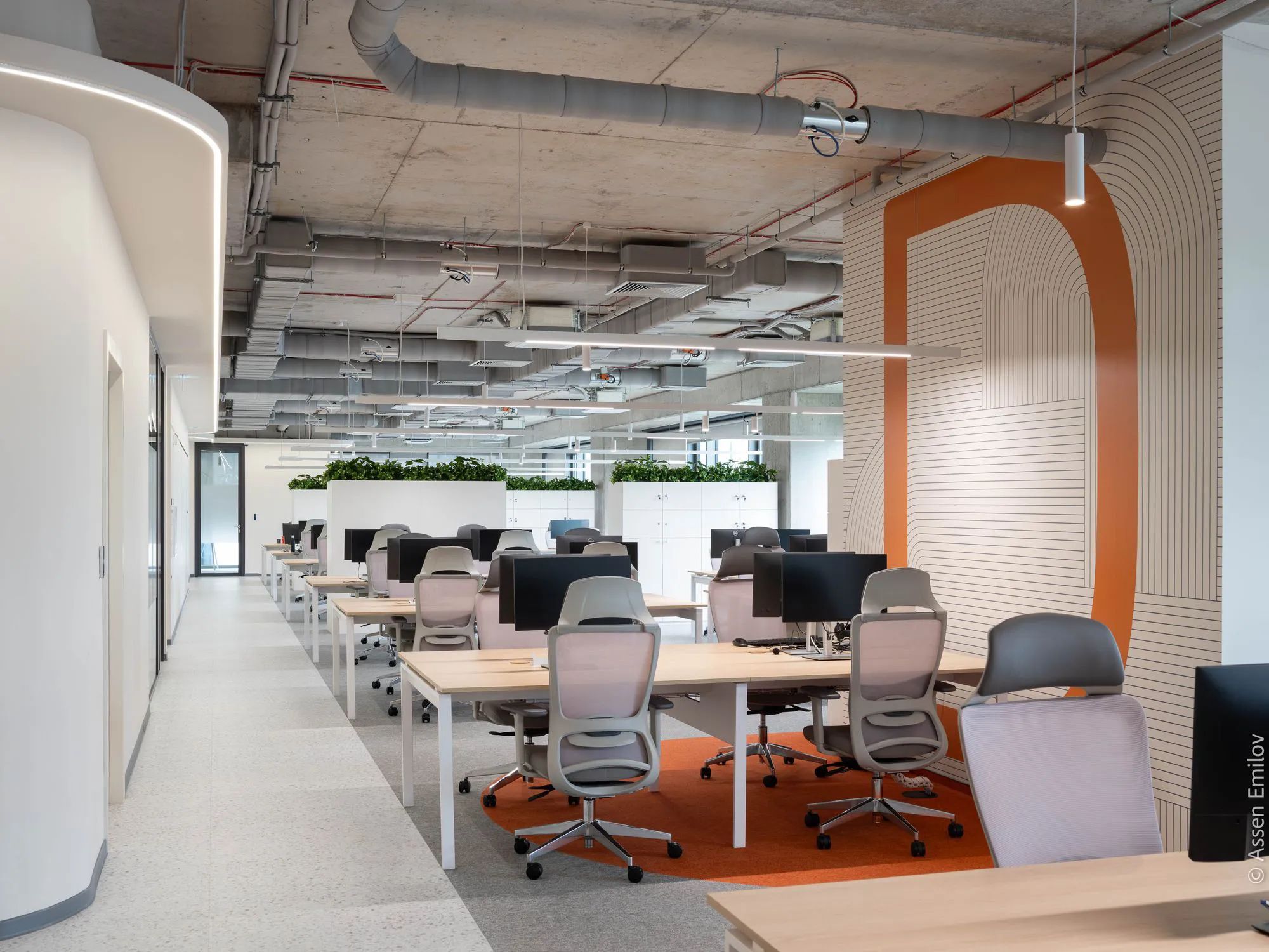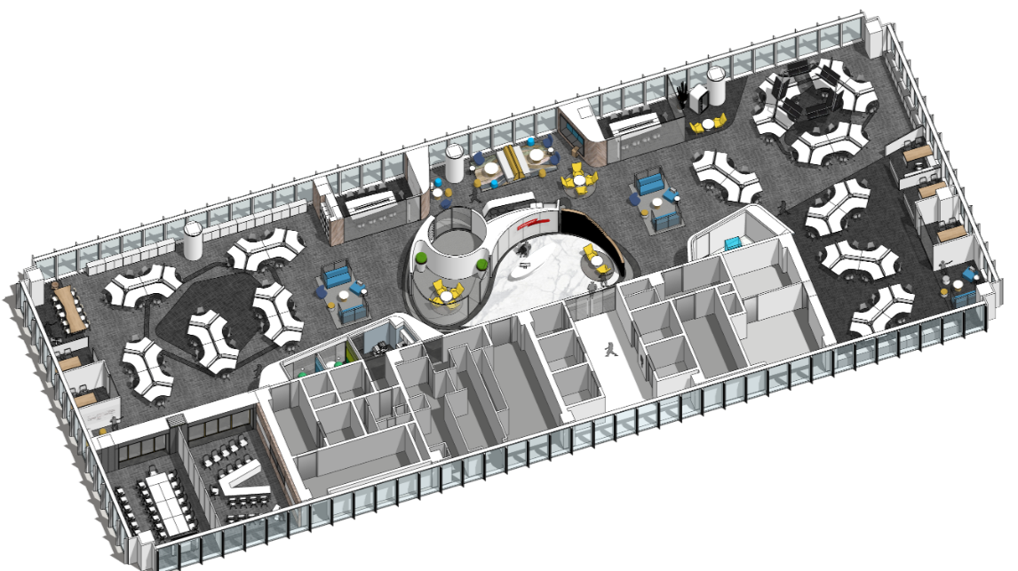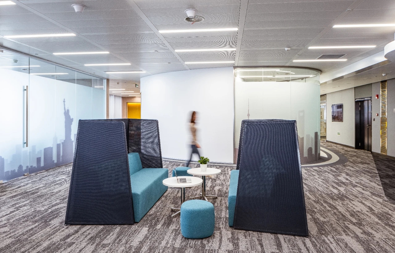 以开放式平面规划创建一个现代的办公环境,管理层与员工一起在开放的空间里共同工作。为了支持这种全新的办公理念,前沿科技的介入可以确保对空间的最佳利用。新的规划创建了各种不同大小和私密等级的多样化空间去支持个人和团队的工作。
