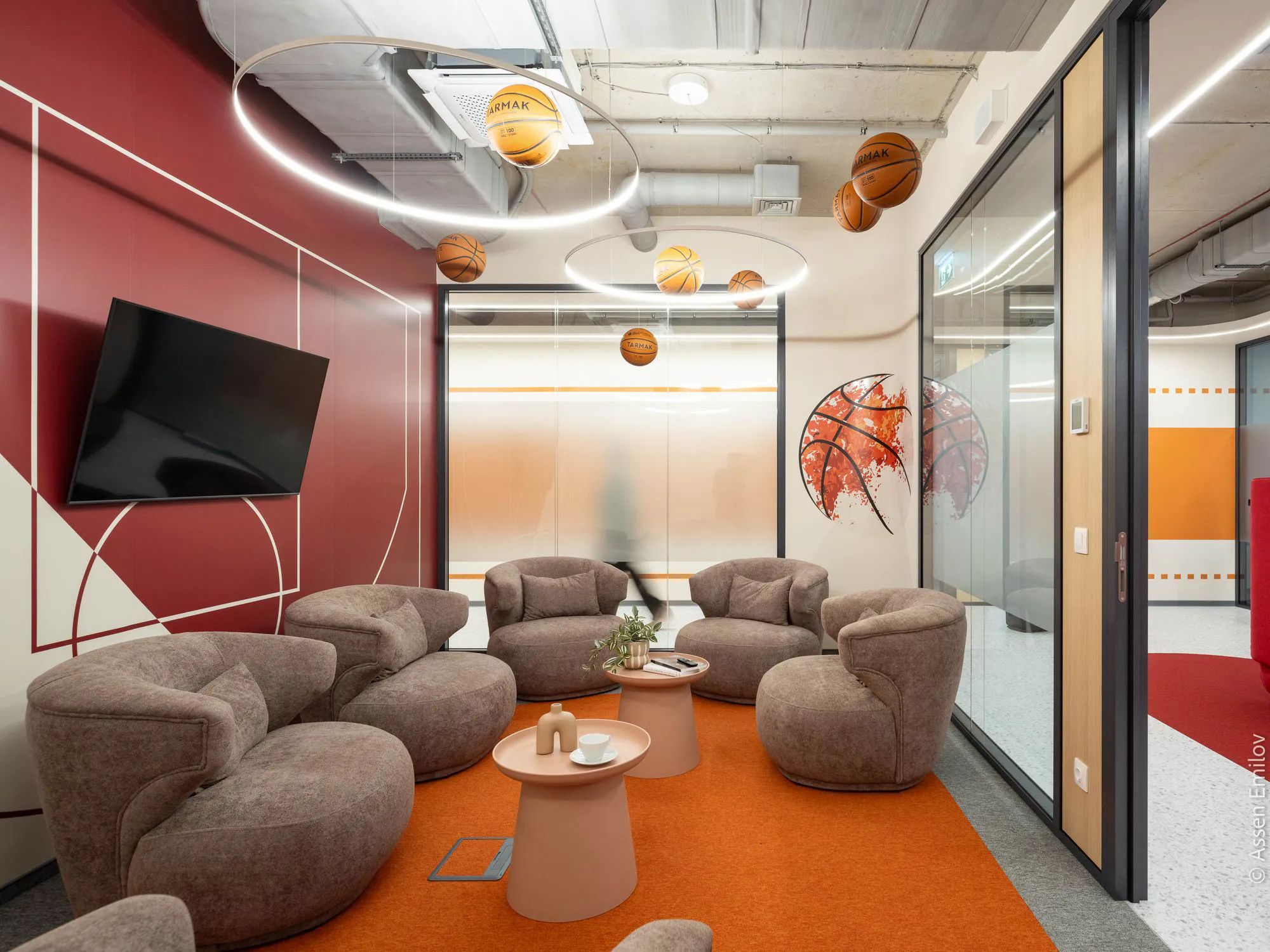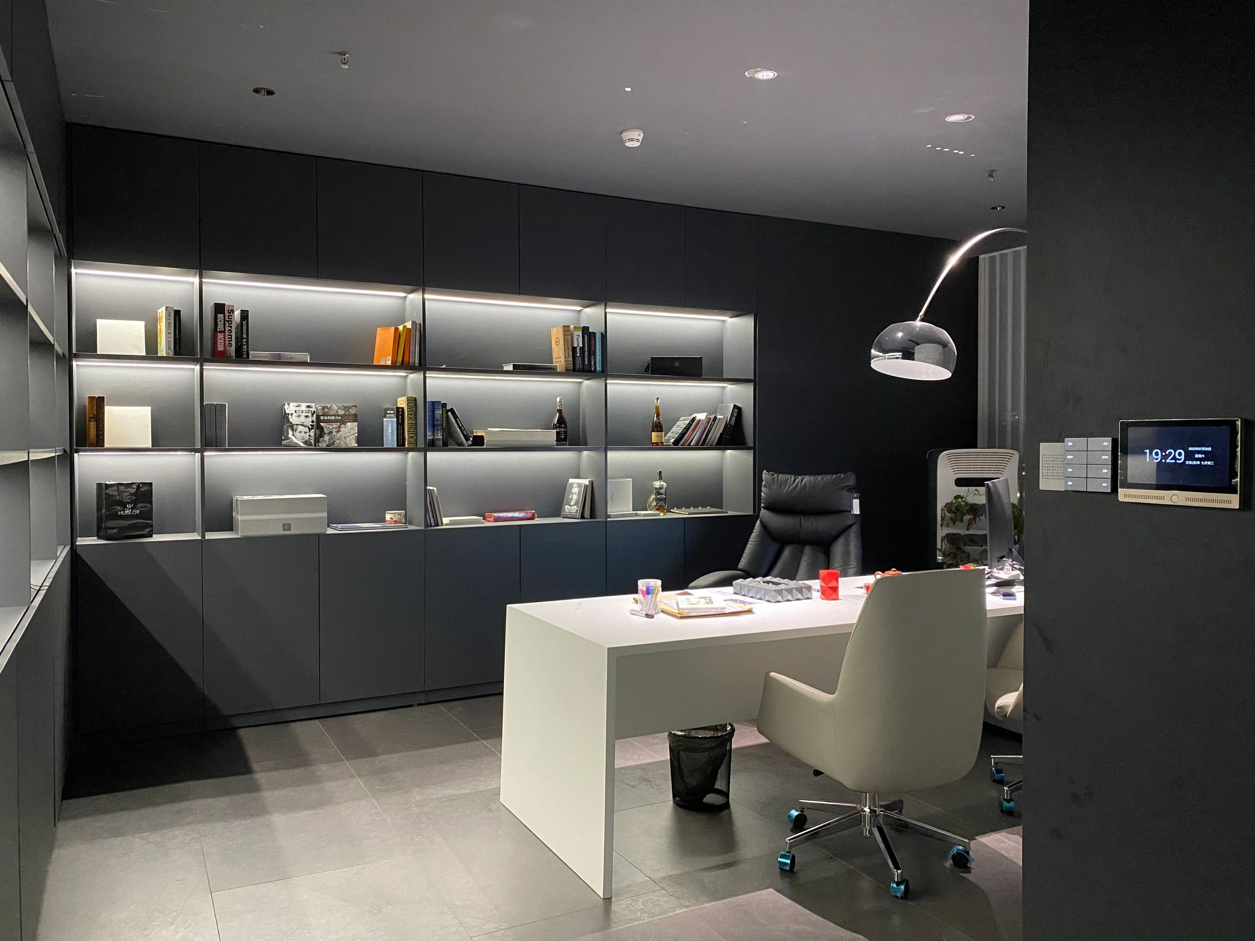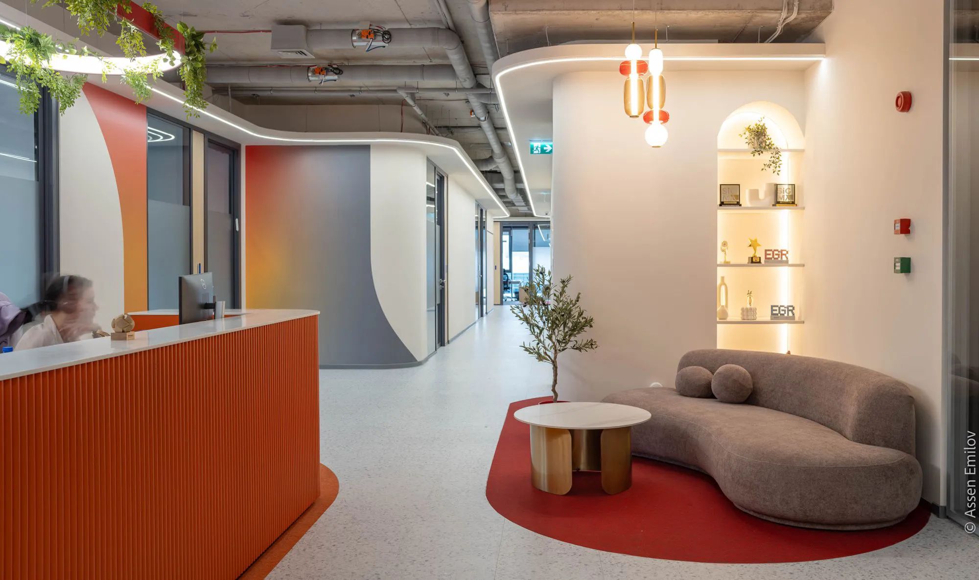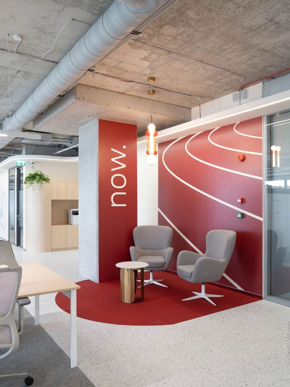 在家具和软装的搭配上,以黑白灰作为基础色调,局部搭配企业颜色,鲜亮的色彩使整体办公空间更加具有年轻化和现代感,工作时也会更有活力和激情
