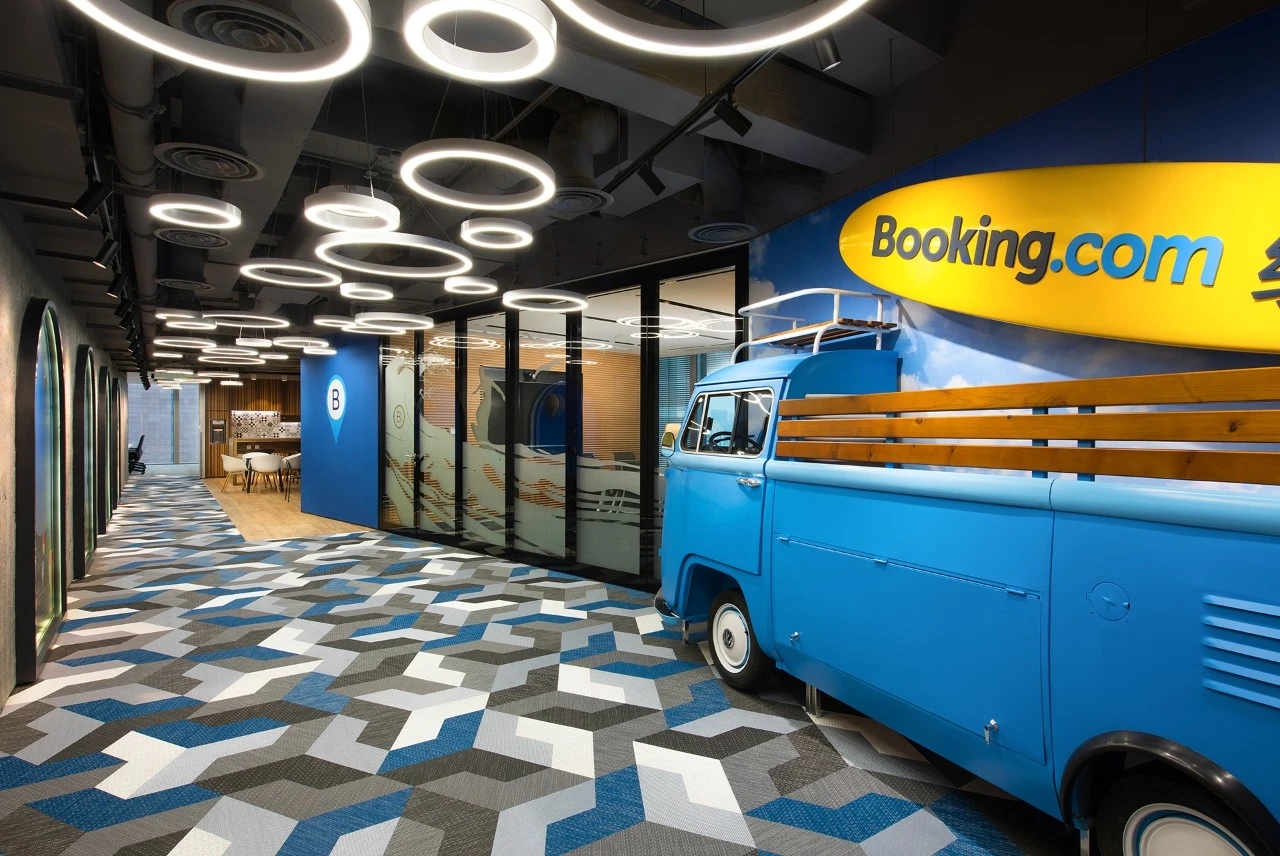 Booking.com 上海办公室洋溢着轻松惬意且极具创意的氛围。经过精心规划与布局,我们成功实现了团队紧密合作与个人高效专注的完美平衡。