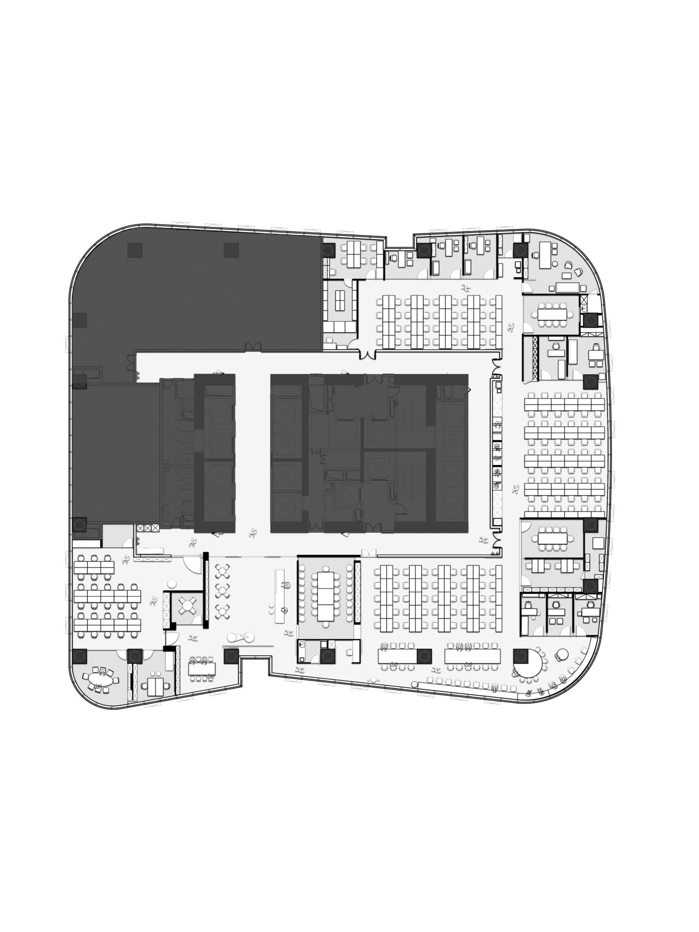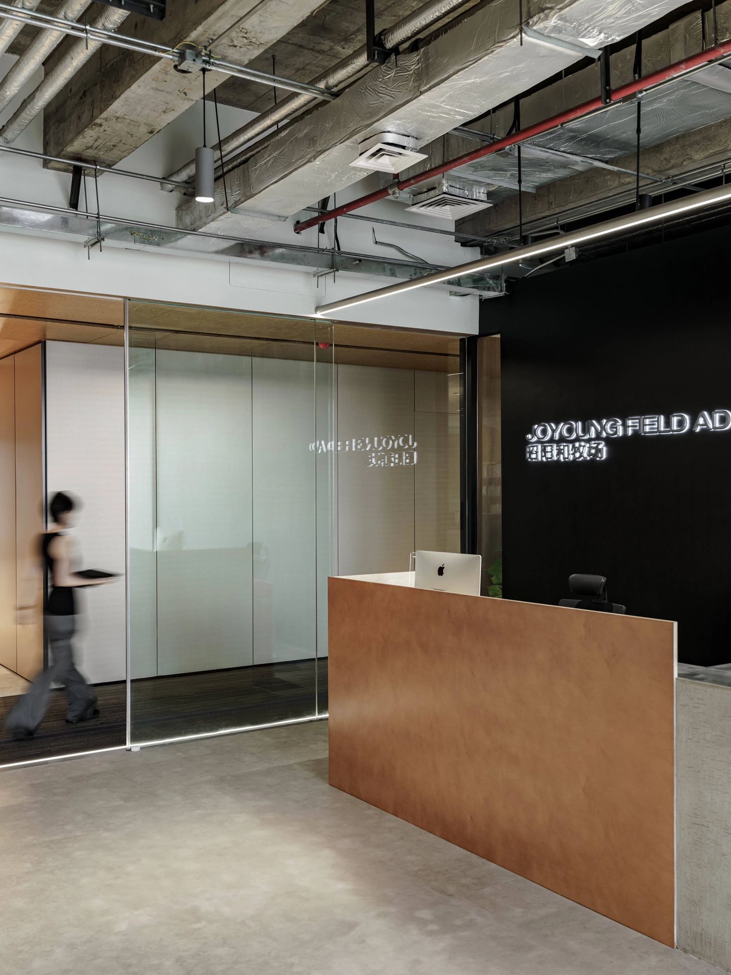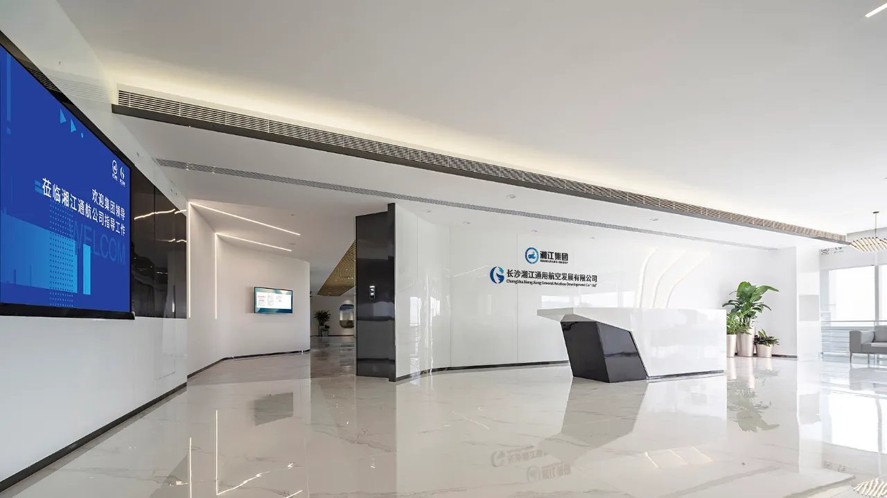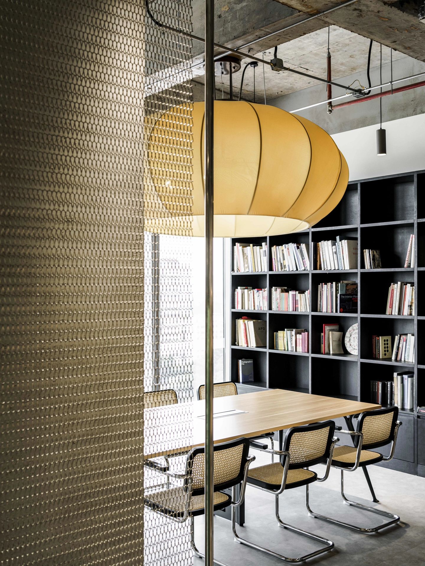 浅木色办公家具和皮质班椅的搭配,让空间整体氛围更加年轻时尚。嵌入式线性灯与金属材质的运用让空间更具科技感,打破了传统国企形象给人的刻板印象,同时又平衡了稳重感与严肃性。