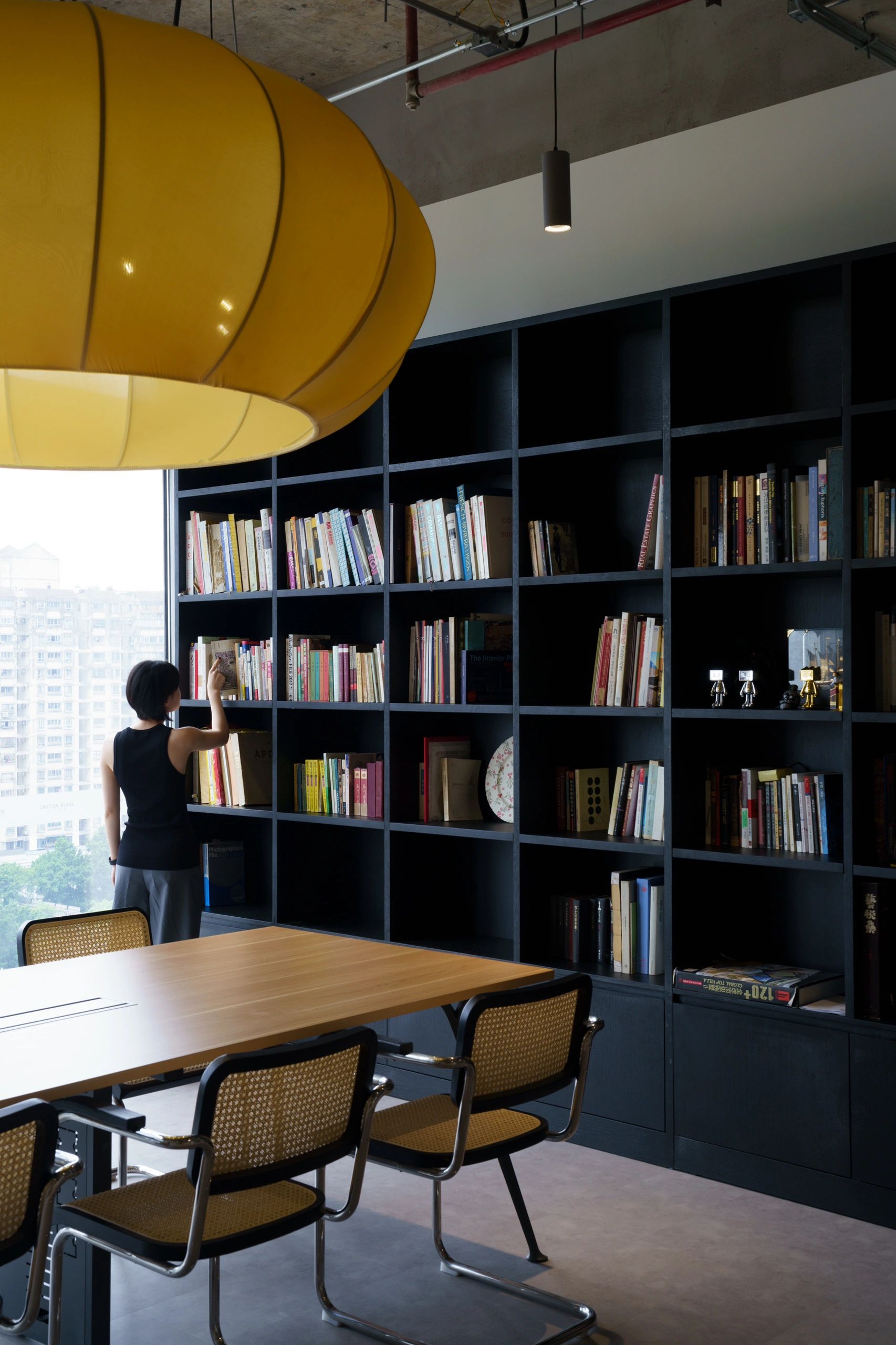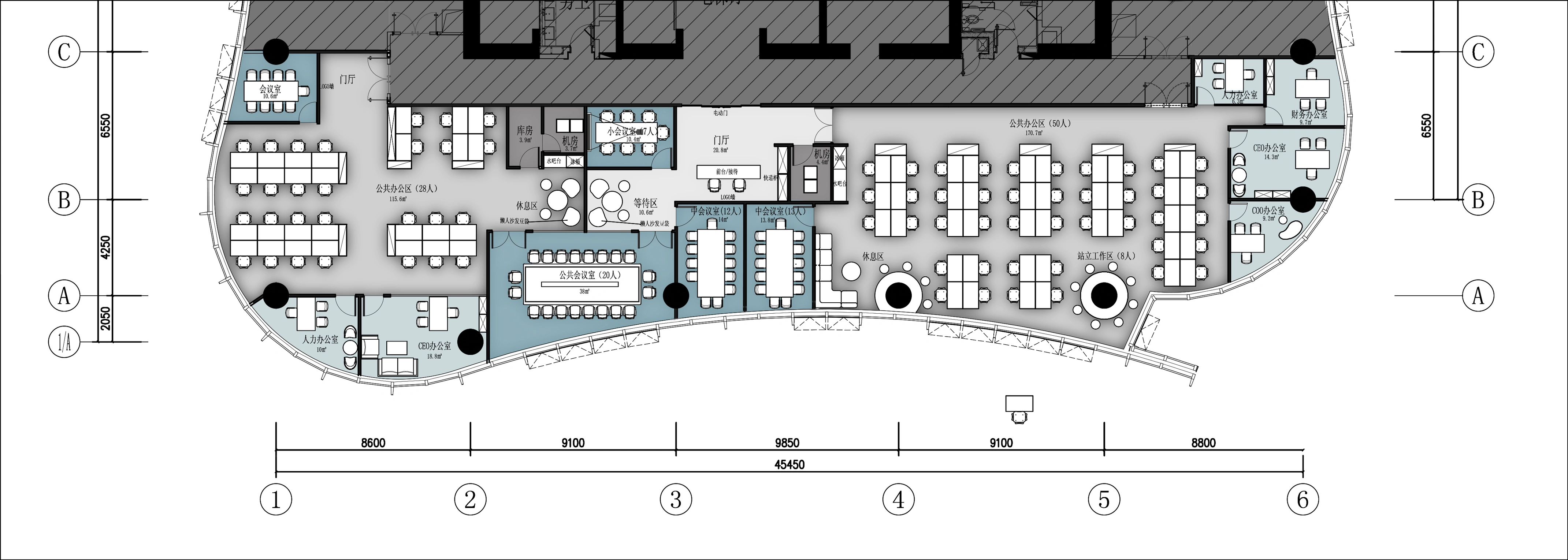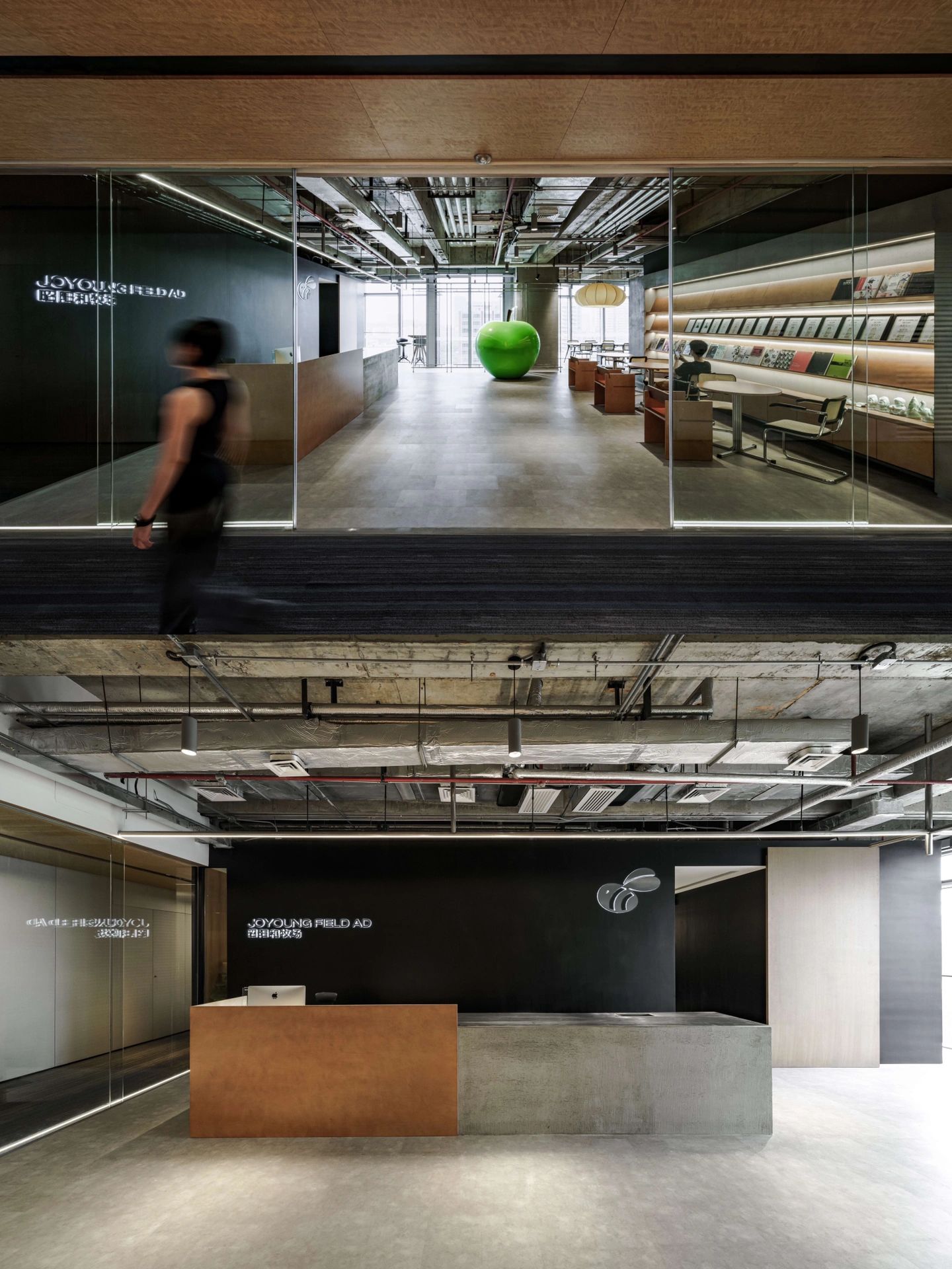 白色被称为一种设计理念,本身蕴含了丰富的可能性和容纳性。在整个项目中,白色作为主色贯穿在整个办公空间里,并通过不同机理的材质呈现。黑色和木纹作为辅助色点缀空间。弧形的跑道贯穿了整个办公空间,对比直线的硬朗,曲线本身更能体现空间的流动性和柔美性。开放的茶水间区域,整体设计与空间氛围保持一致,选取颜色亮丽的家具产品为空间增添活力。