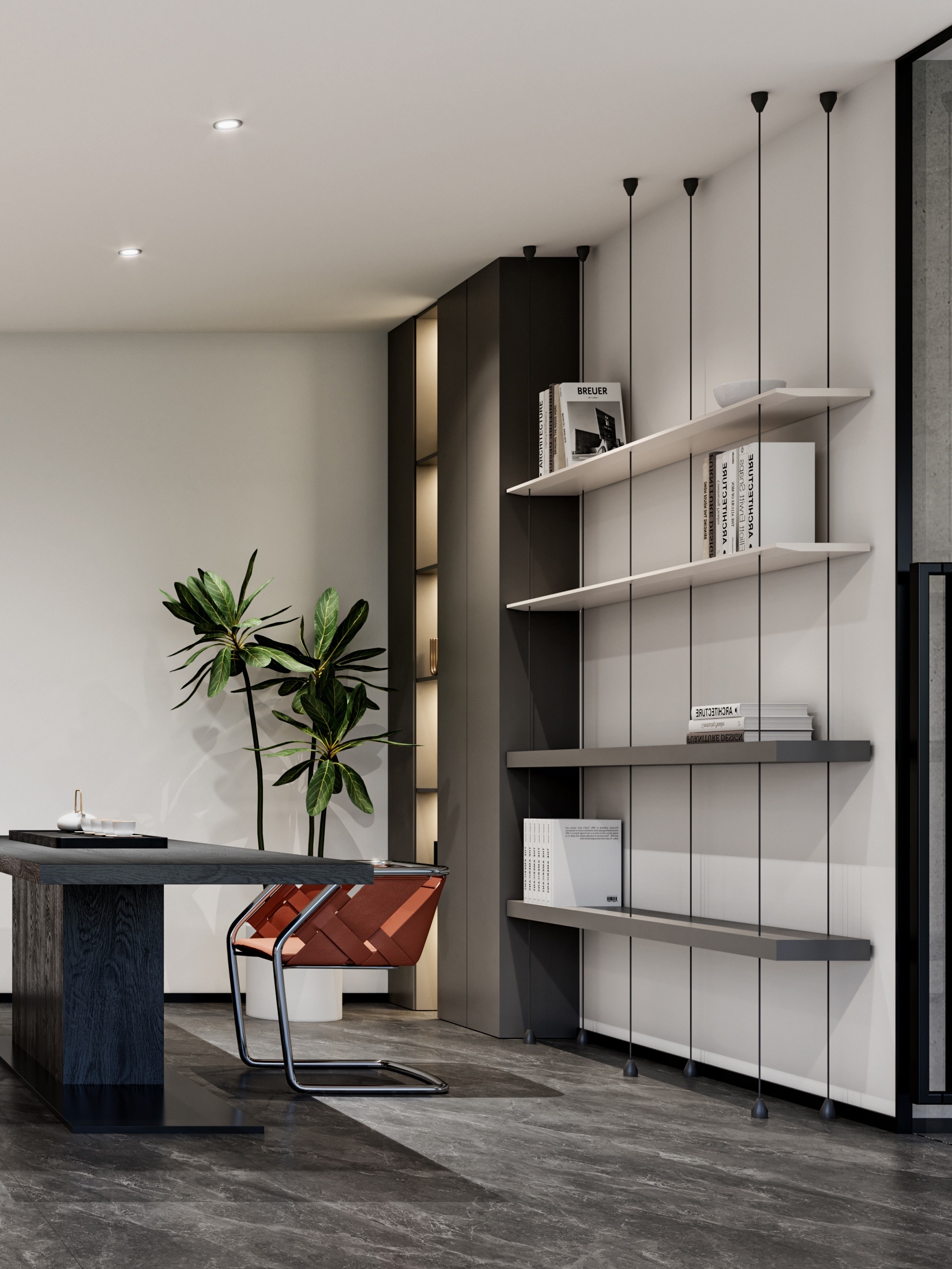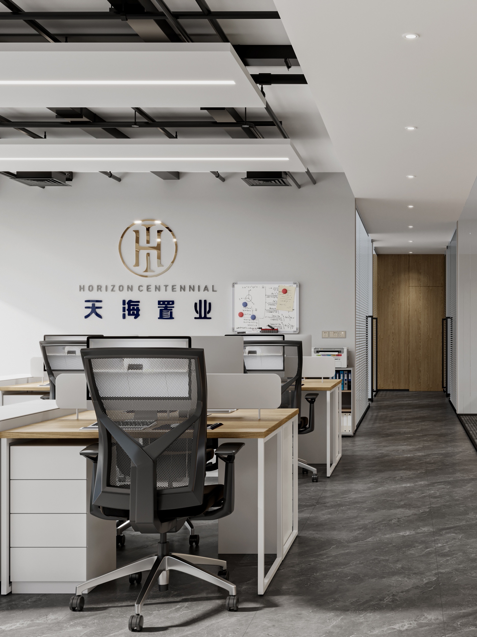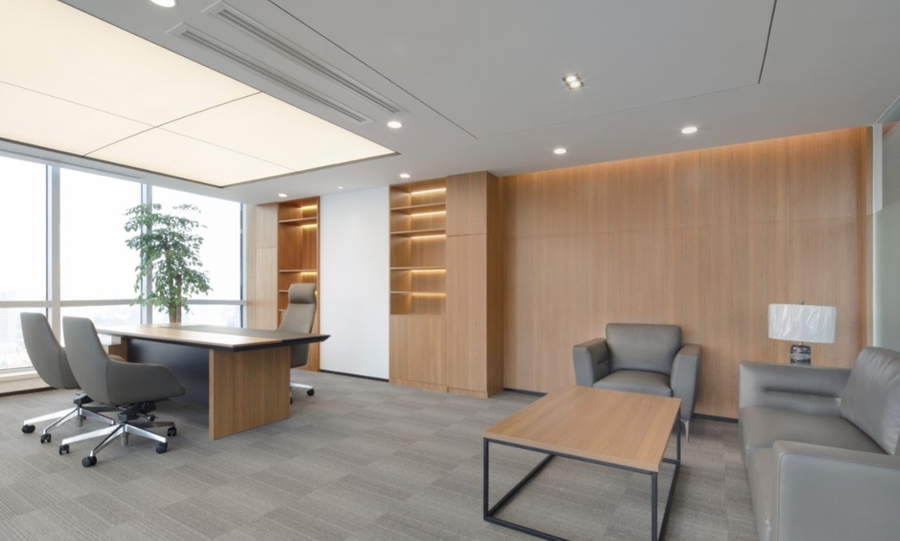 设计目标在于运用极简的设计手法,结合空间哲学及软装点缀,营造出干净优雅的工作环境。特色在于屏风办公位均利用了升降系统,文件柜均有吸音和隔音功能。会议区及管理人员办公室等外墙采用双层玻璃,专为有效的隔音和隐私而设计,以最大限度地提高集中度和工作效率。