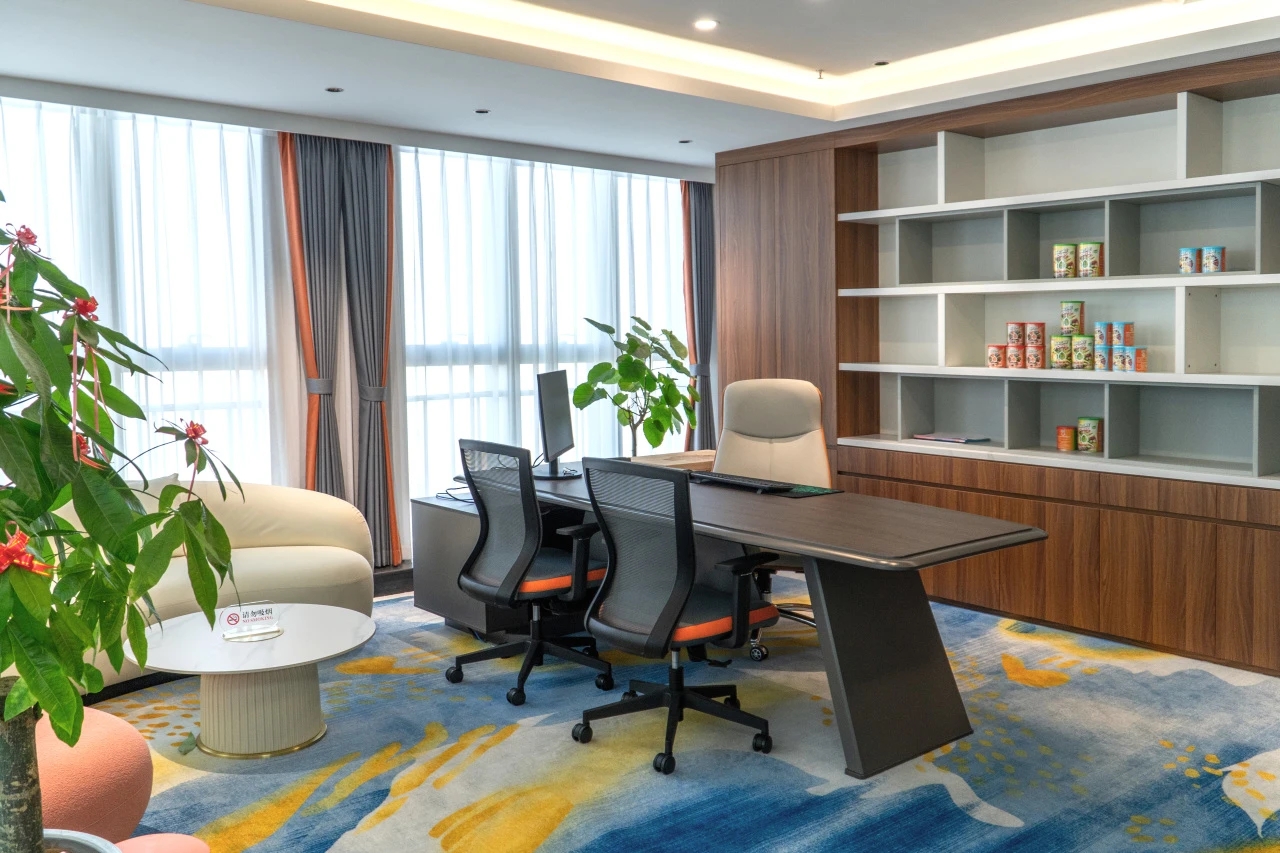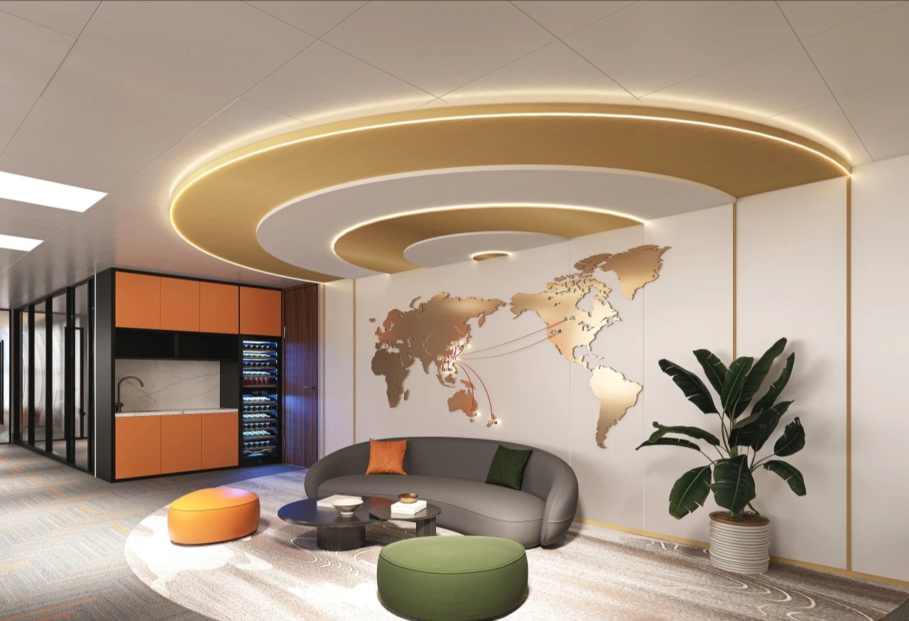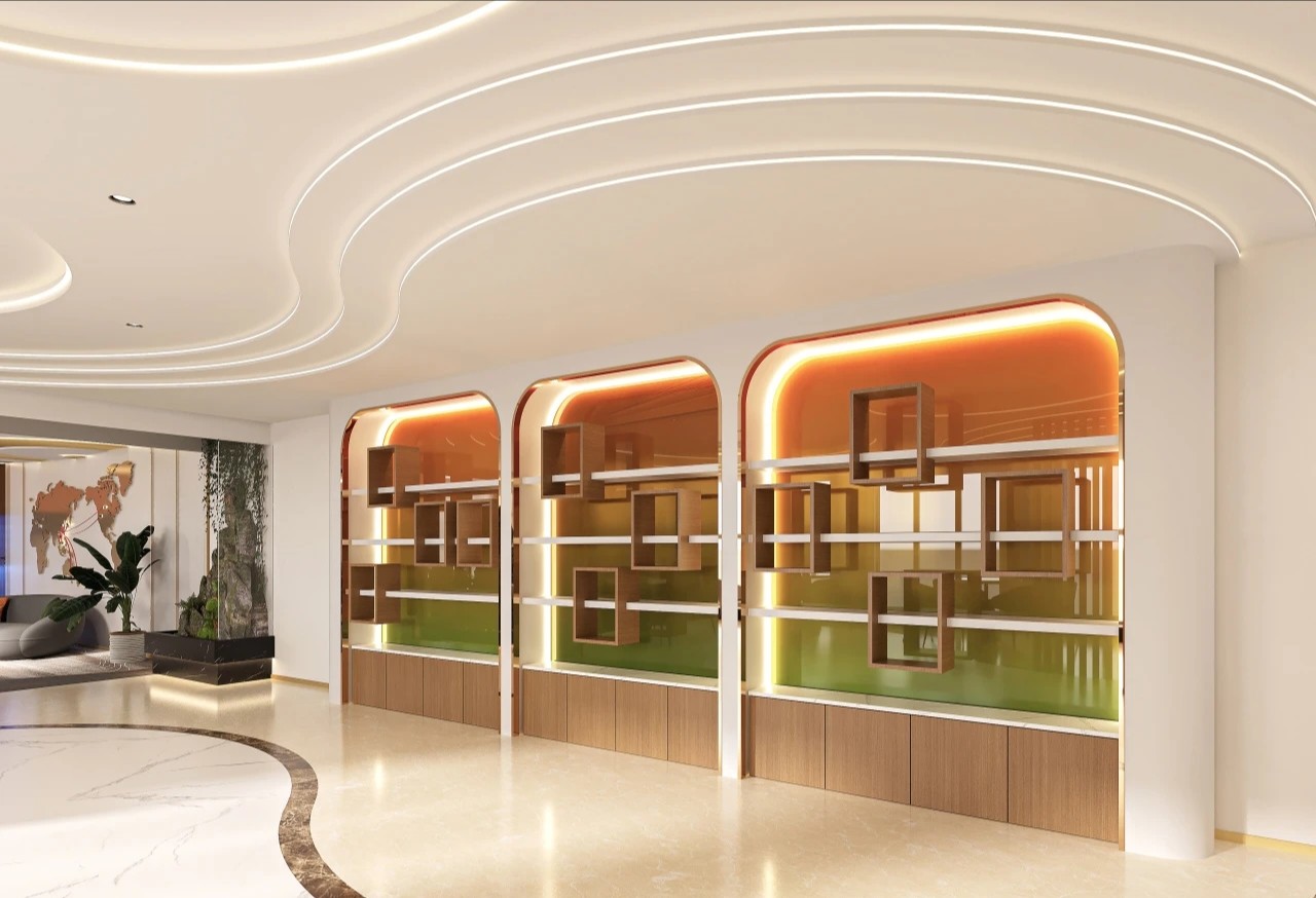 超薄钢板材质被巧妙地设计成流畅的弧形,层板的产品陈列型态将其创造性地融入空间布局之中。这些元素不仅仅是装饰,更是企业文化的传承与创新的体现。以鲜艳而和谐的色彩搭配,为空间增添了几分生动与活力,让贵宾在走访空间的同时,也能感受到来自FEATERA的企业底蕴。