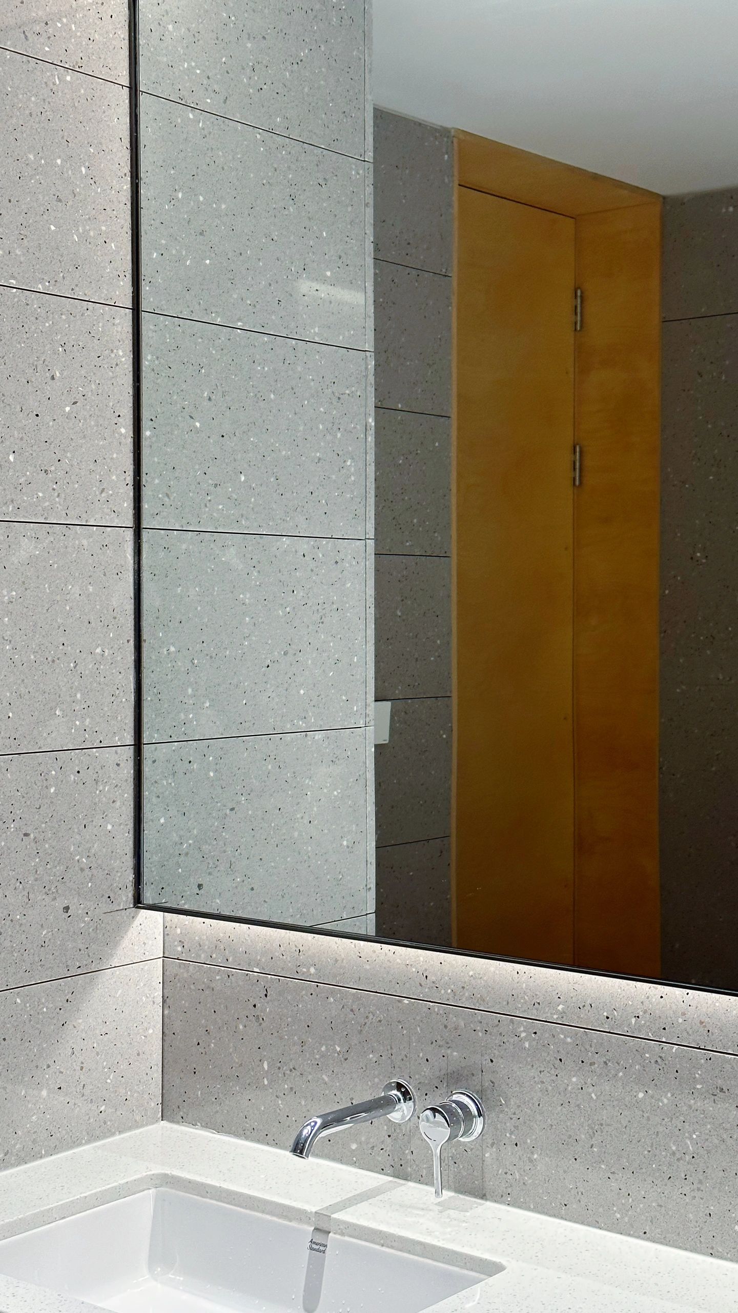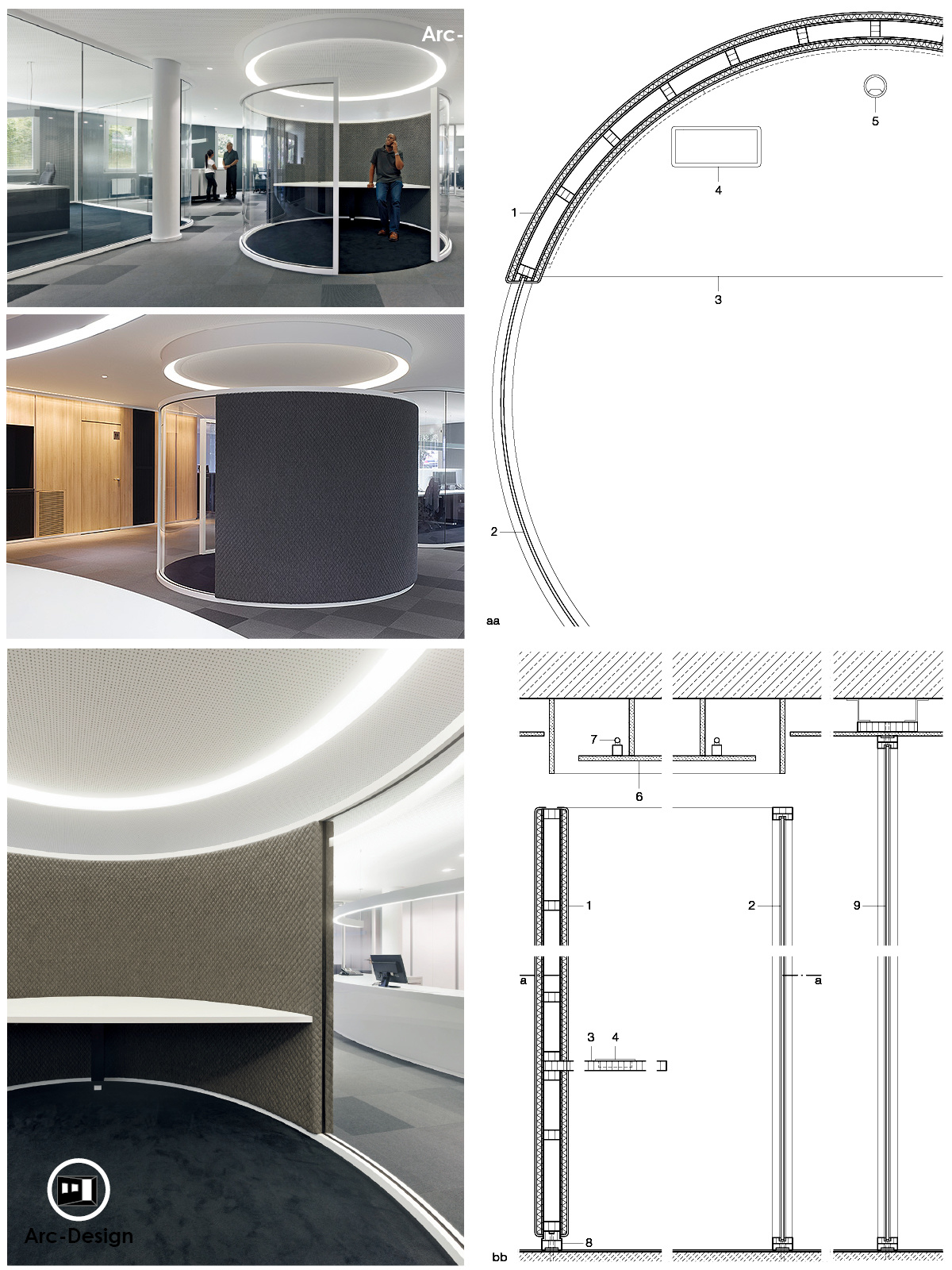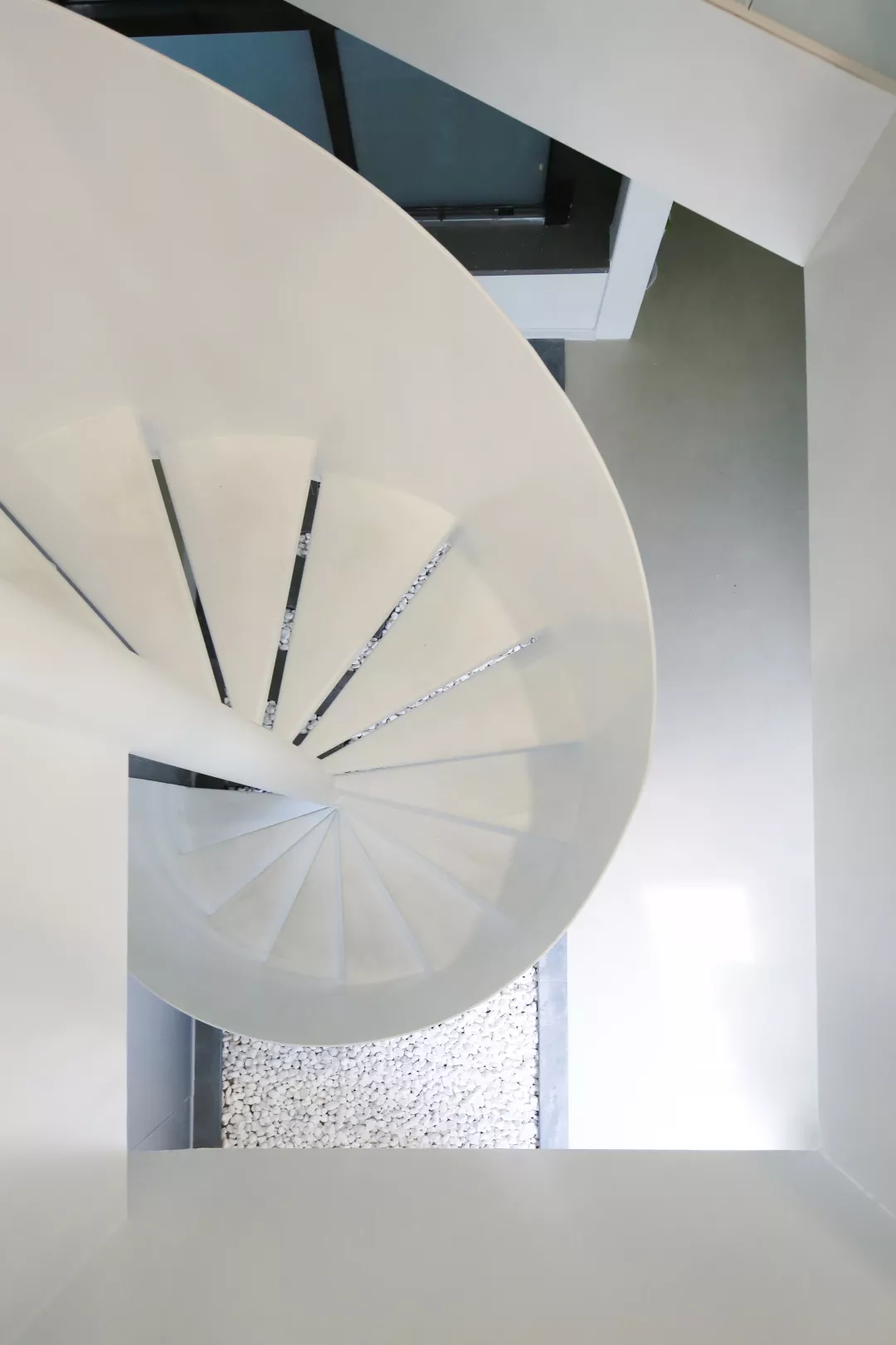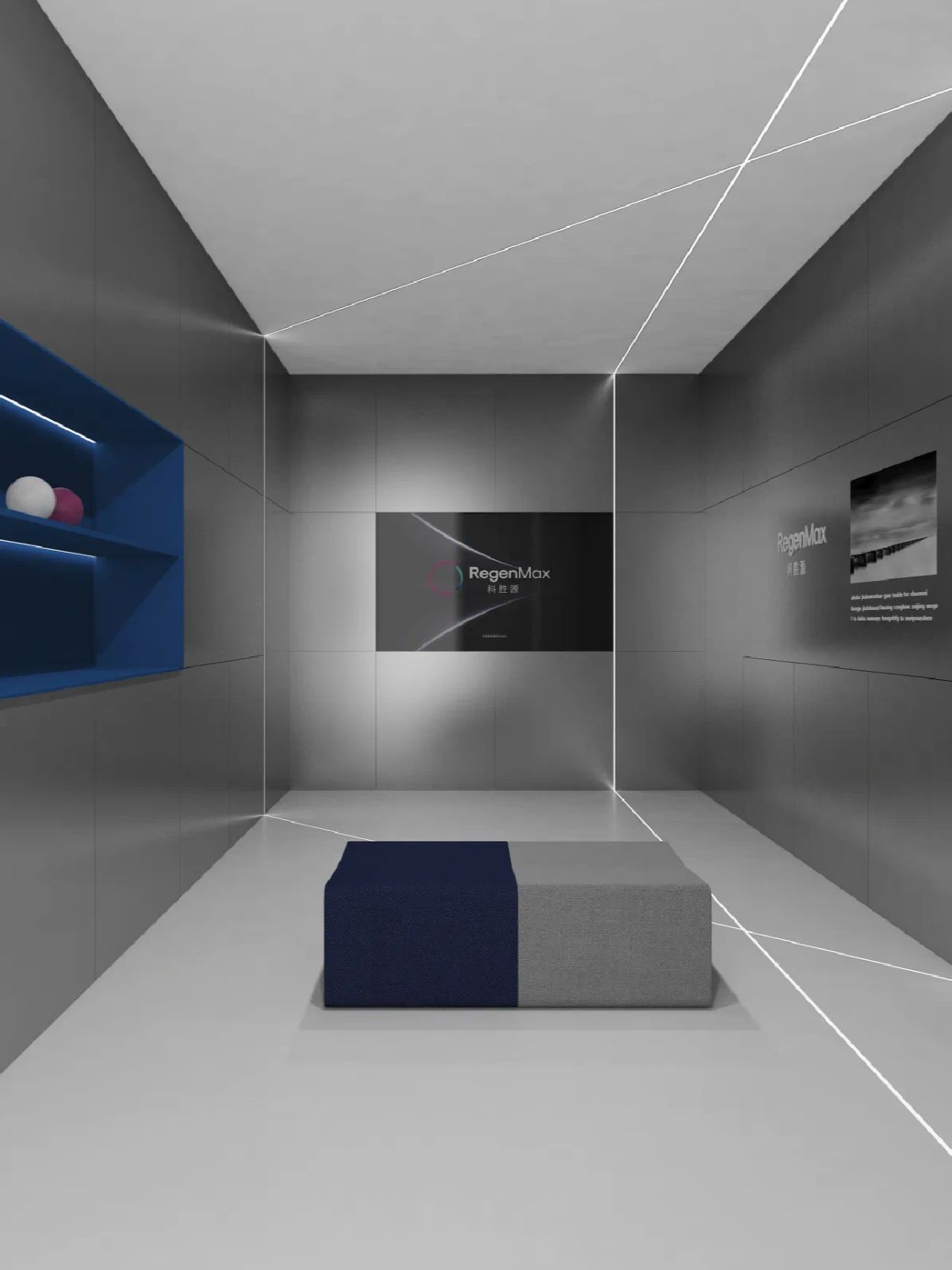 建筑师尝试创造一些对比剧烈并带有冲突性的空间。室内有非常多的空间挤压成非常小的角落,也有肆无忌惮地释放成特别开敞的广场,如下沉的部分是一个大型的集散广场的空间概念。大家可以随意坐在前面的台阶,就像一个开放的公共广场上进行交流的场景。从广场旁的球形的冥想室对面楼梯,到达一个长条形的悬挑,进入一个连廊转换到特别狭小的空间里,是二楼的一个小型和式榻榻米区,工作人员可以完全把房间封闭起来,在宁静空间当中进行自我的沉浸式思考。