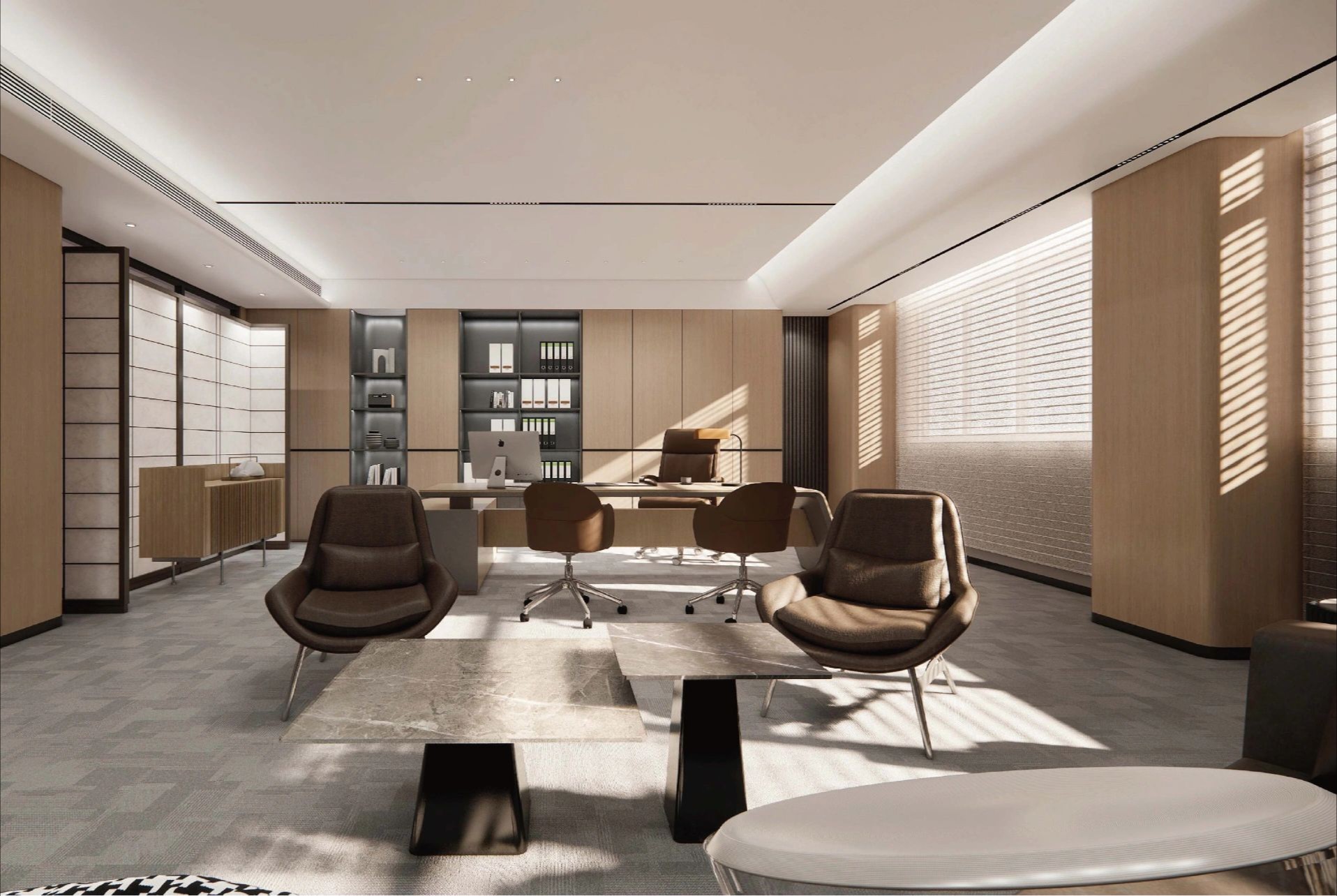 通感体验是我们方案的核心,追求舒适感不仅仅局限于视觉,还包括声学、空间感受等多维度的场景体验。我们借鉴老街巷的紧凑布局,创造出一种令人意想不到的空间交错感,使办公空间不再是单一的盒子,而是一个充满活力的场所。景观思维在室内设计中的应用,使整个空间如同一幅画卷,呈现出丰富多彩的办公场景。通过激发员工对周围环境的敏感性,我们期望每一位员工都能够从环境中汲取灵感,创造出更有创意的工作成果。