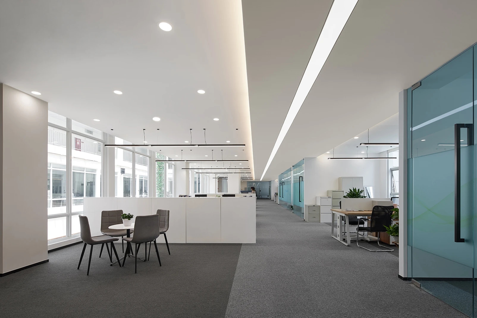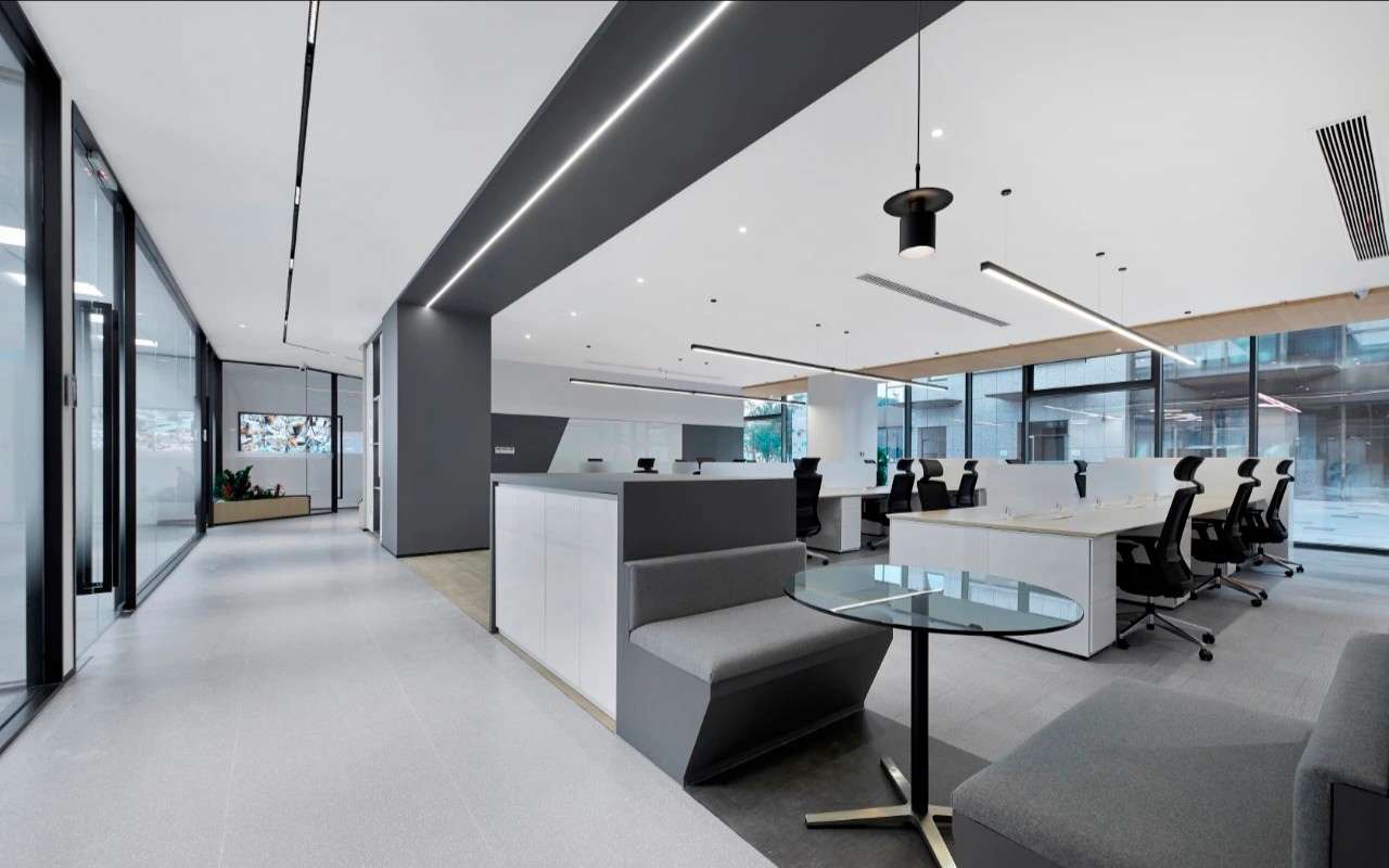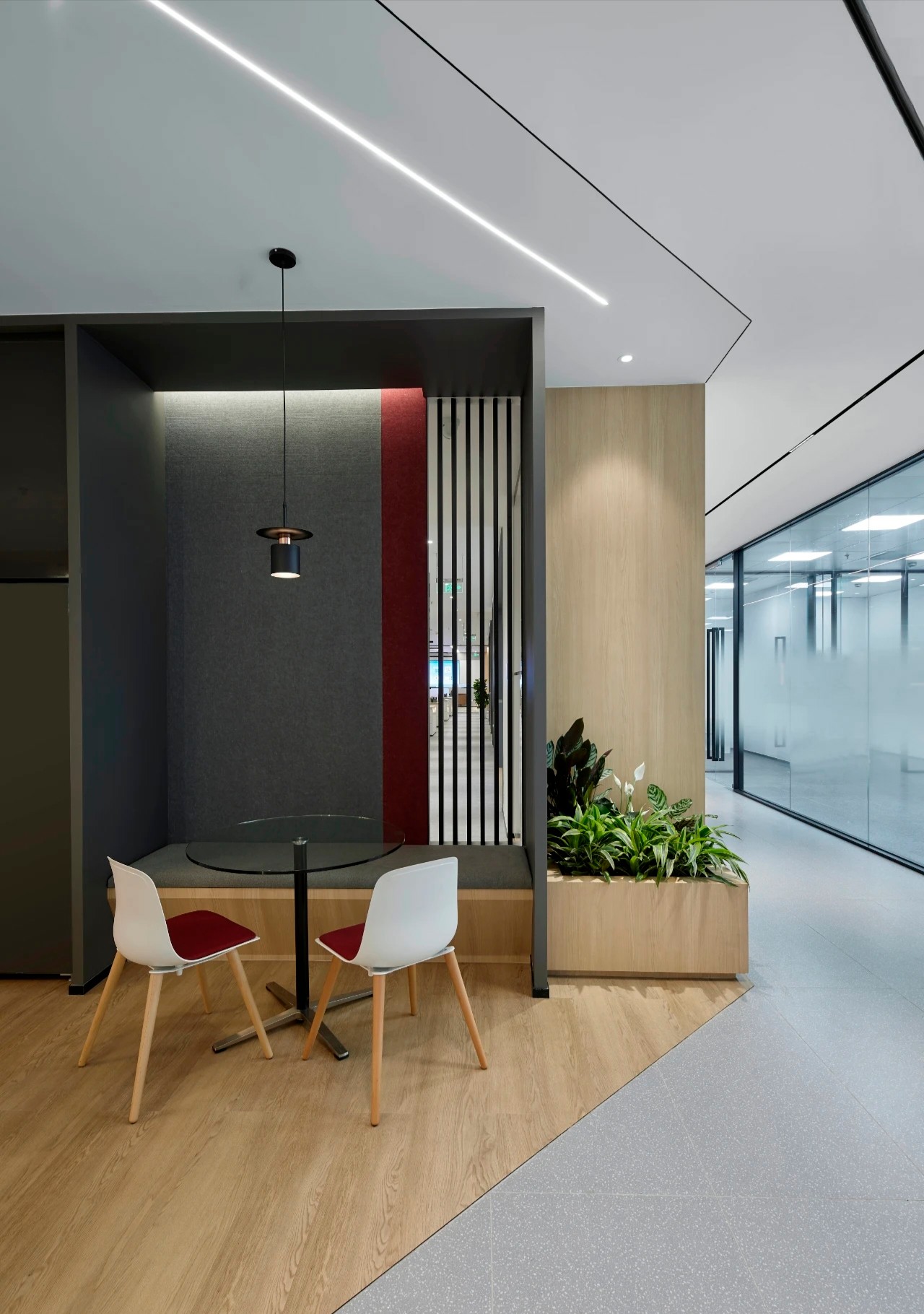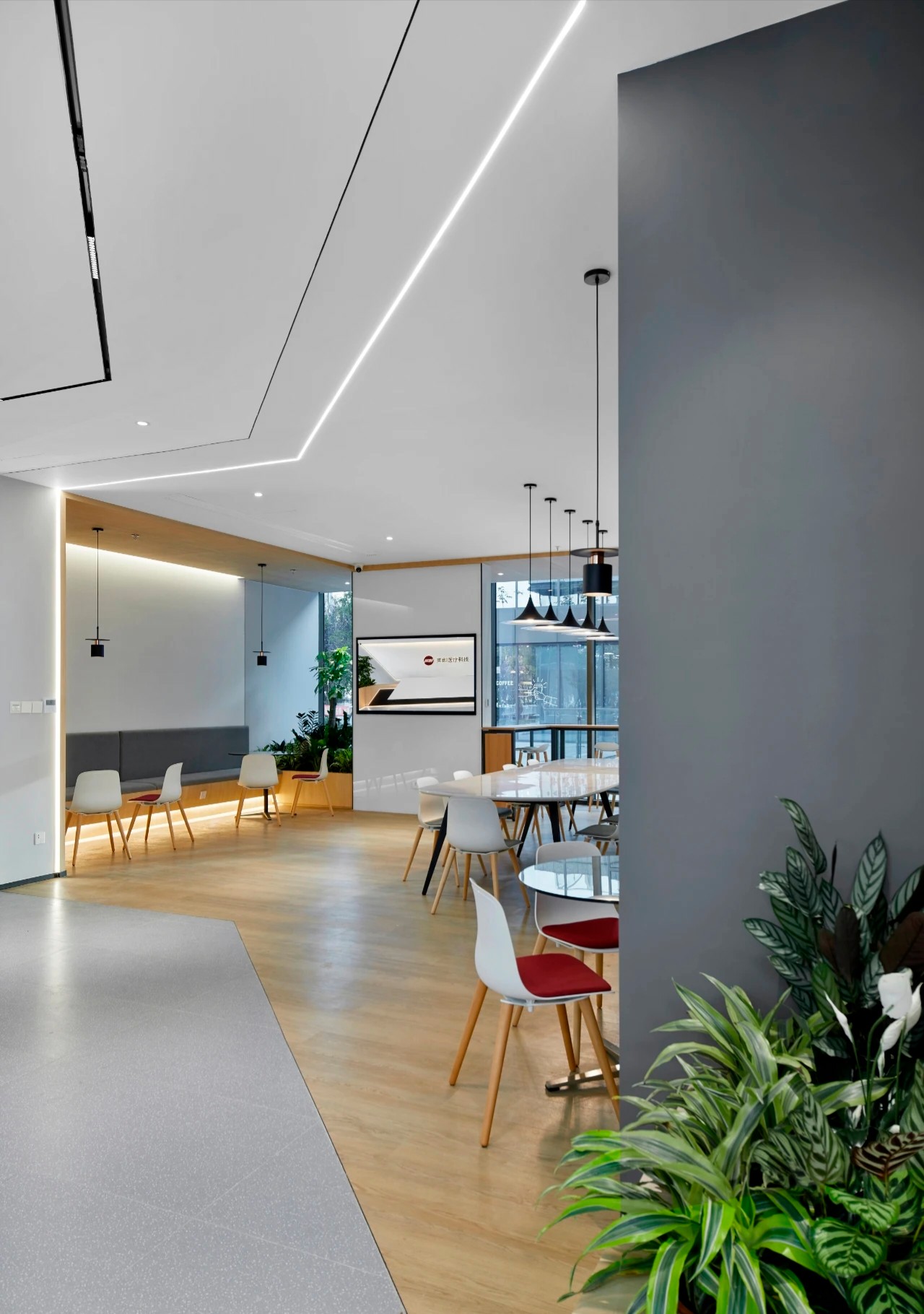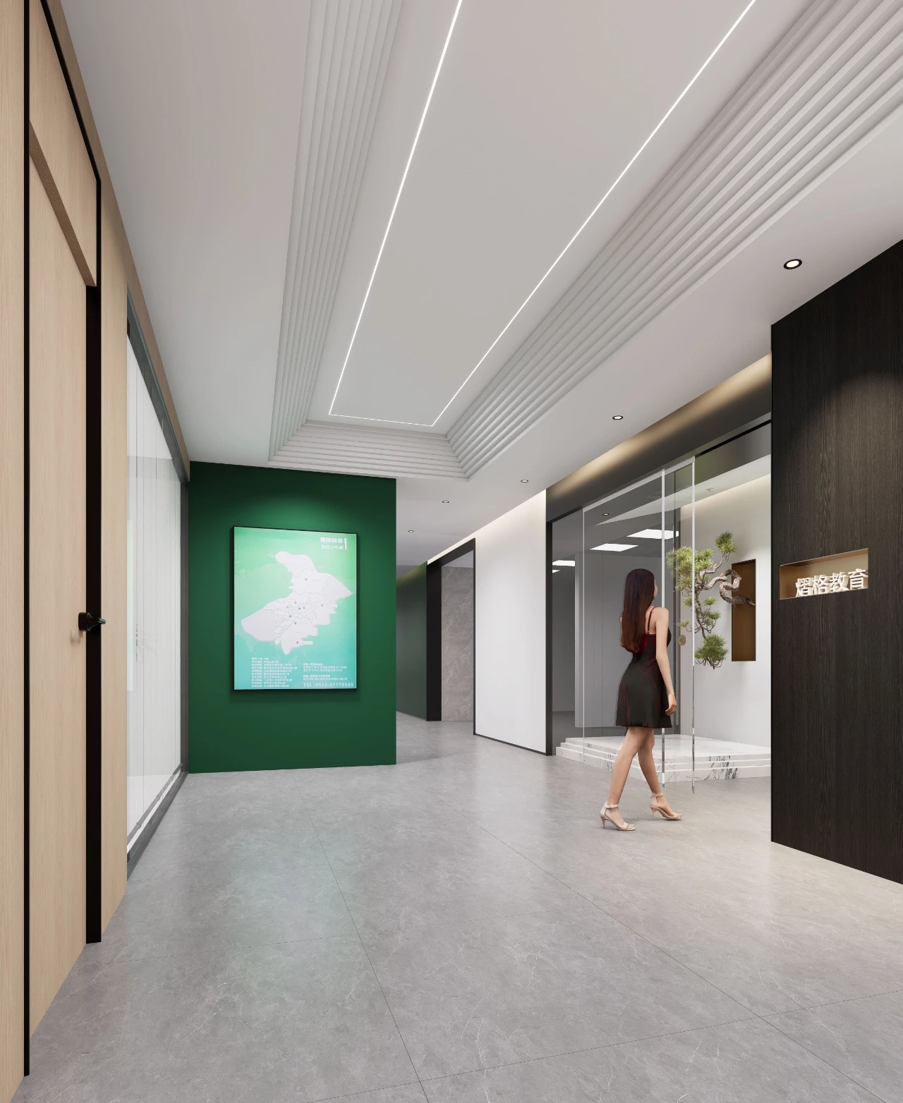 设计元素色彩选择:以白色、灰色为主色调,辅以木色或金属色点缀,营造清新、明亮的空间感。材质运用:选用环保材料,如木材、竹材或玻璃,强调可持续发展的理念。灯光设计:利用自然光和间接照明,创造出柔和、舒适的光线效果,减少视觉疲劳。