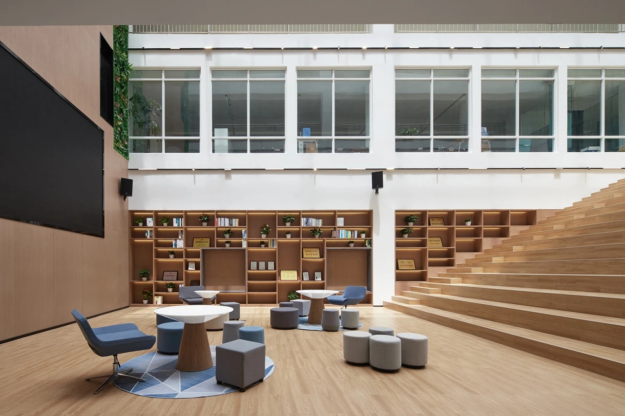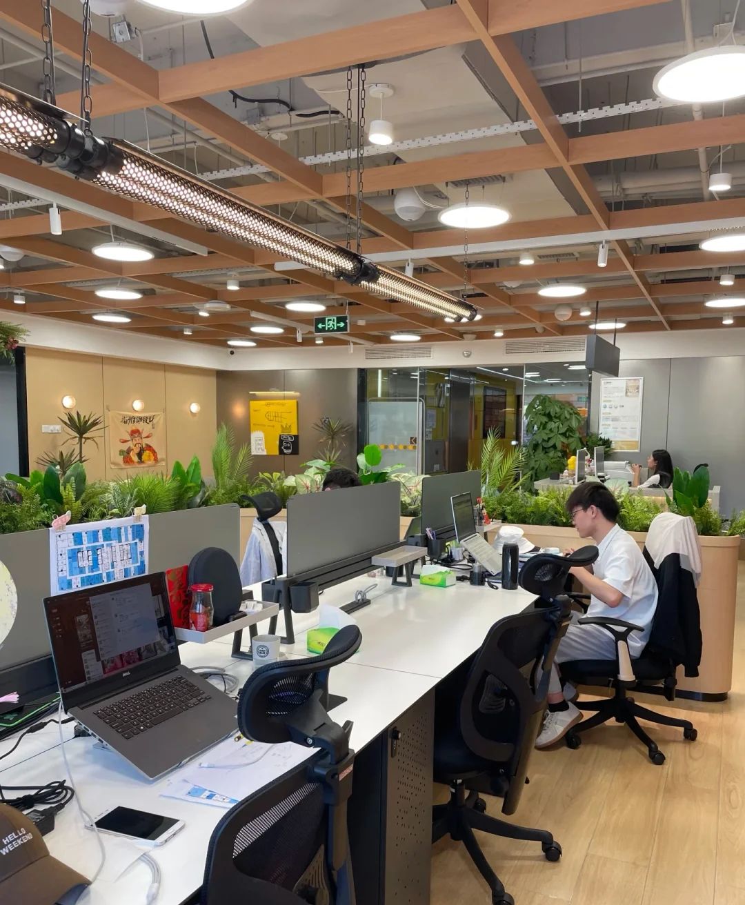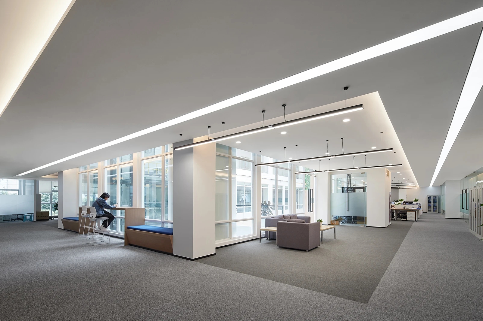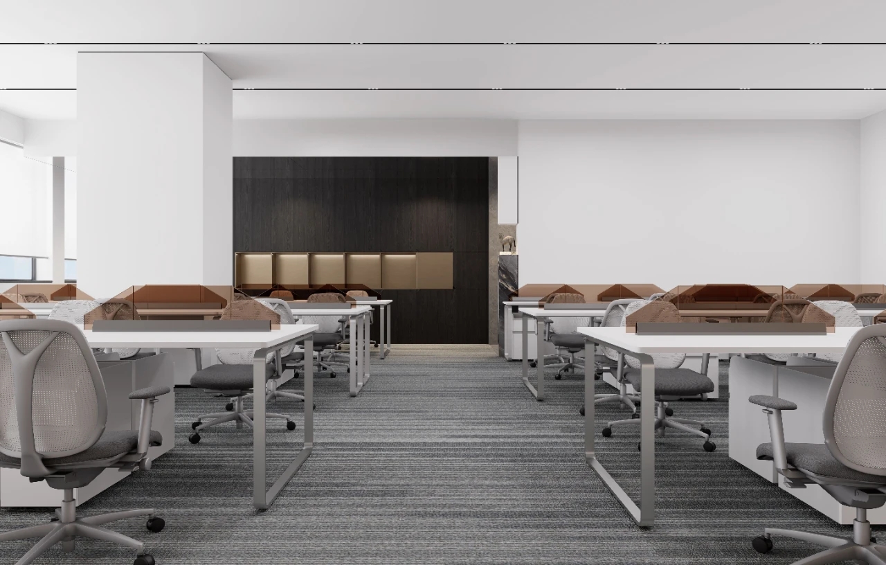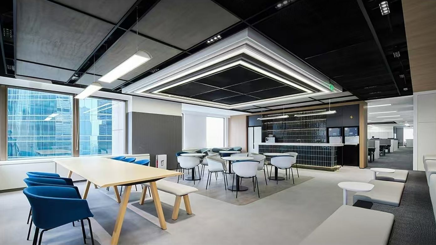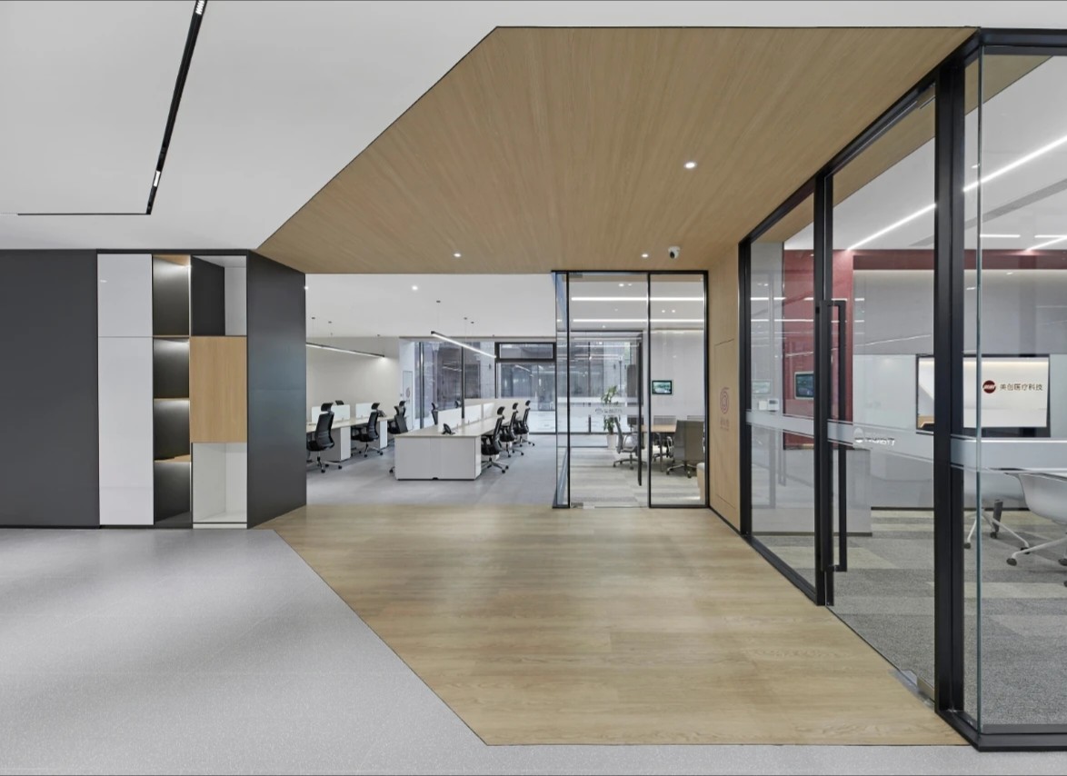 设计元素色彩选择:以白色、灰色为主色调,辅以木色或金属色点缀,营造清新、明亮的空间感。材质运用:选用环保材料,如木材、竹材或玻璃,强调可持续发展的理念。灯光设计:利用自然光和间接照明,创造出柔和、舒适的光线效果,减少视觉疲劳。