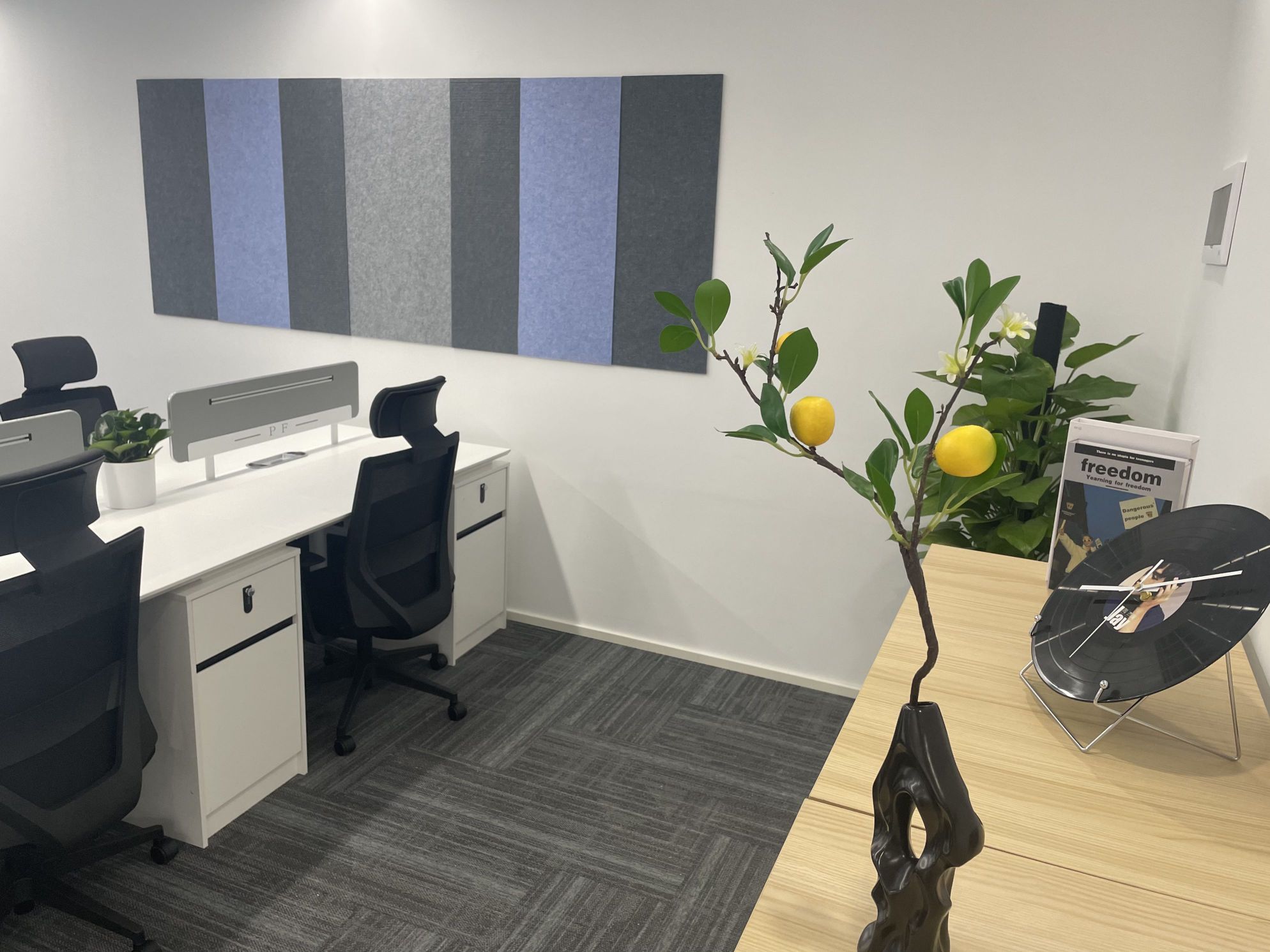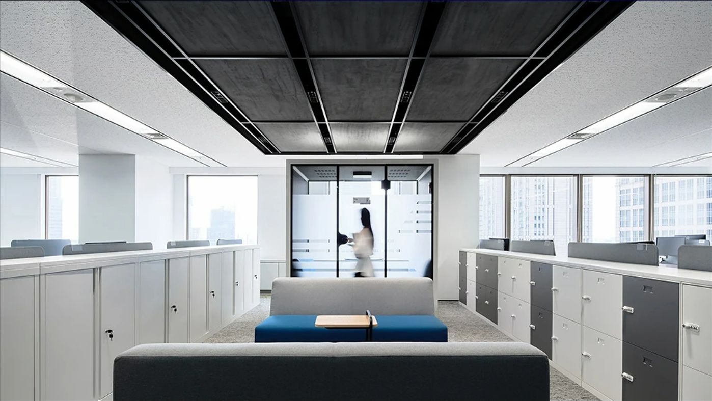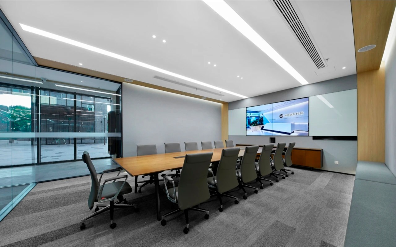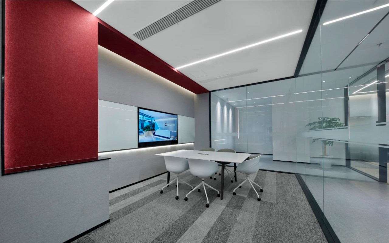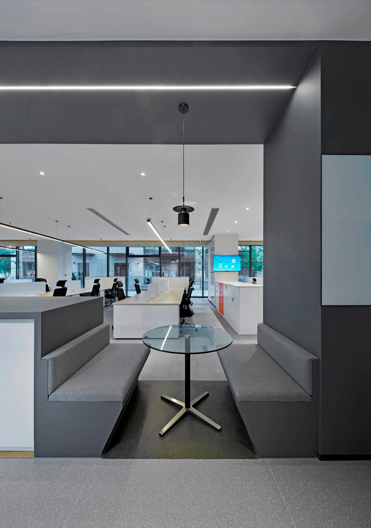 大会议室延续整体空间简洁、现代的调性,简约而不失格调,用于接待客户与召开正式会议。整体以灰色为主调,采用简练的硬装,去除繁杂的装饰,呈现出沉稳、大气的质感。中型会议室既是头脑风暴的场所,也是给客户提案的空间。整体沿用轻松现代的设计风格,与办公空间形成视觉上的统一。以一抹品牌logo色的毛毡点缀其中,如同迸发的灵感,鲜亮而夺目。