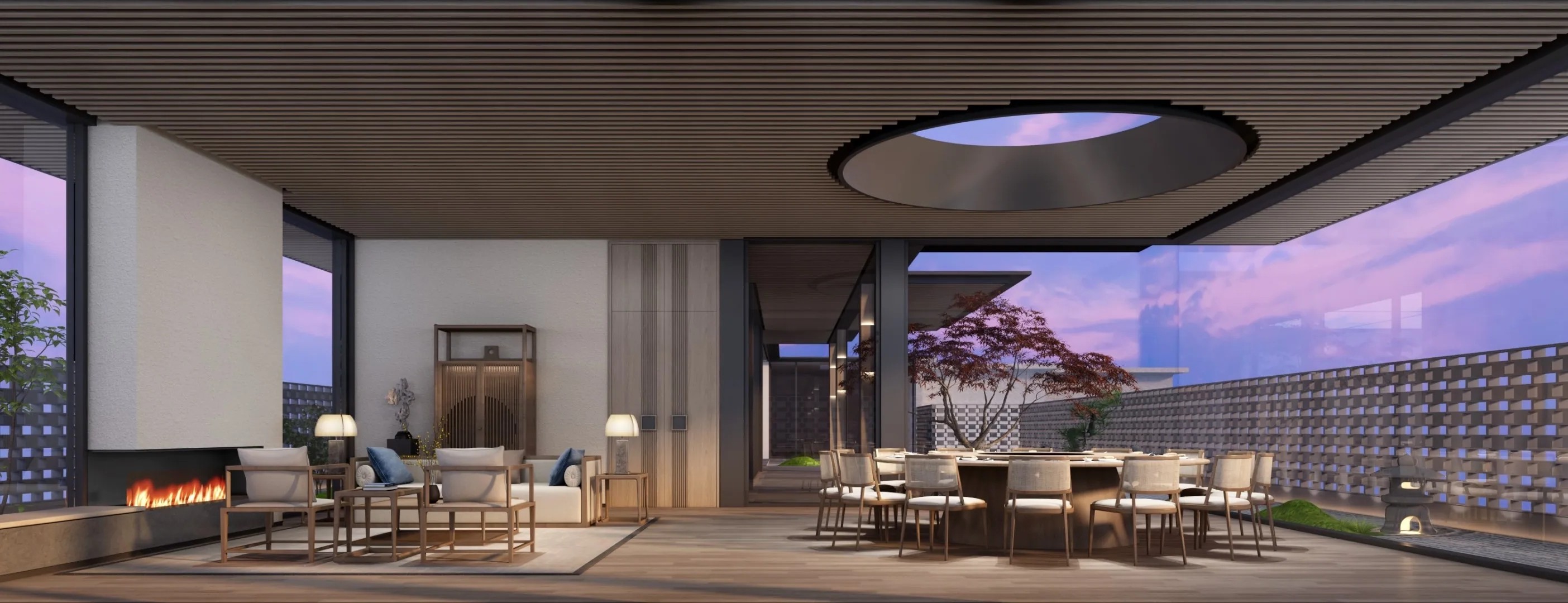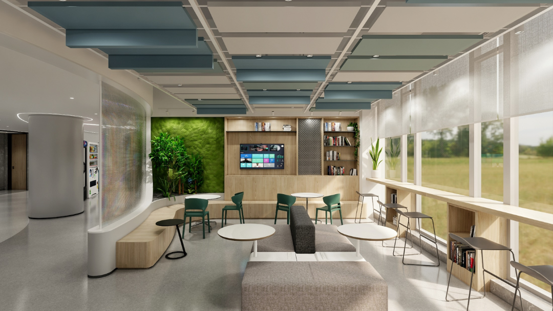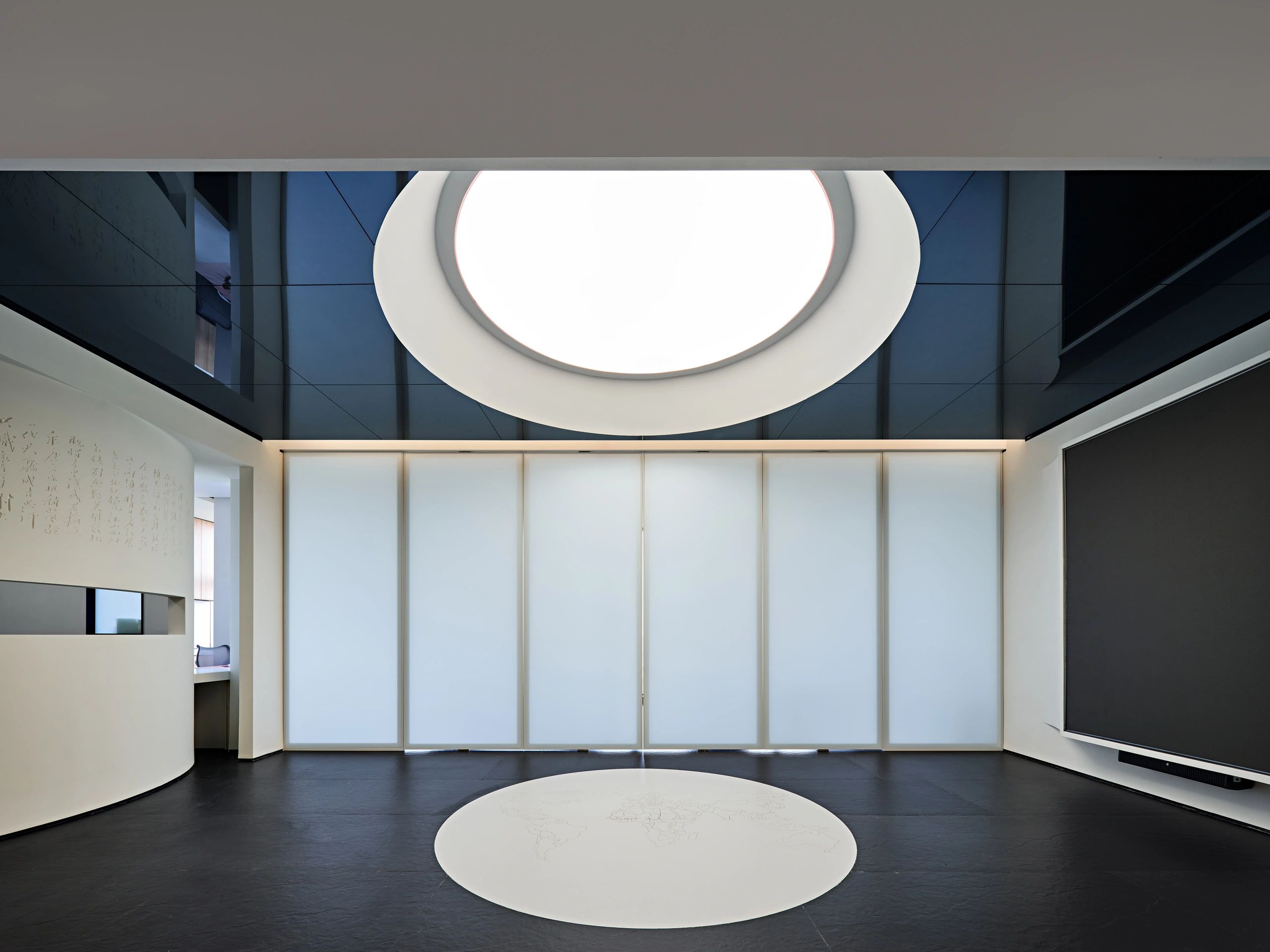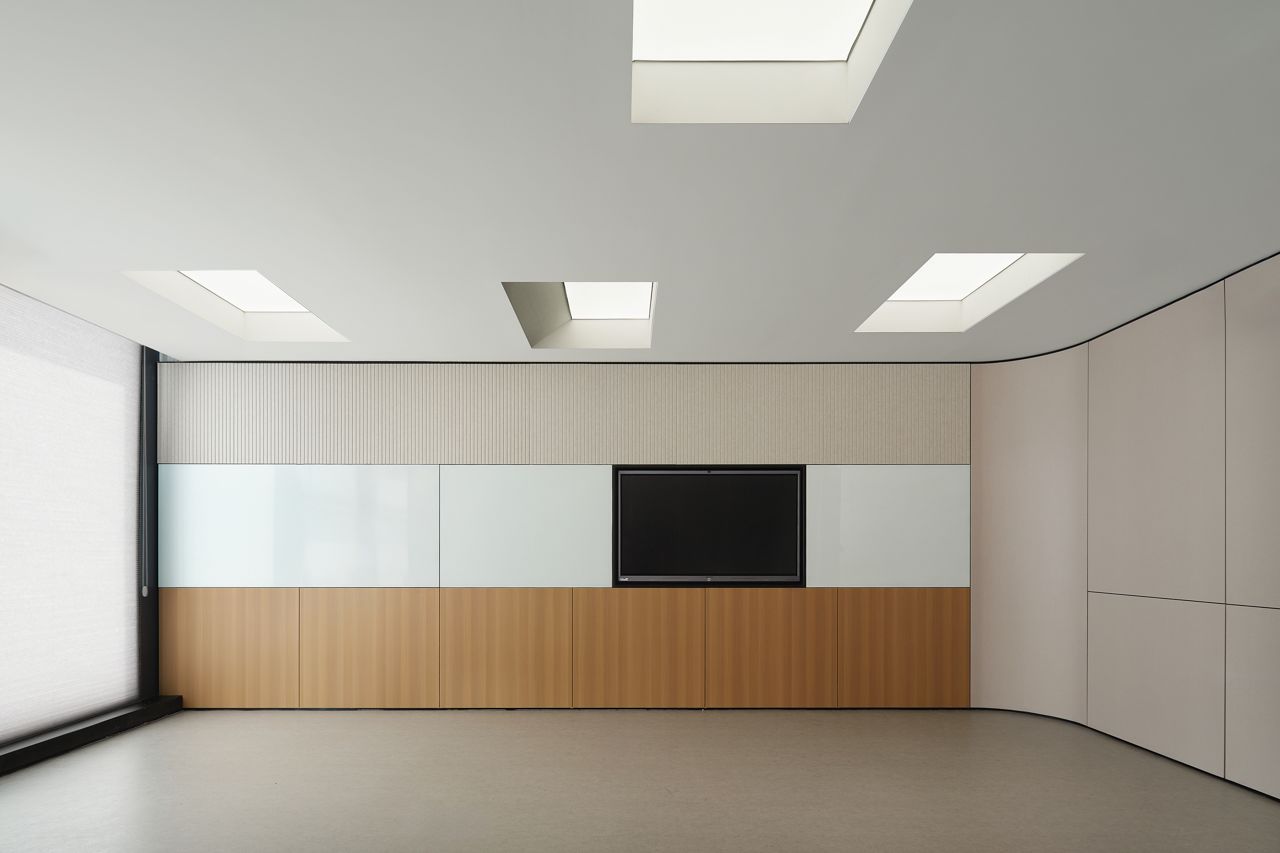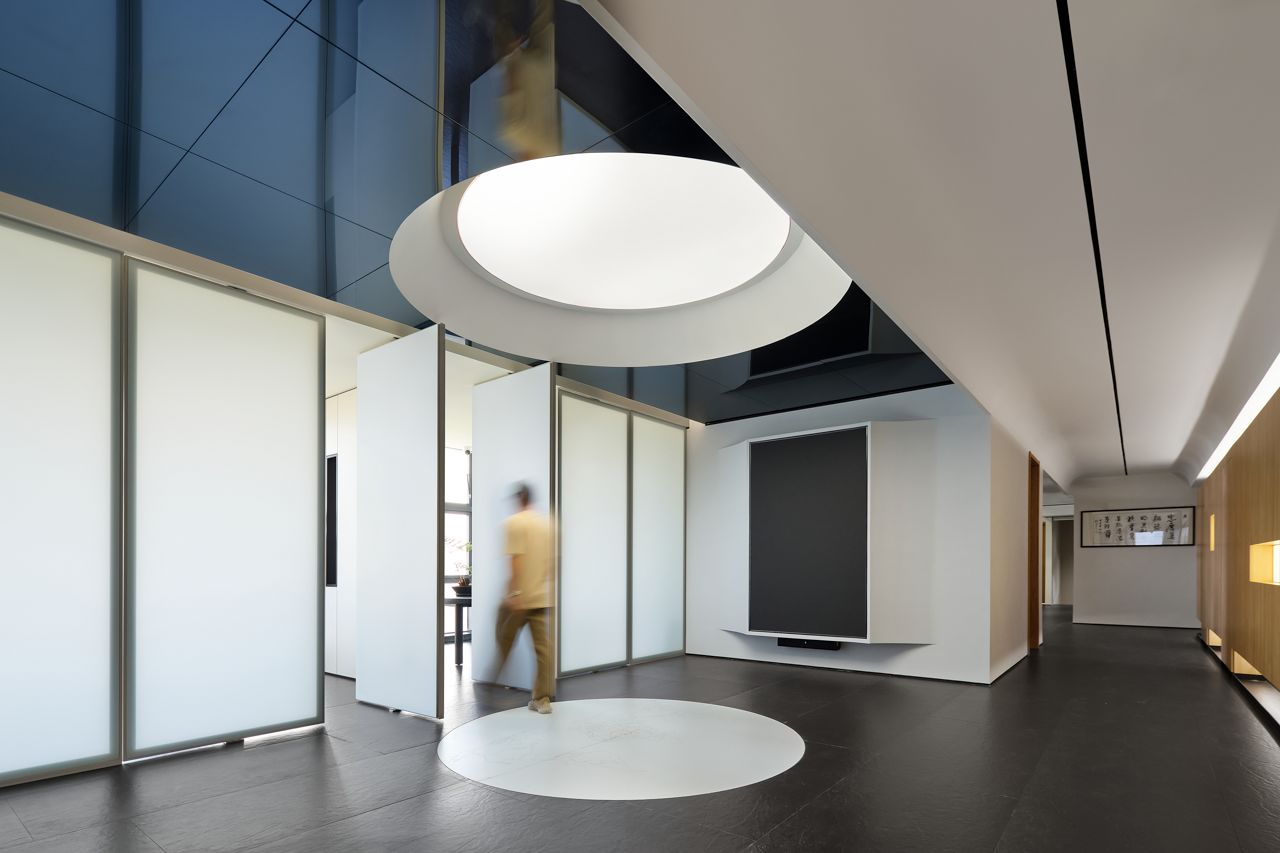 进入顶楼,以大面积玻璃隔断,通透明亮,将艺术与自然环境相融,以此弱化空间的界限,重塑人在场所的新感知,呈现与天空风景为伴的场景。