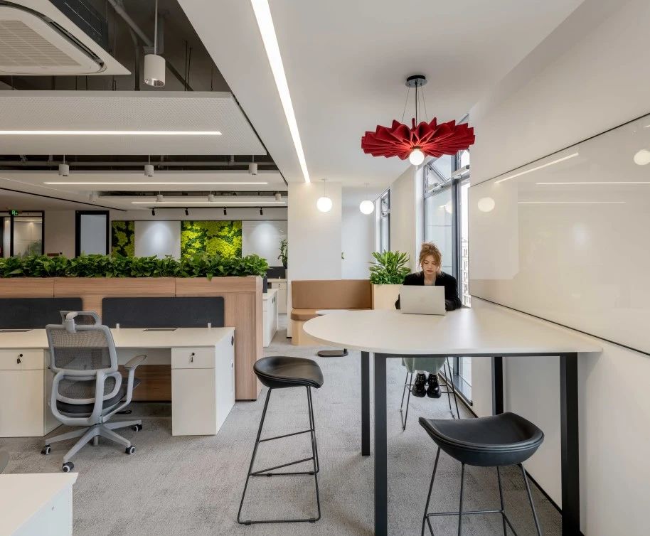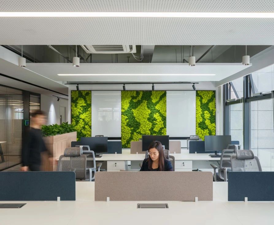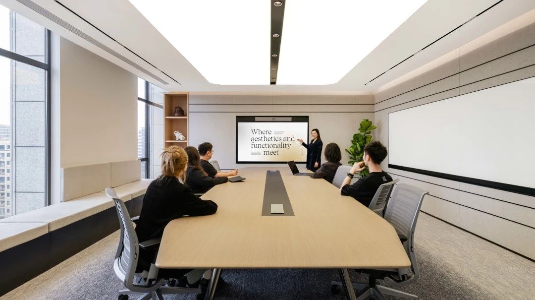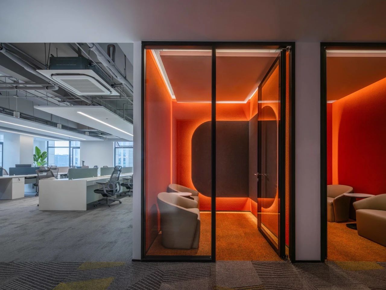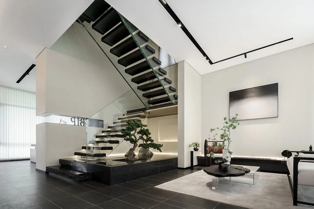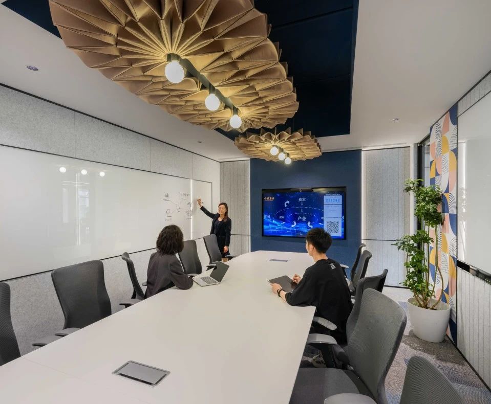 本案以黑白为主色调,创造一个充满光线和单色的空间,与工业美学产生共鸣。在现代简约的风格里,以简洁克制的手法,将精致和个性内敛于黑白之间,凸显企业高效、专业、务实的特性。会客区开放式设计,动线流畅,用光线作为空间里惬意而温和的叙事开场,光影之间平添几分雅致,创造自然气息的自由流动,简明大方的质感塑造的恰到好处。办公区以大面积的黑白,混搭交织原木、暖黄色系,冷暖相融,简约时尚的同时又不失温度。弧形的办公桌,去繁从简,虚化掉了空间的紧张感,更添一丝趣味。