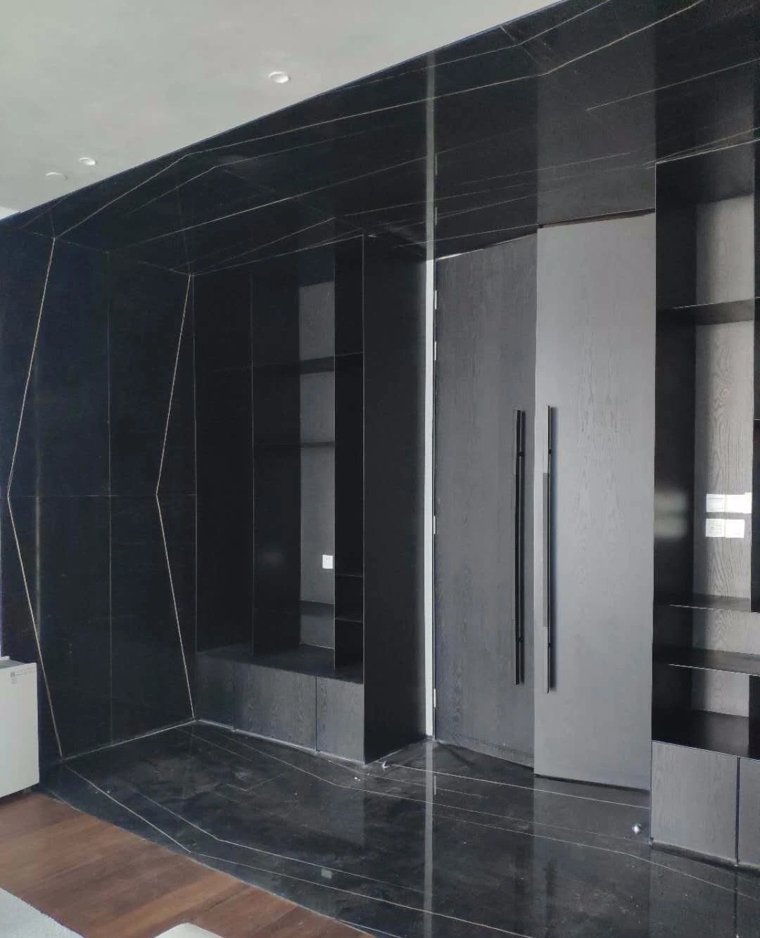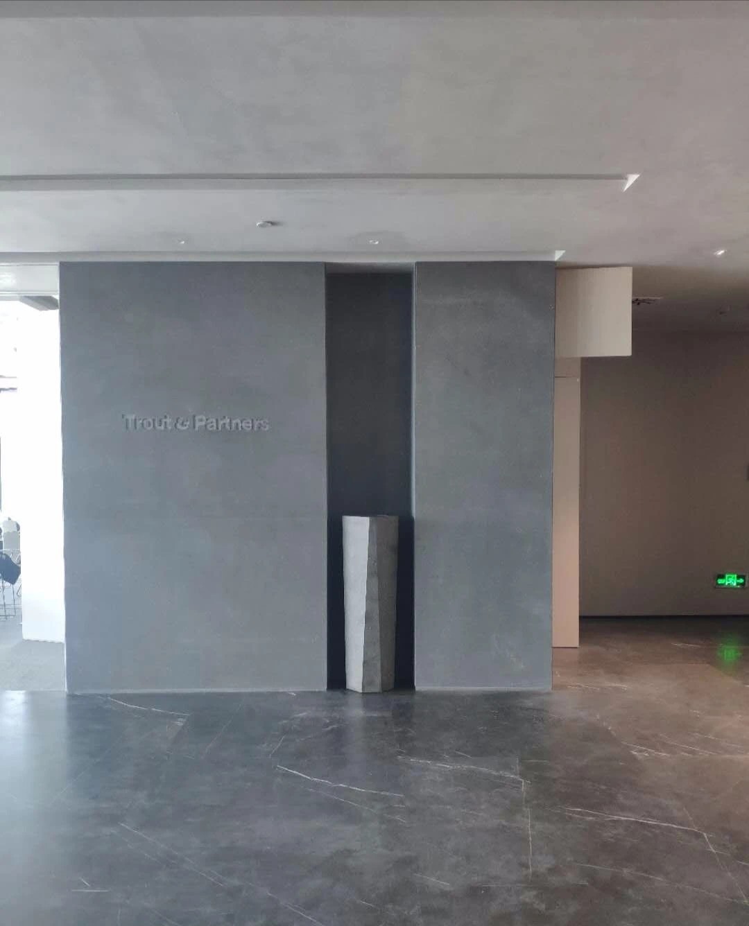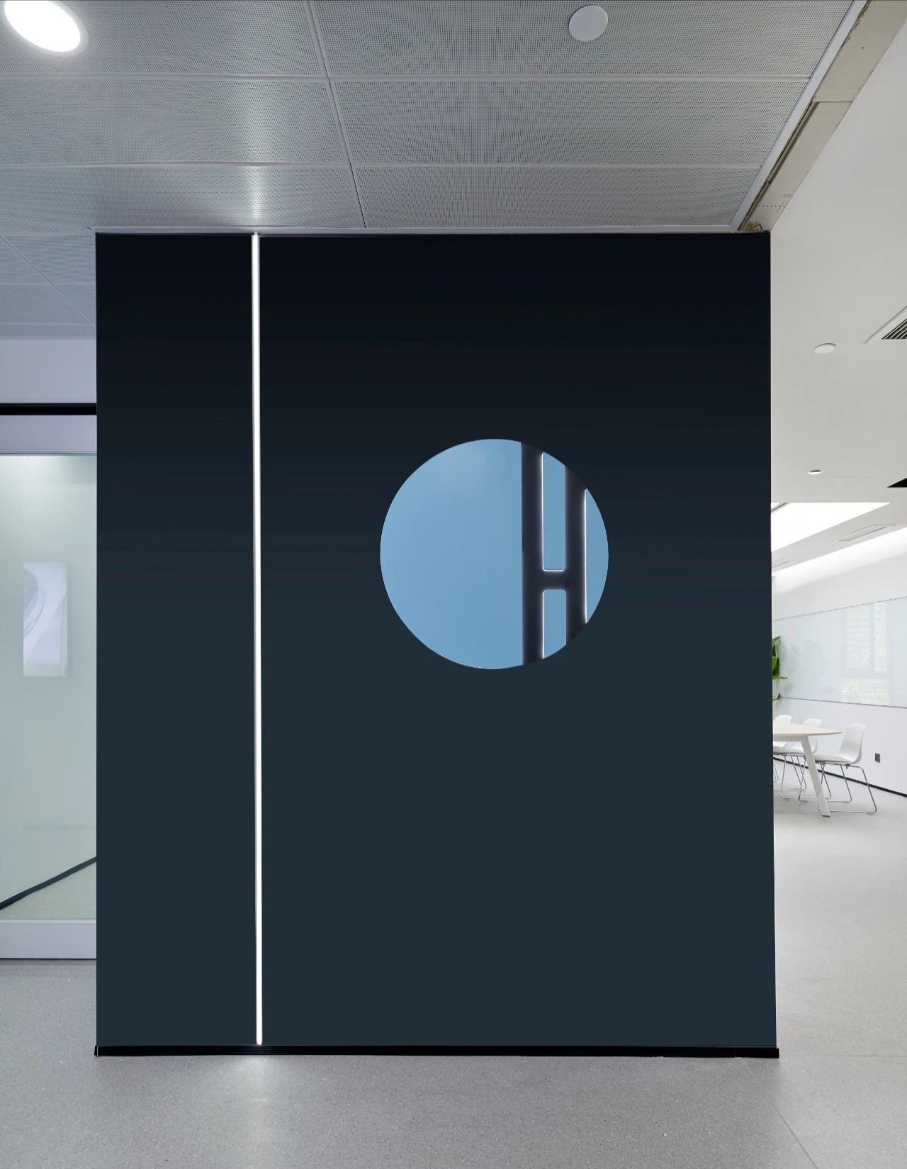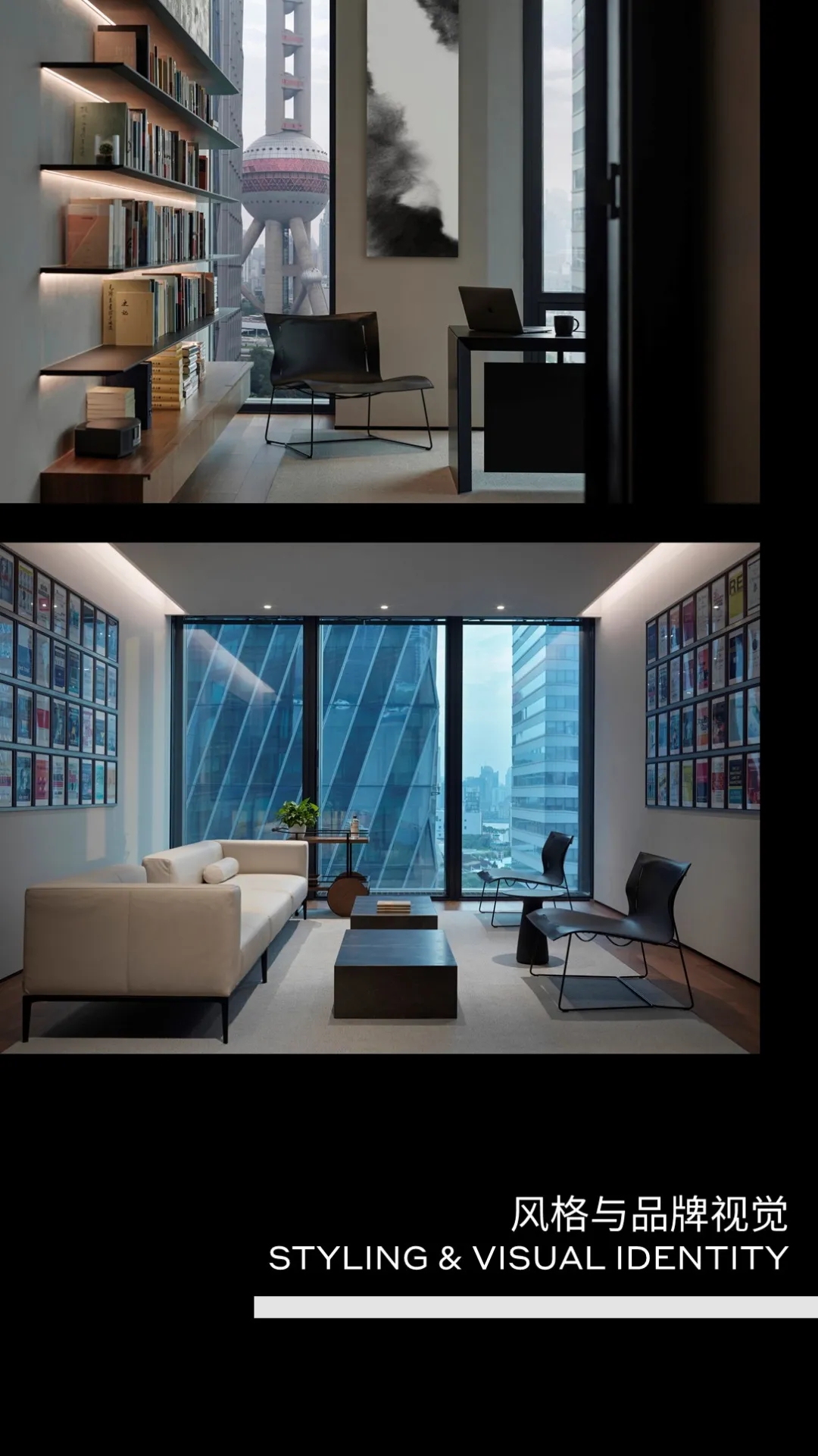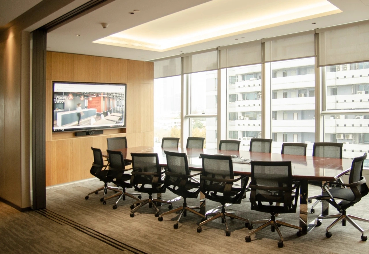 门厅材质选用微水泥,纹理细腻,增强墙面肌理质感,完美地呈现出现代极简主义的写意之美。素色空间中绿植的点缀犹如点睛之笔,赋予美的同时,仿若一抹流动的绿意,为空间加持生机与活力。会议室同样以“简静”为主题,局部以企业文化宣传墙调和空间气质,展示品牌实力,多媒体影视装置加强了墙面空间的信息辐射作用,为参会者提供高效舒适的视觉体验。总经理办公空间并没有过多的繁杂的装饰,品质,时尚,舒适与艺术,对于私人办公空间尤为重要。地毯、木质、皮质等温润材料的选择柔化了室内空间,创造了温暖的的质感,可以畅快地感受空间尺度感与自由。