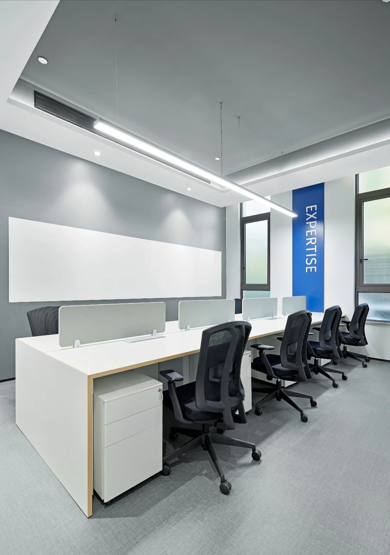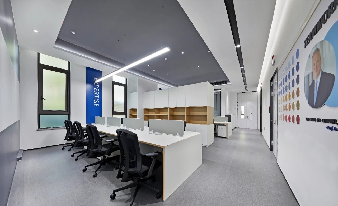 开放与半开放、不同功能间的空间交互,既能让员工专注于特定任务,又能讨论或进行其他社交活动,空间的有序规划,满足员工不同需求,同时确保环境空间的便利性。办公的核心设计,是要进行恰到好处的“留白”。在为数不多的色彩与装潢中,在打破局限、创建趣味与高效的同时,予人以“放空”。即使身处钢筋水泥的城堡,也可回归和谐。通过对功能空间的整体把控,有效利用走道、电梯厅的空间,使整体空间具有品牌展示和品牌叙事的功能,也使访客的参观旅程记忆。考虑到企业对外接洽的需要,利用走道的展示空间,展现品牌的综合风貌,让空间为业务代言。同时整体规划了人流动线,可以灵活地展开对外部访客的交流并降低对公区的干扰。