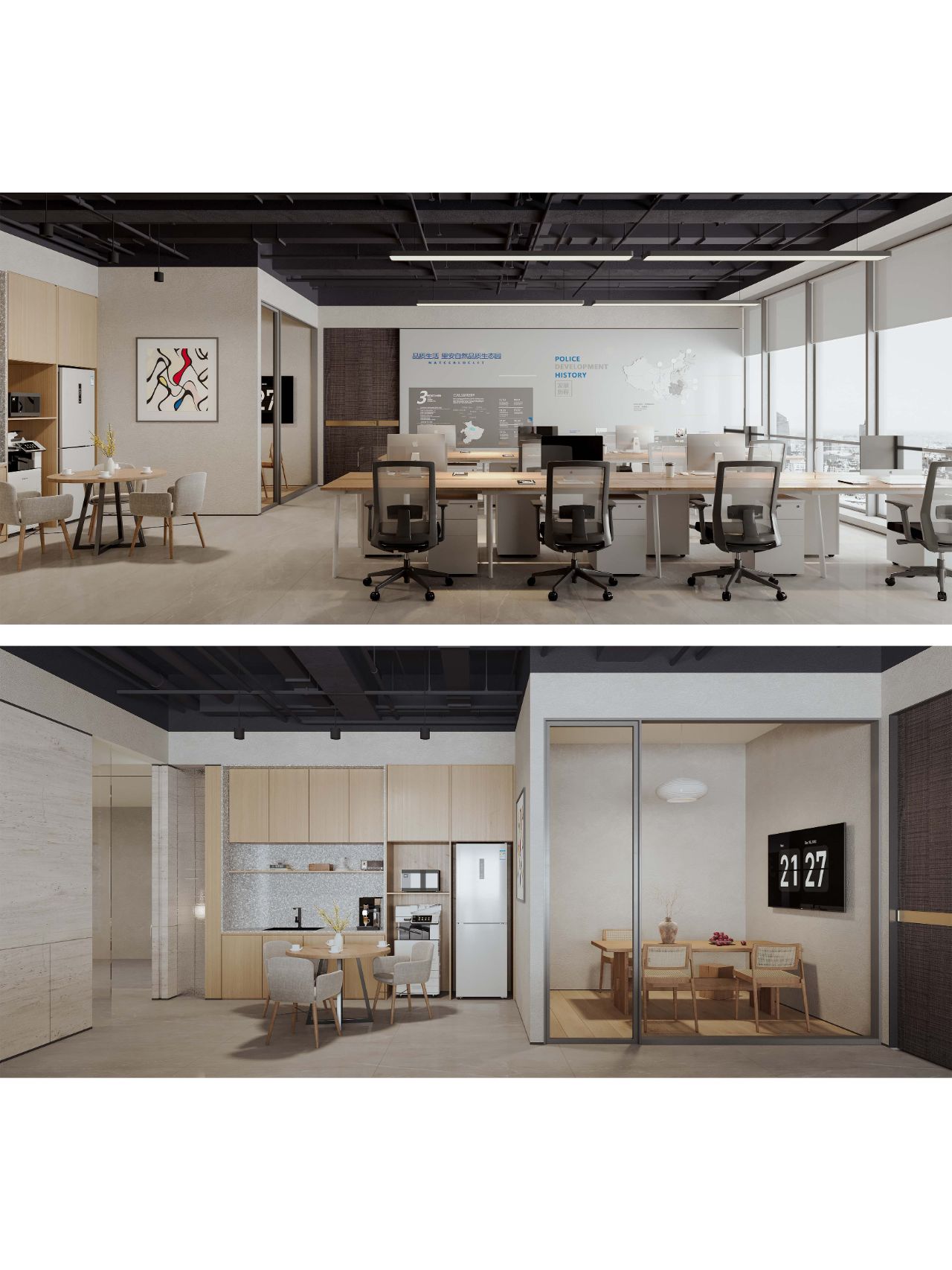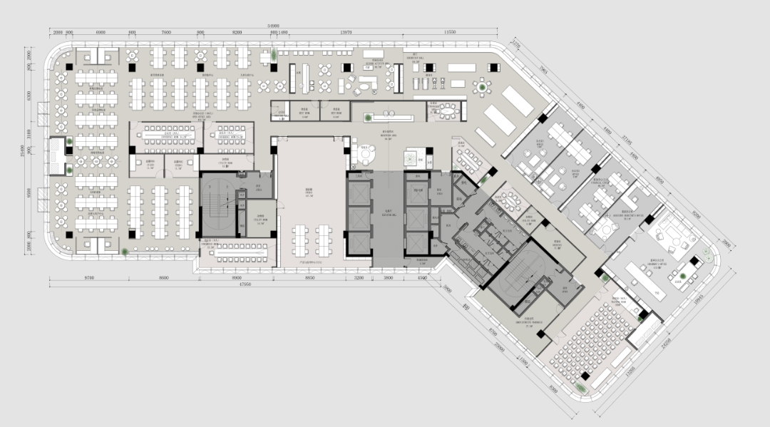 项目深研办公方式、色彩材质、功能主义三大密码,以“简约、高效、舒适”为核心理念,重视实用功能和空间组织,注重发挥建筑结构本身的形式美,讲究材料质地和色彩的巧妙搭配,旨在打造一个既符合现代办公需求,又兼具美观与实用性的办公环境。