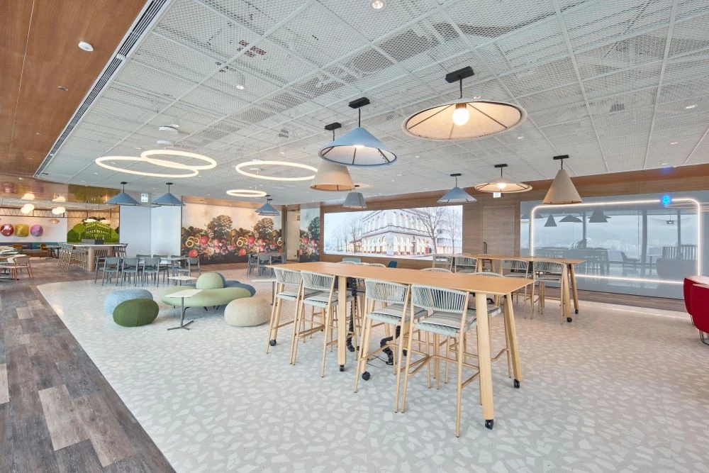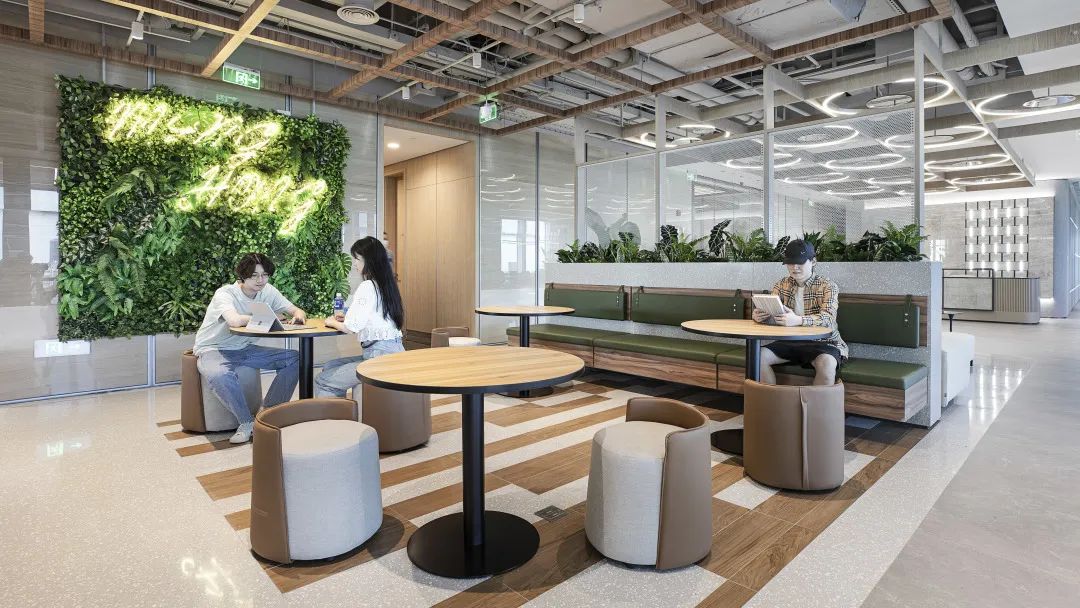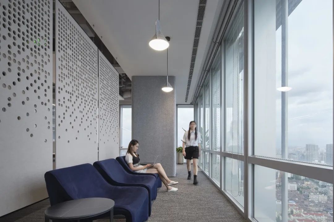 人们更希望在一个明亮的、充满绿色植物和沐浴阳光的环境中度过工作时光。明汯上海办公室拥有东、西、南三个方向的落地窗,提供了近乎360度的开阔视野,以确保全天阳光充足。