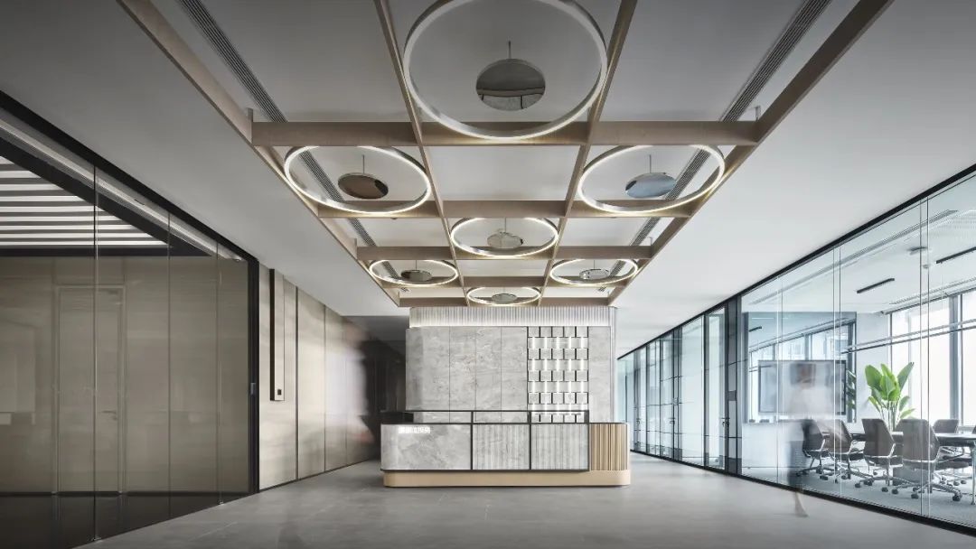 采用大理石材质呈现沉稳内敛的质感,亚克力灯带网格矩阵排列顶灯中央不锈钢营造出科技感和活力感,拼接处采用拉槽凹凸,持续探索寻找规律突破或许就在拐角处等你!