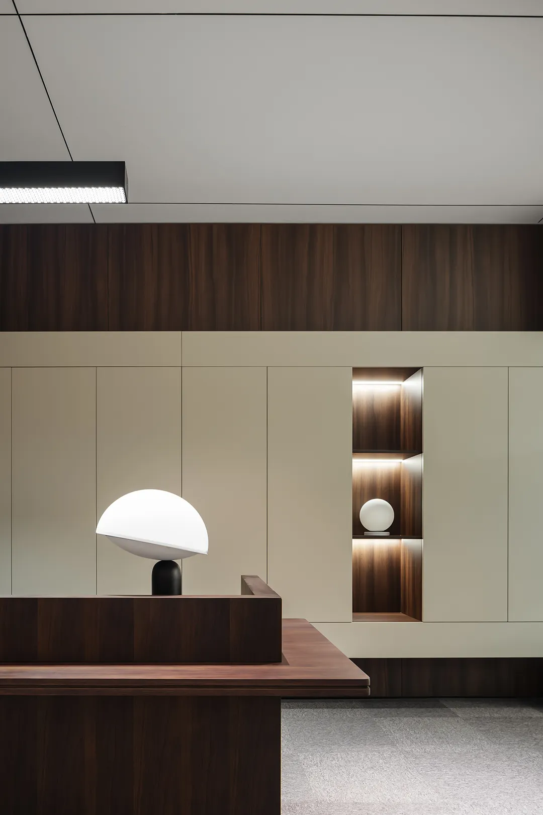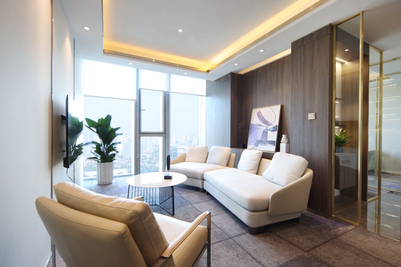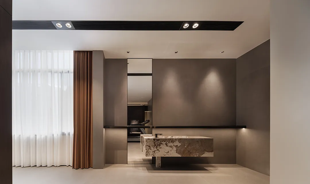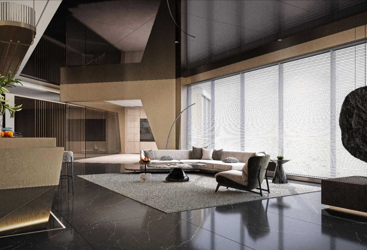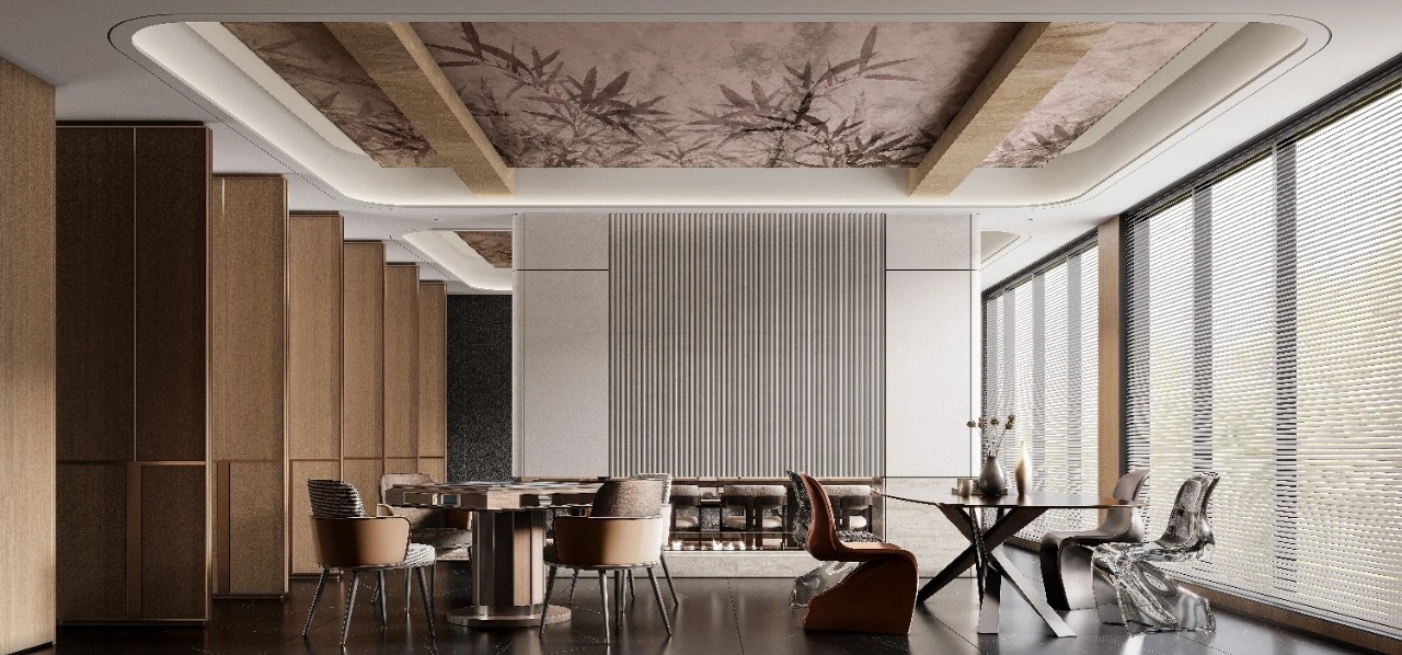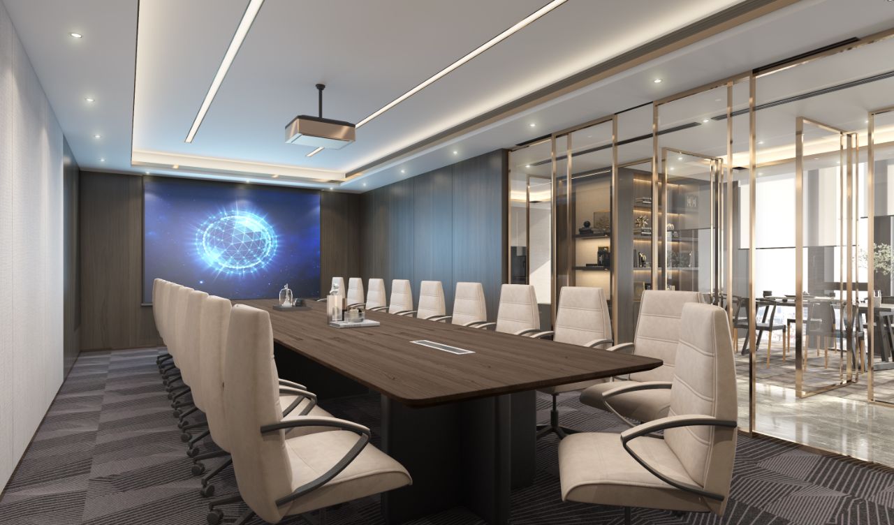 精细的线性元素突显商务氛围,搭配品牌家具与当代艺术饰品,营造出顶级商务空间的细腻质感。茶桌提供了专注与休闲、办公与洽谈的多功能需求,使得日常场景切换变得更为完美自然。