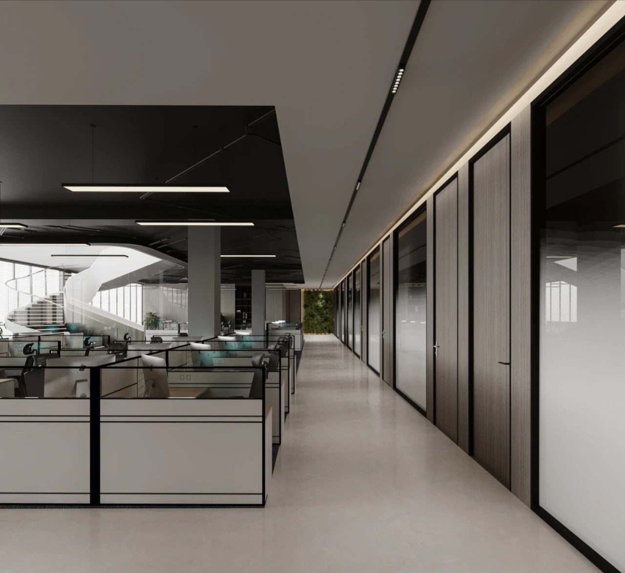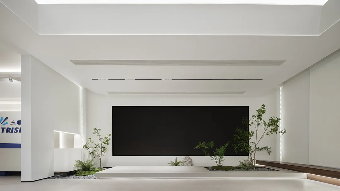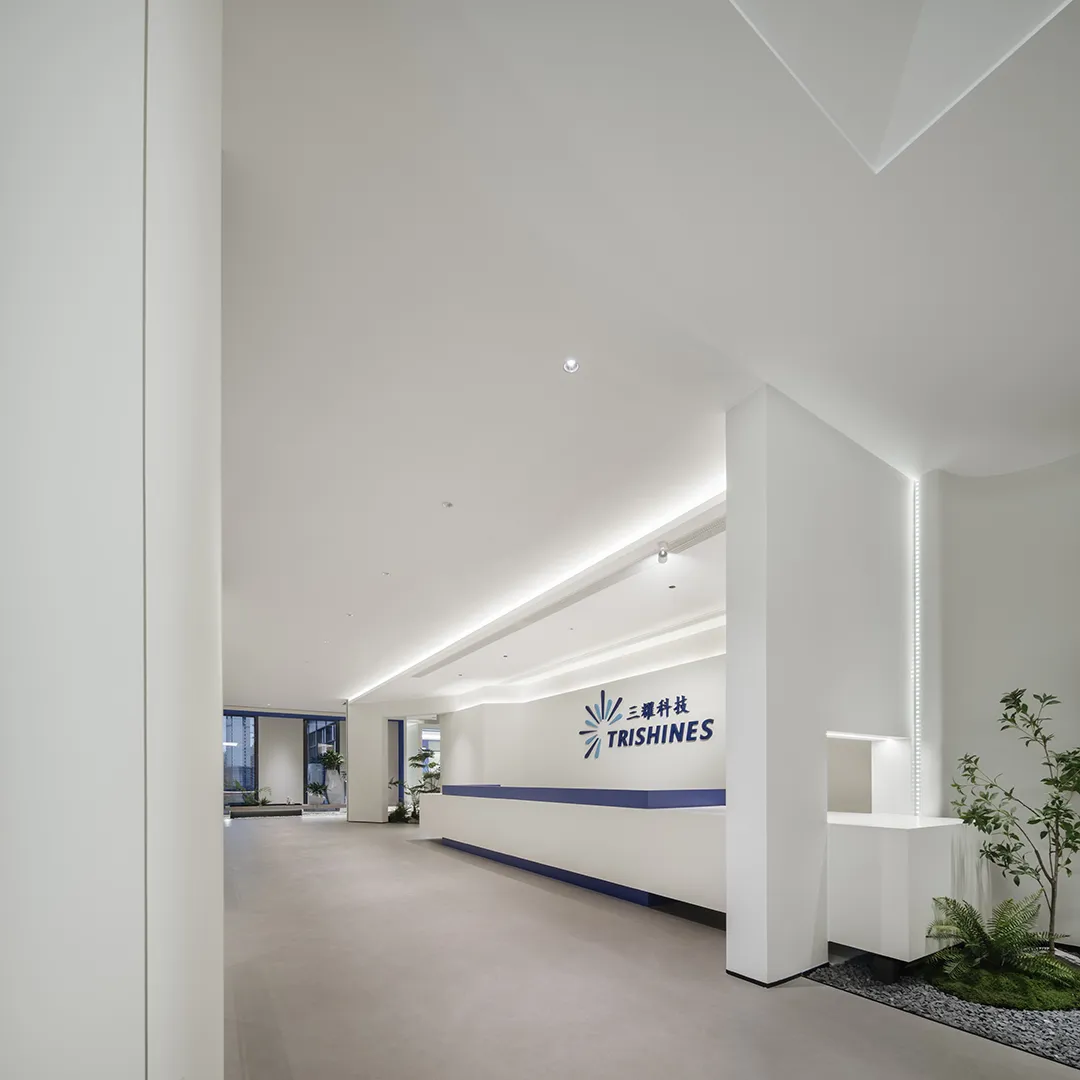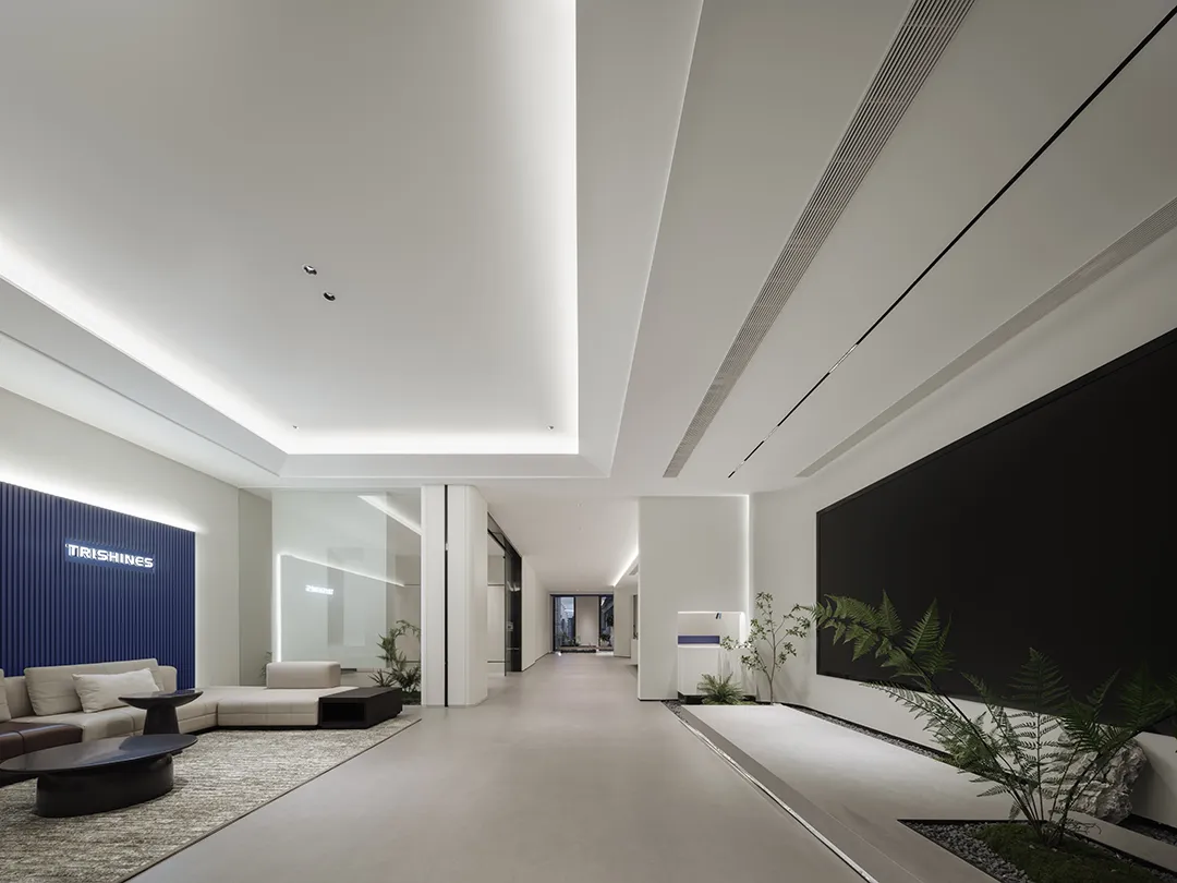 空间一隅的景观区,通过自然元素的巧妙融入创造出更具有人文关怀的工作环境。阳光倾泻而下,绿植点缀其间,仿佛在空间的每个角落都呼吸着自然的气息。设计感的线条勾勒空间的每一个细节,充满层次感与空间感,匹配色彩的极简舒适度。