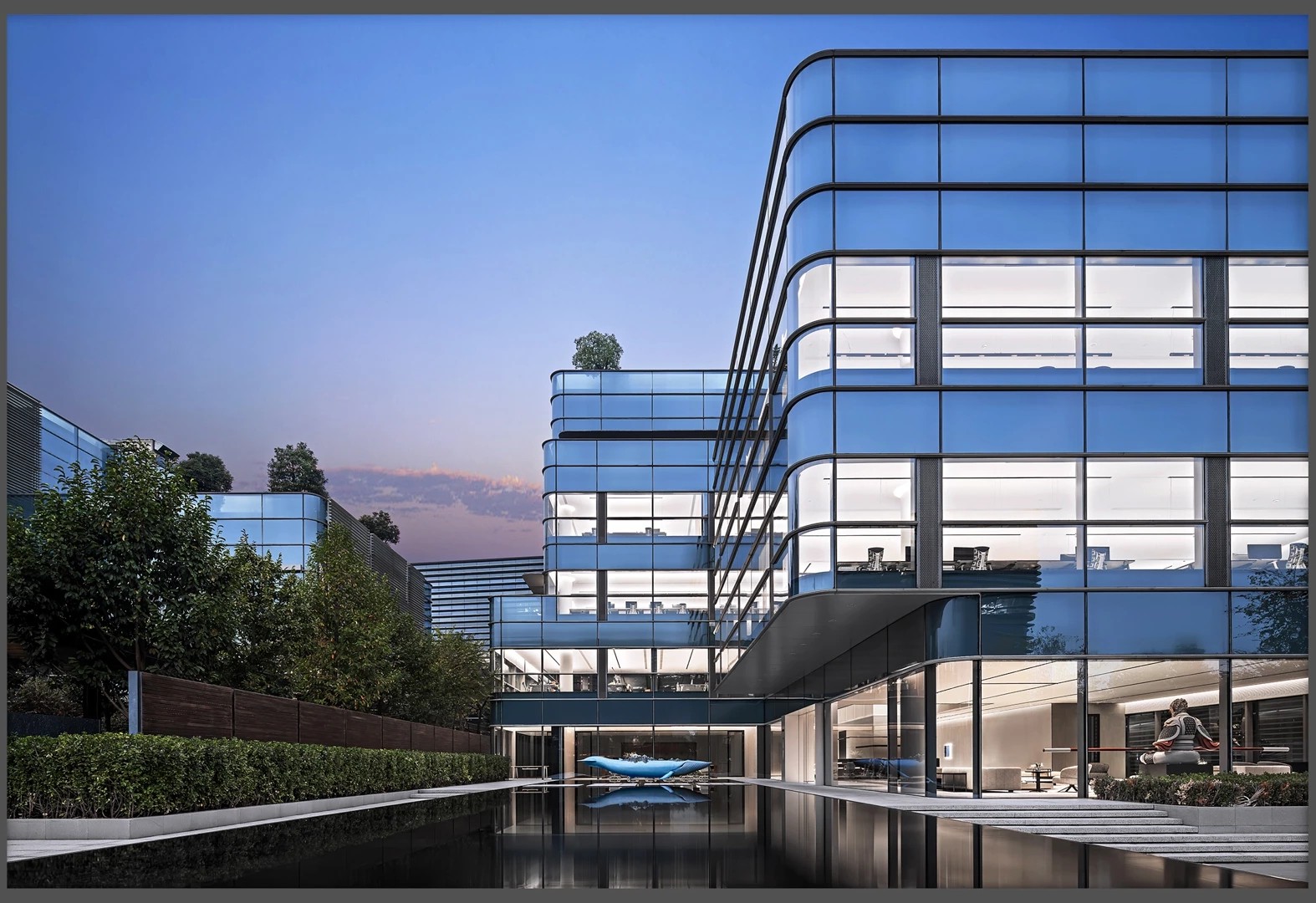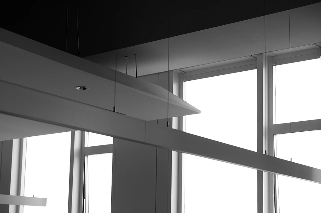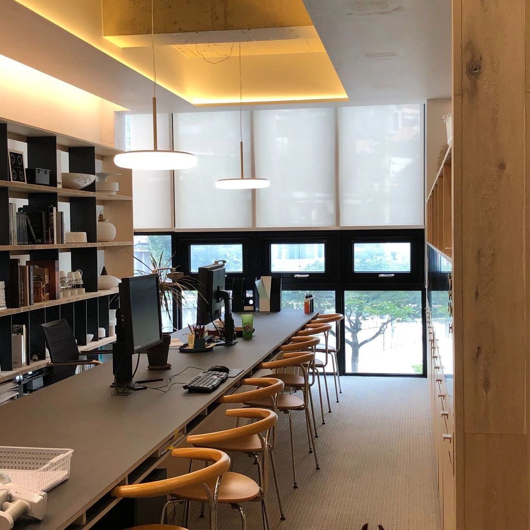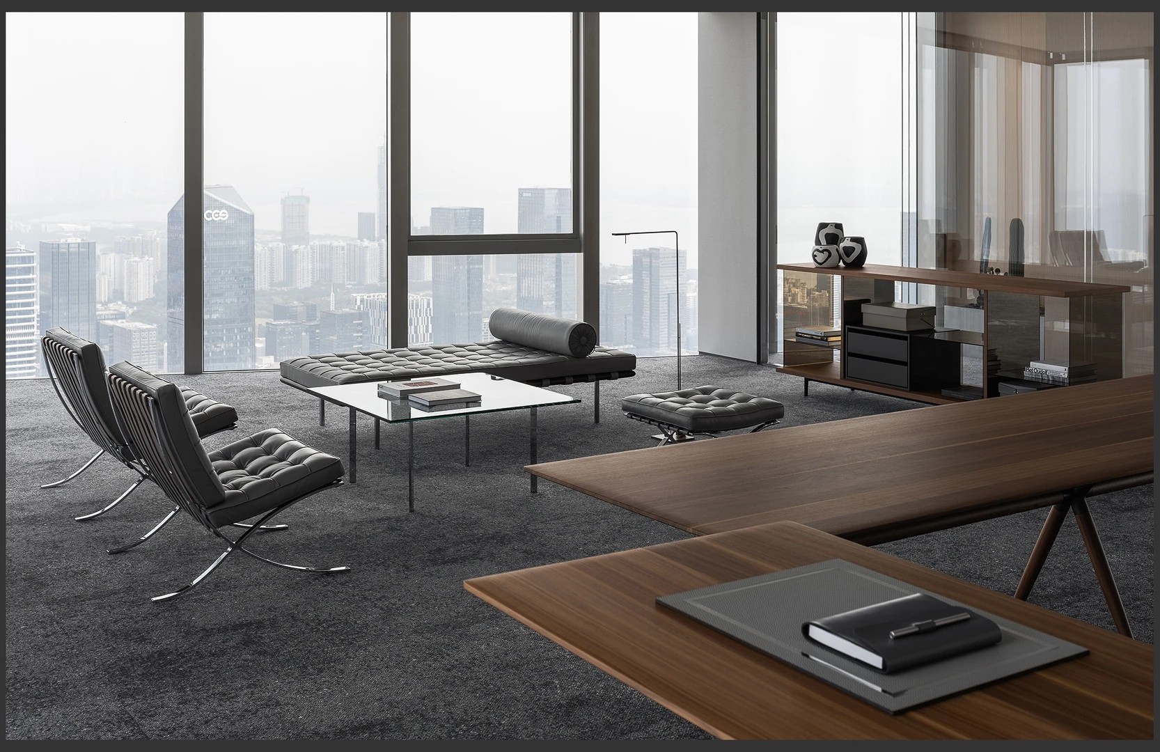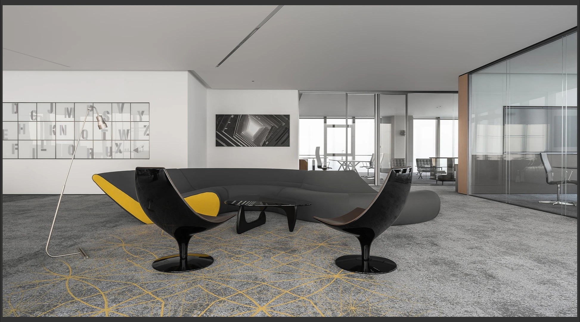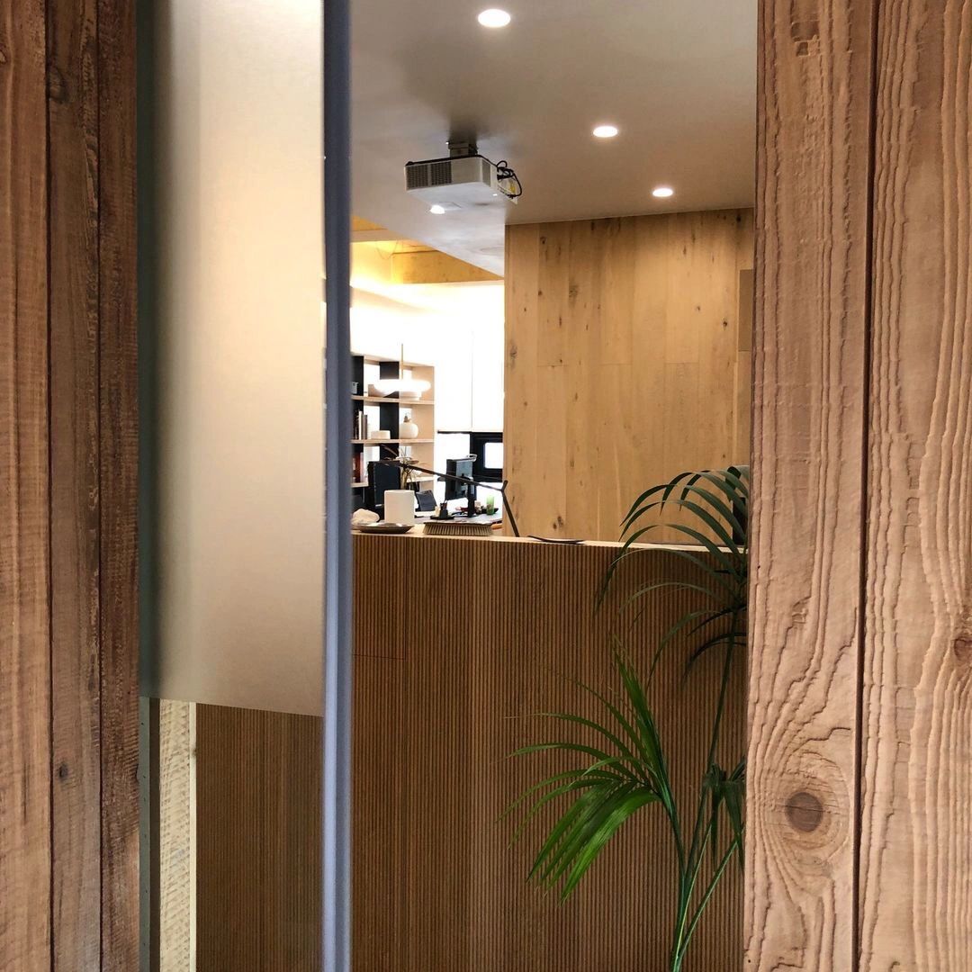 22楼的空中大堂为进入高层职能办公区主要入口,并新增了楼梯连接23楼顶层,在大堂入口处迎接访客的是取代常规LOGO的水景,由水景将人引向窗外景色。
