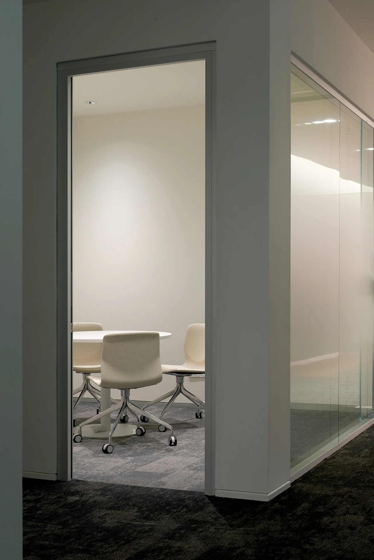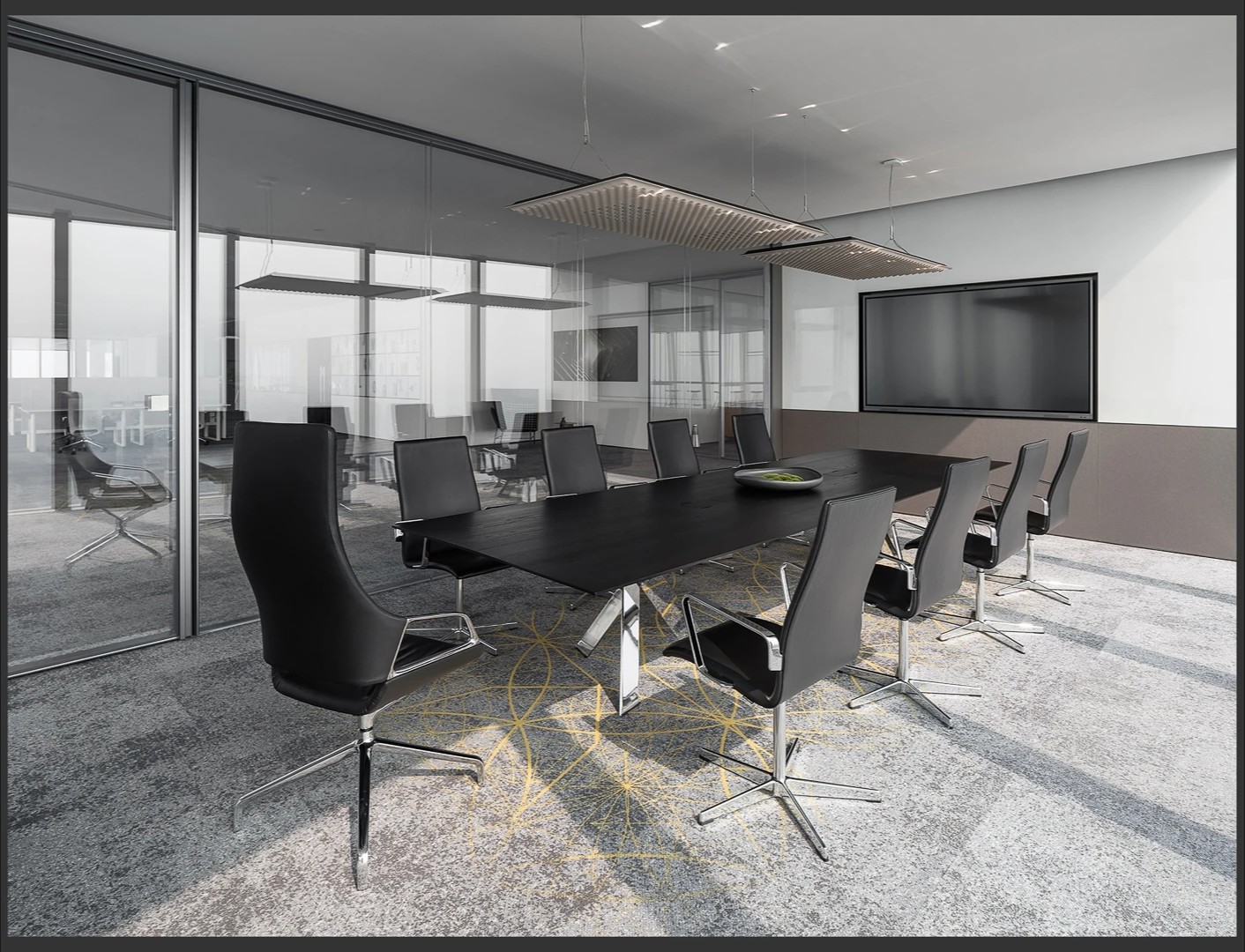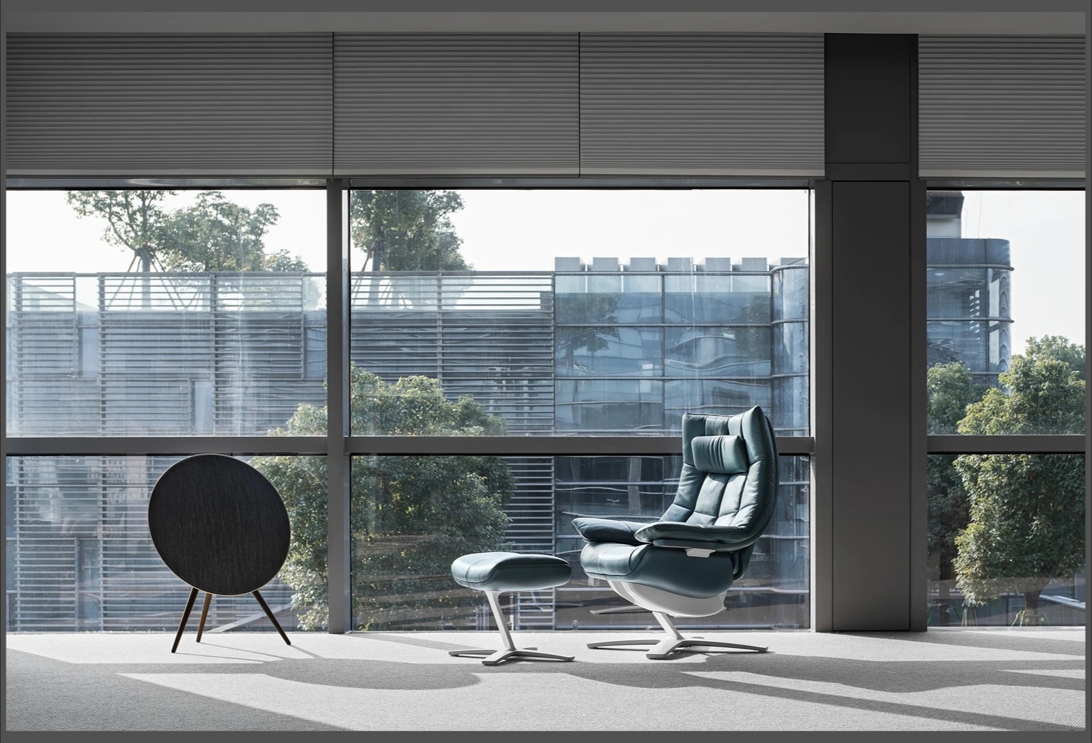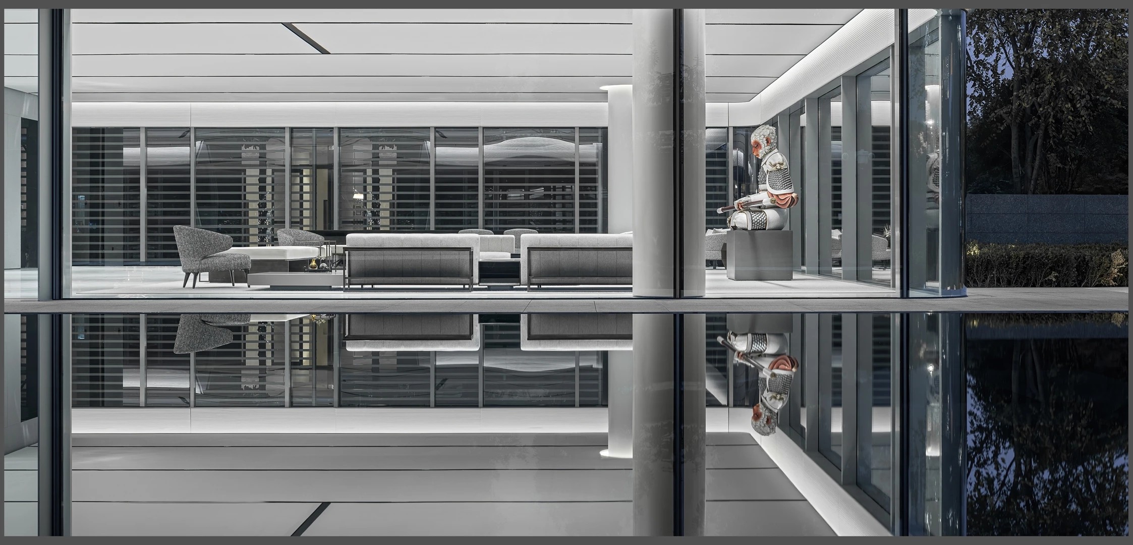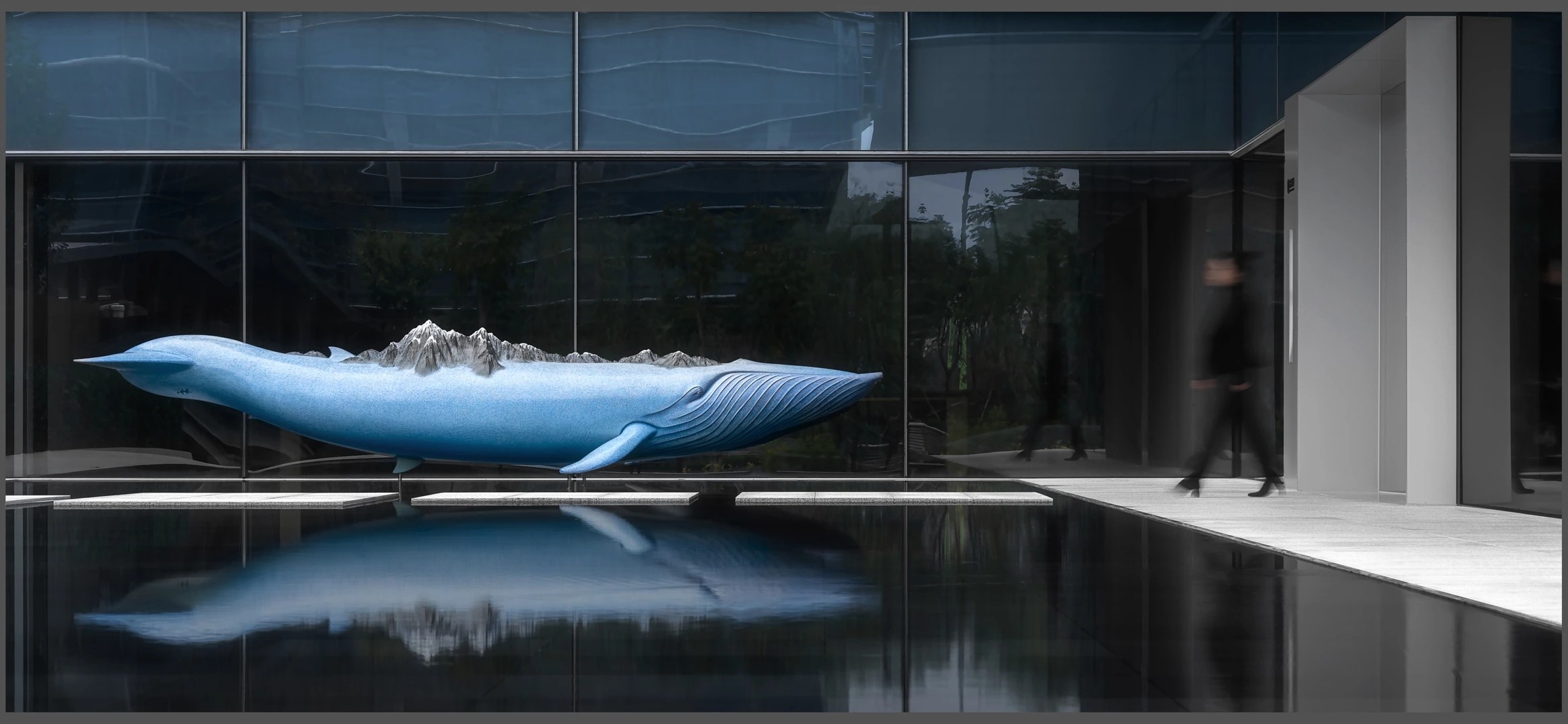 22楼的空中大堂为进入高层职能办公区主要入口,并新增了楼梯连接23楼顶层,在大堂入口处迎接访客的是取代常规LOGO的水景,由水景将人引向窗外景色。