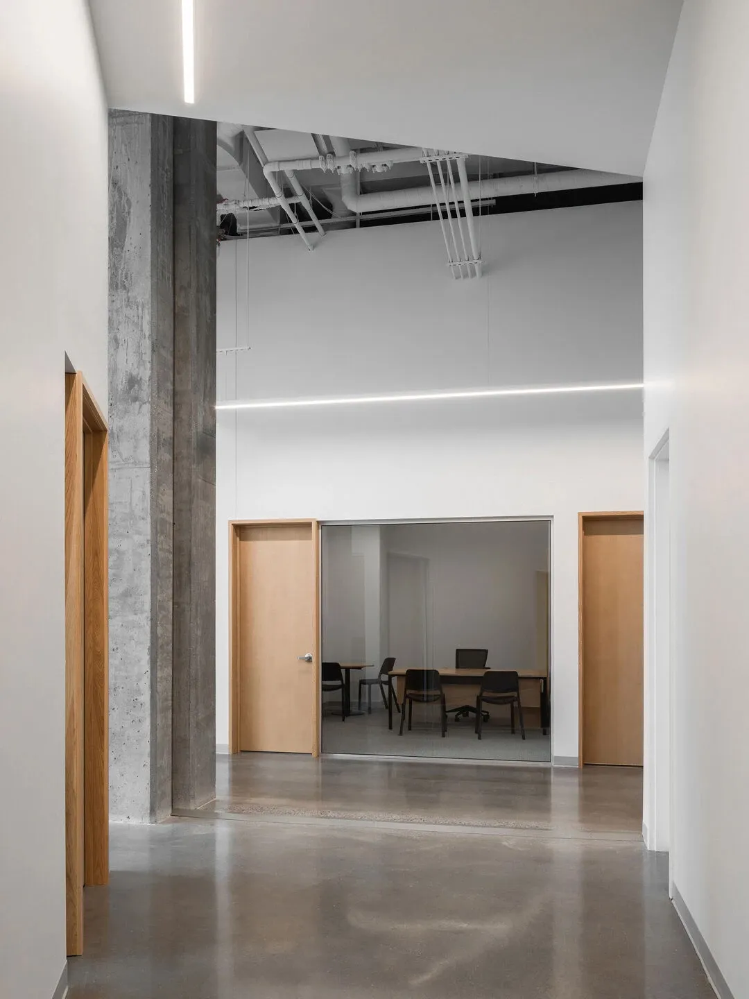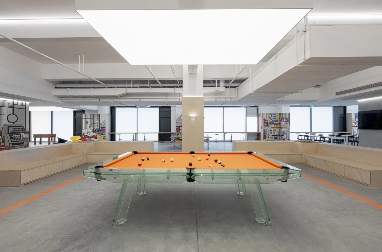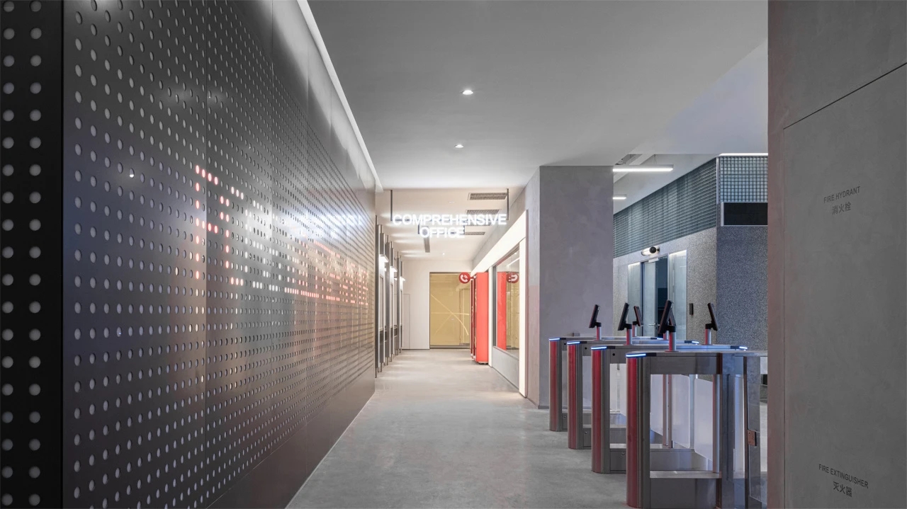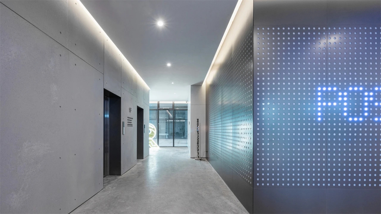 入口区域以混凝土搭配穿孔板的组合,呈现十足的科技感与未来感,符合以工匠精神与卓越技术为本以创新引领发展的企业精神。在办公休闲区域引入乒乓球桌,打造了一个如社区般温暖的运动场域。员工在繁忙的工作间隙可以在该区域得到放松,提升工作效率,同时也能增强团队凝聚力。