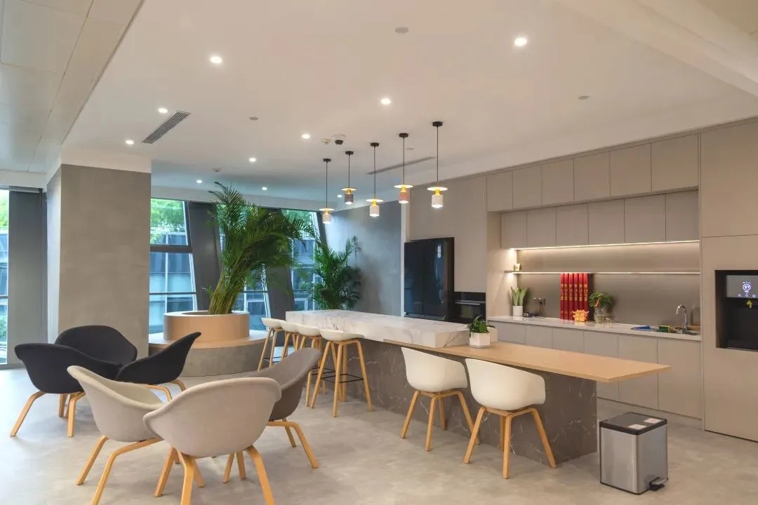 开放式办公区提供自由而开阔的工作环境,以动态布局和促进连接为特色,缩短人与人交流的距离,方便团队协作,不断滋养团队向上的创新力。多样的会议室布置,满足不同场景和人数需求,提供多样化的会议体验。多媒体设备与交互式白板的引入,确保无缝的数字体验以及沟通的效率——不管是面对面还是远程会议。