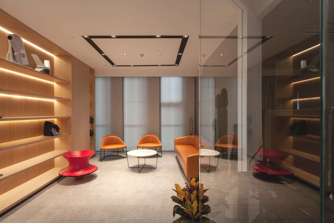 整个办公空间无论在空间划分、功能组合、材料运用,还是色彩搭配、灯光运用,都体现了现代科技感。通过简约的手法强调个性,通过简洁的材料创造鲜亮的空间形式,每个空间都考虑到不同的功能。用简单元素之间的对比,呈现出现代科技创新的形象。