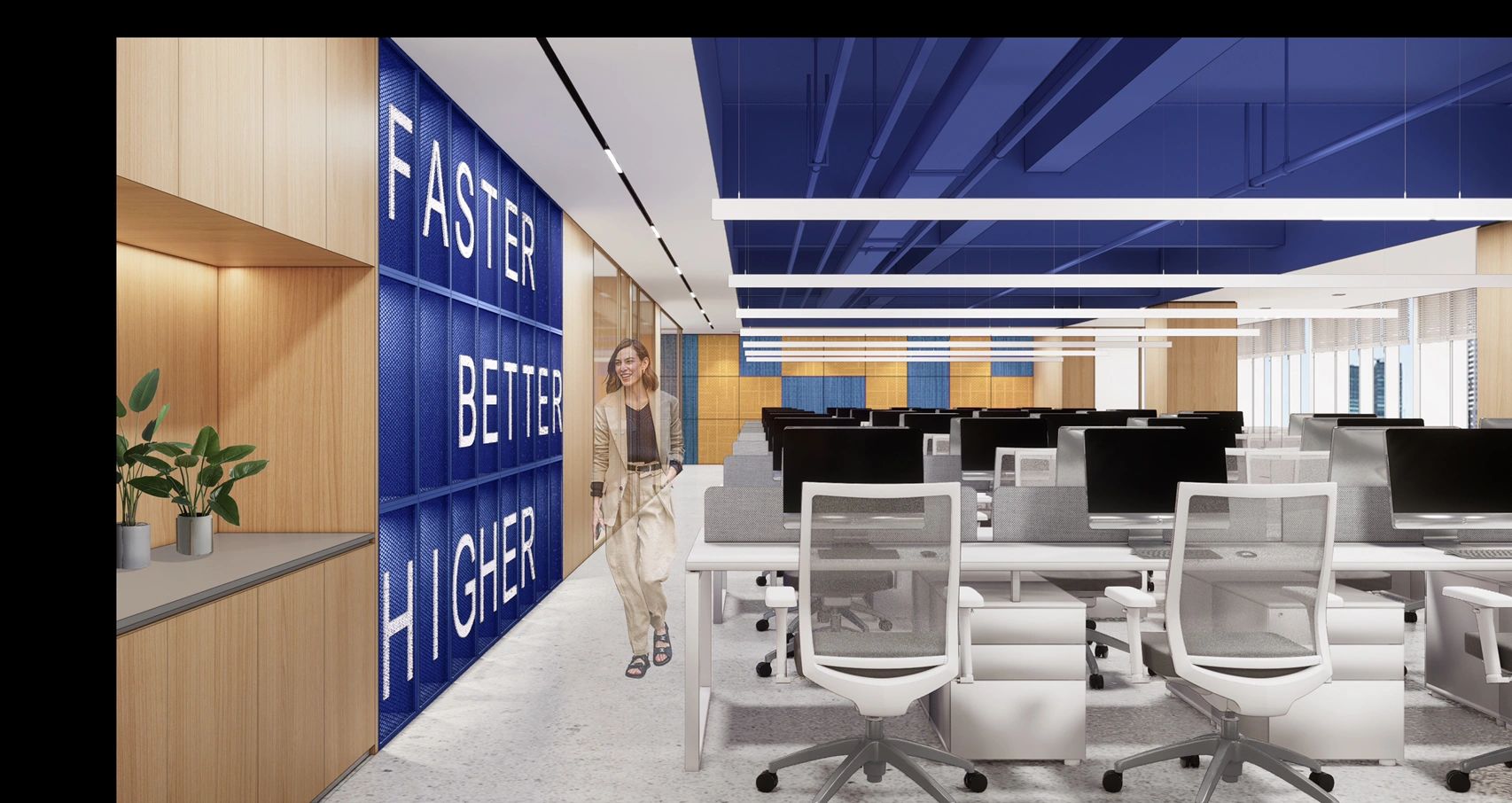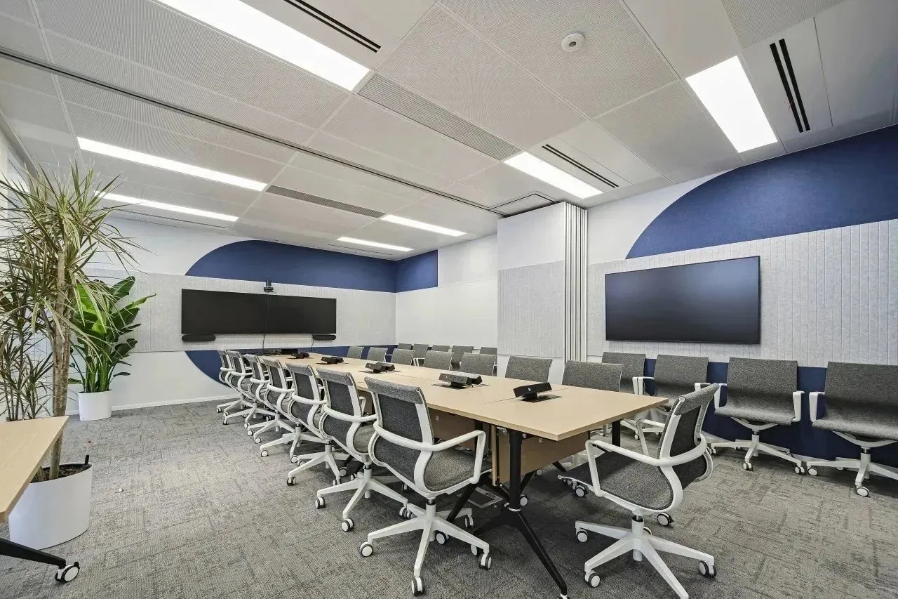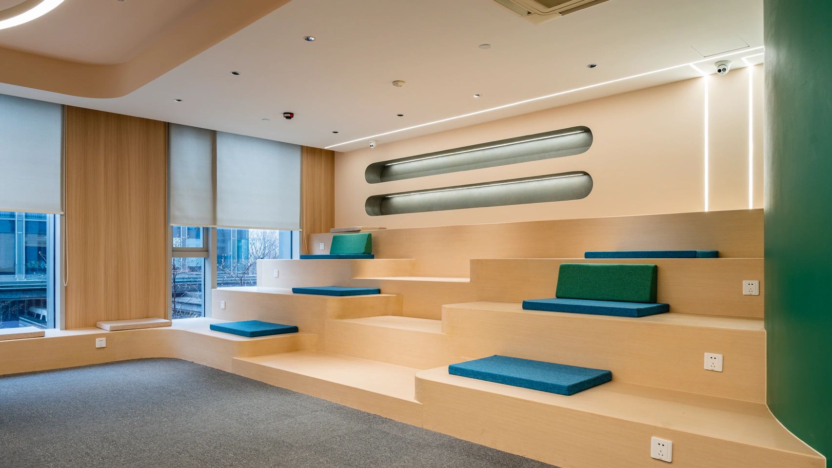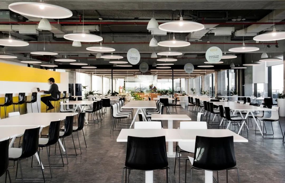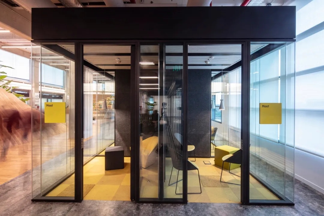 室内设计的材料配色主要是用木材、玻璃、植物和艺术品,营造出一个舒适温暖的工作场所。使用玻璃作为隔板使得整个室内空间更加流畅,增进了人们视线的交流,并能够充分地采光。地板设计采用了塑胶地板与天然木质地板,同时模块化地毯与独特的定制设计相结合,共同创造了舒适的办公空间。设计的核心要点是实现楼层之间的快速转换和达到节约能源的目的。该办公楼已被认证为LEED白金级绿色建筑认证,与此同时在建筑楼,办公空间也融入了可持续的设计理念。全新的使用方式,创造了一个标志性空间,而这一切要得益于一个增加员工归属感的流动空间的初步设想。