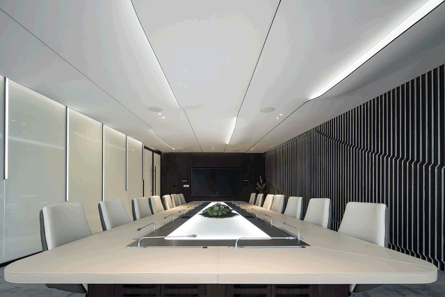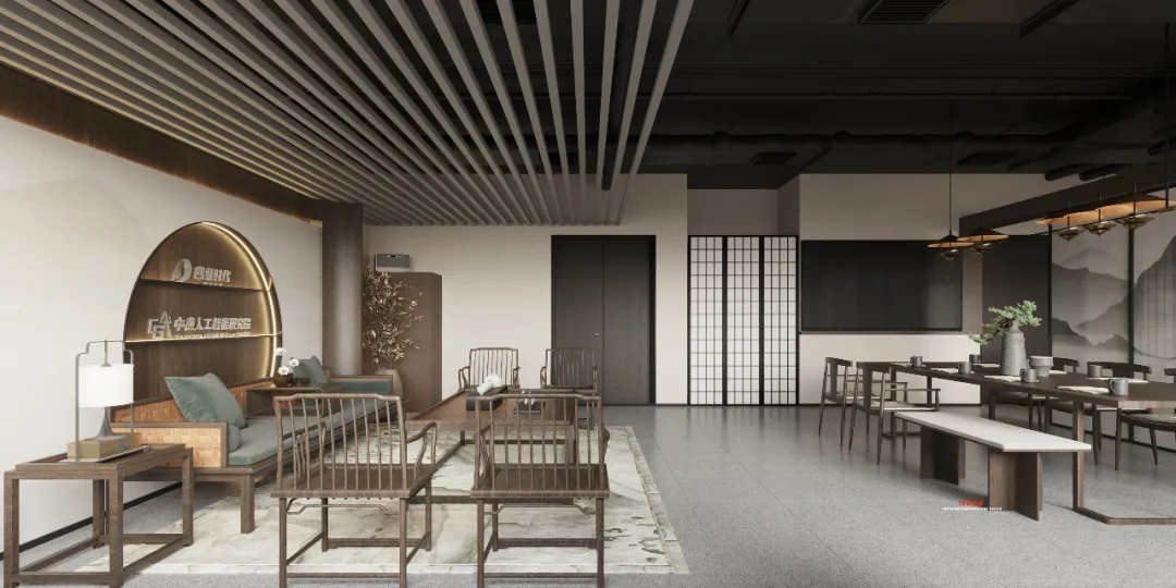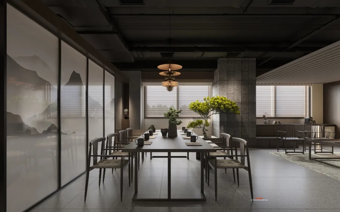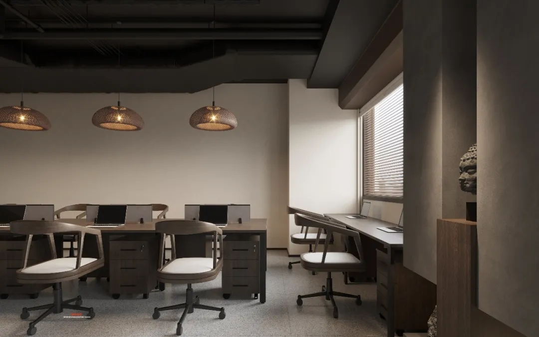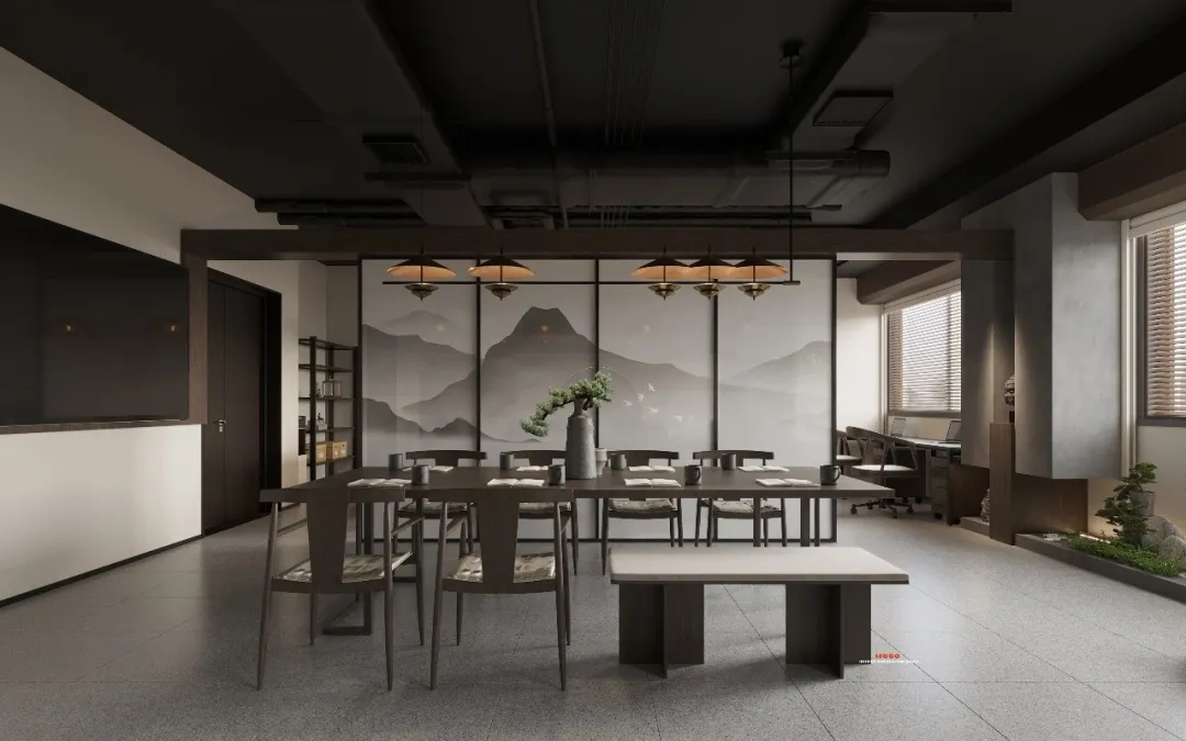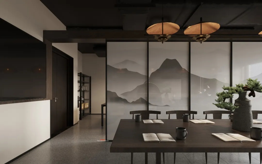 会客区的右侧为硬装设计区。采用暗装电动移门作为两个区域的分割线,确保硬装办公区的独立性。通过合理的区域划分,实现空间使用的独立性,确保沟通洽谈的高效进行。