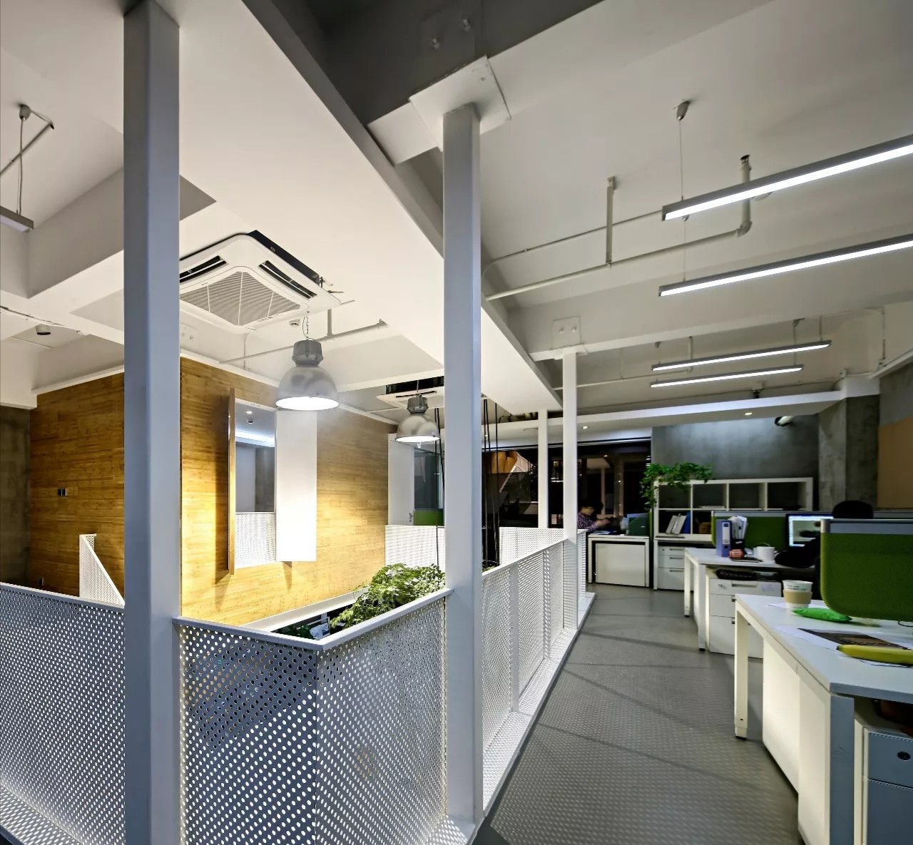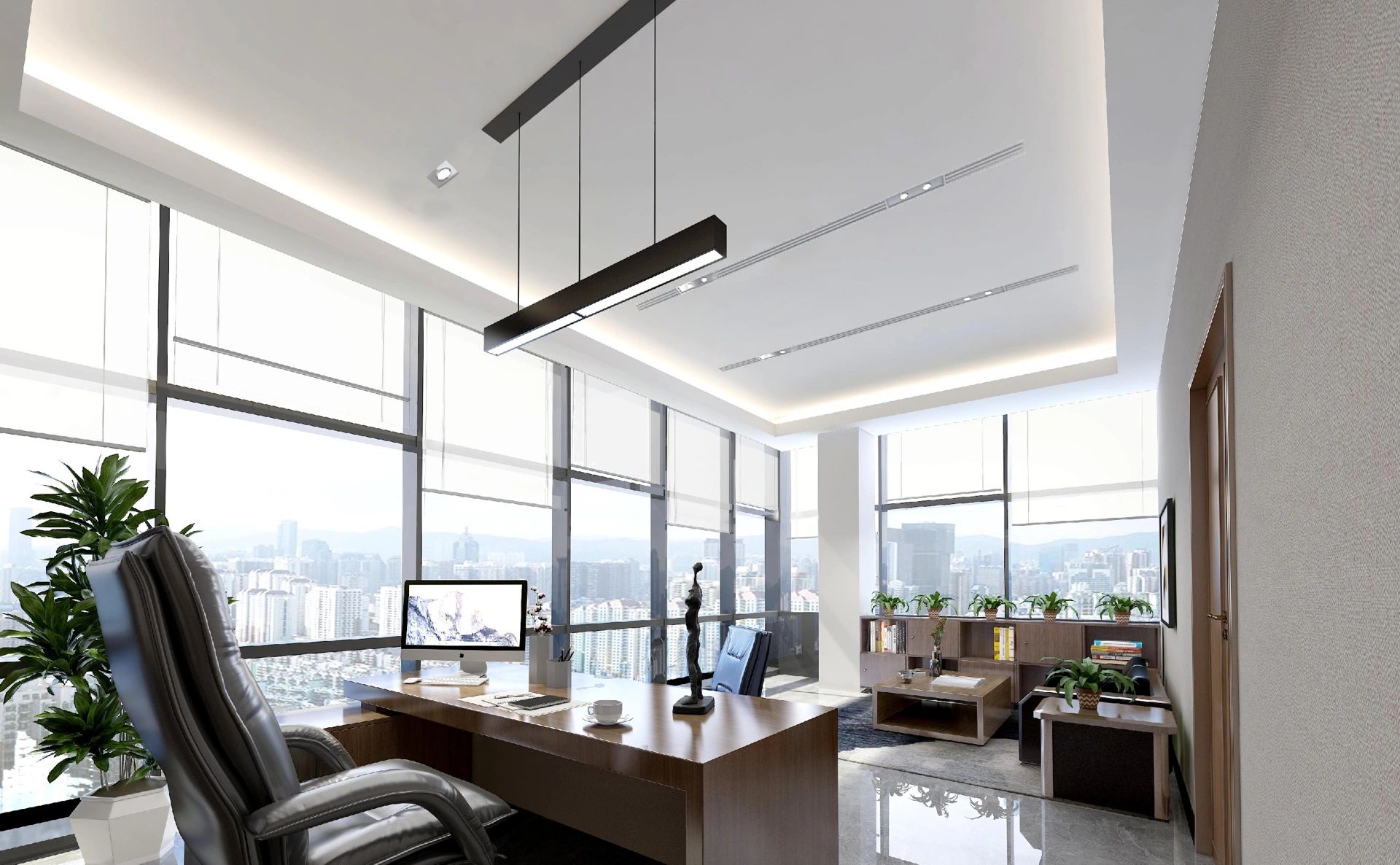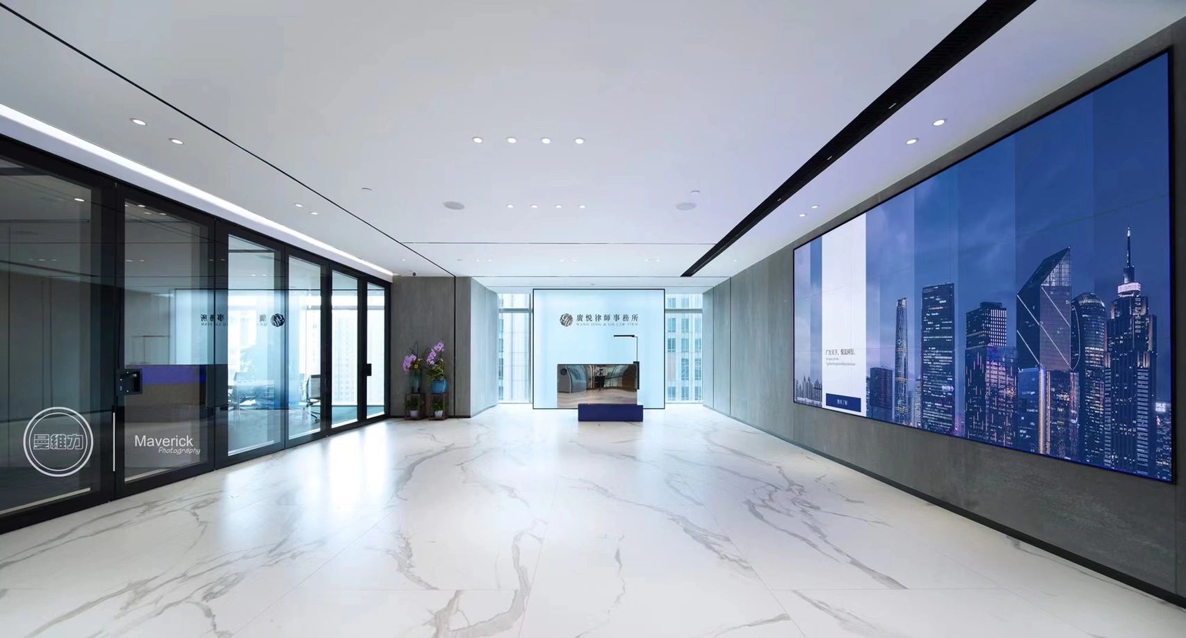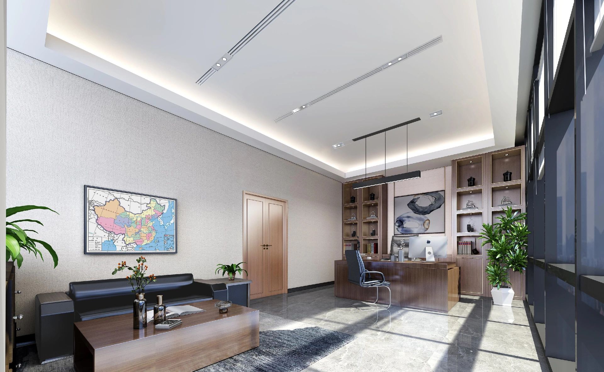 会客区的右侧为硬装设计区。采用暗装电动移门作为两个区域的分割线,确保硬装办公区的独立性。通过合理的区域划分,实现空间使用的独立性,确保沟通洽谈的高效进行。