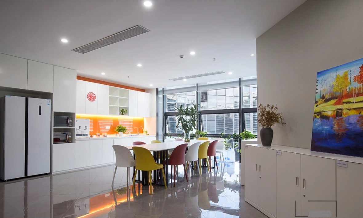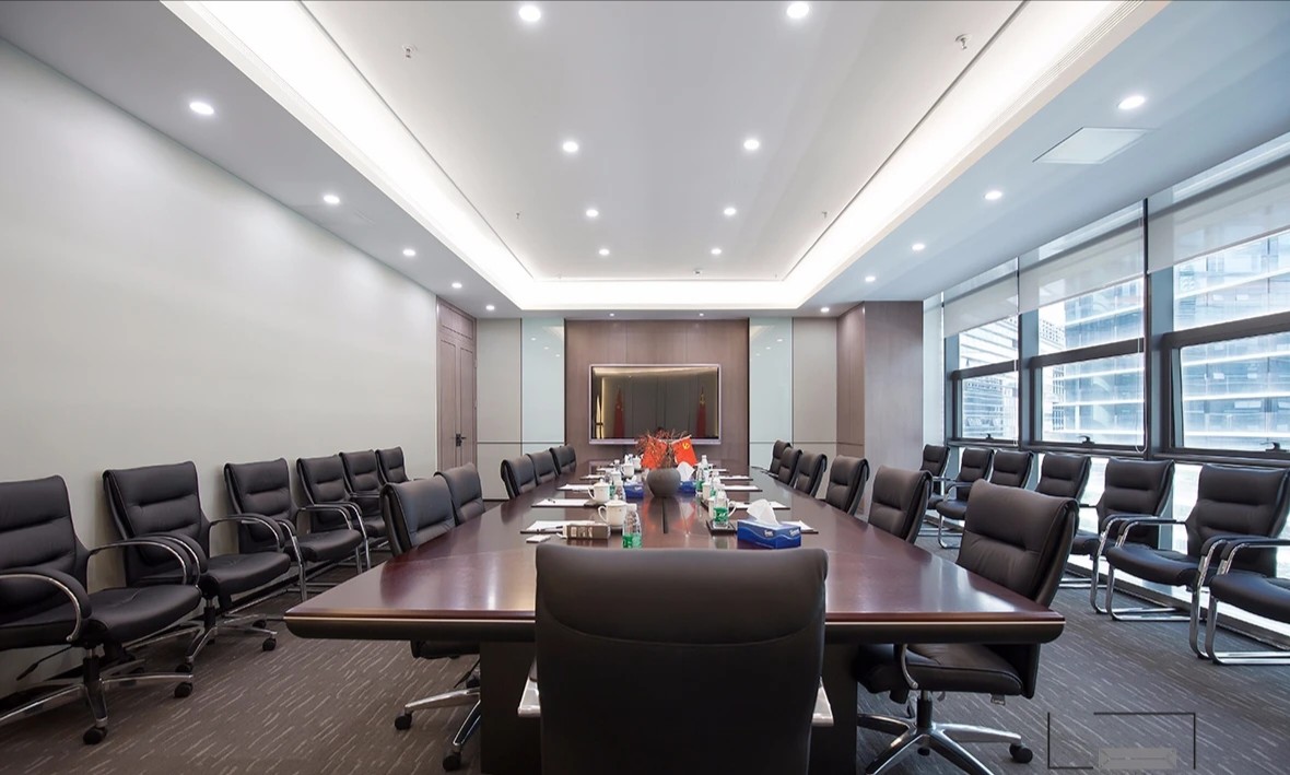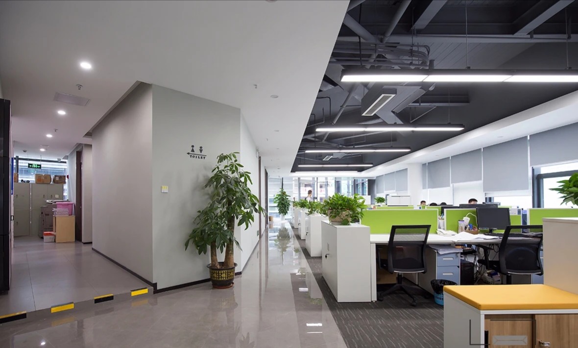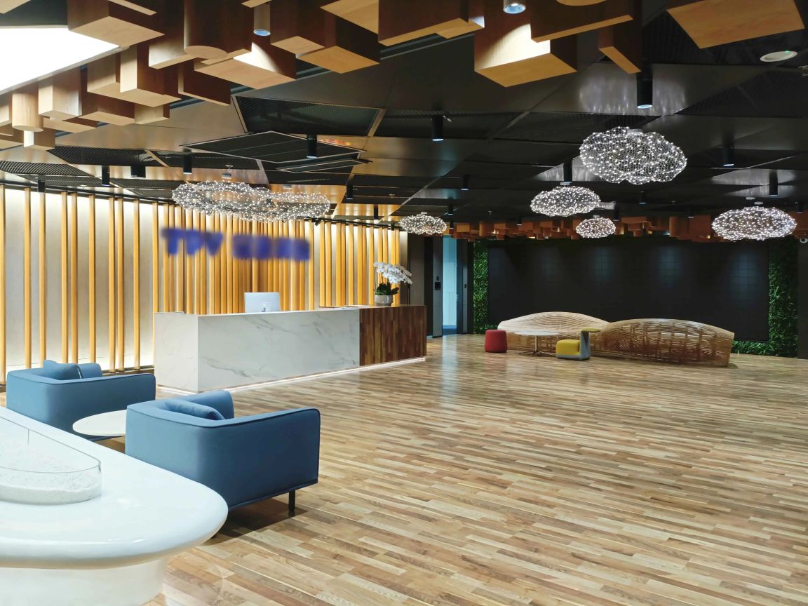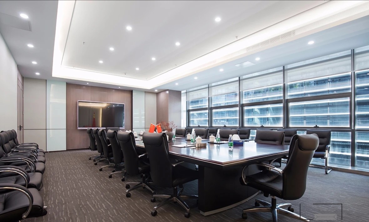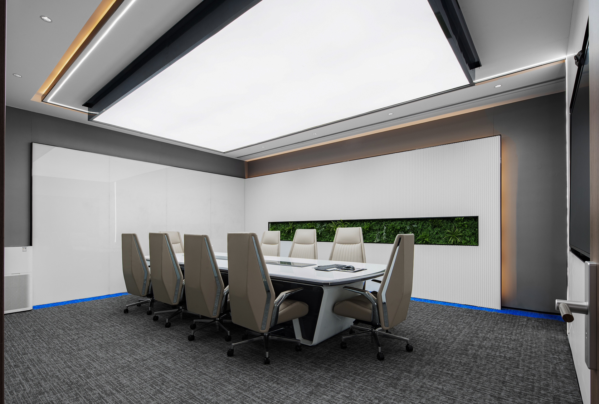 一楼前台 | 接待区以醒目的名称和灯光作为引导,人们依照自己的期待赋予专属的记忆空间,进入一个充满朝气的工作世界。开放式办公区域设计师将开放式办公区域、会议室,接待室办公元素打通集合一起,这样在整体办公的环境下,也有着高效独立的高层办公组合空间。在空间与空间之间不仅仅是利用设计媒介分割,而且利用具有空透、连通性的元素进行分隔,即空间的分割合理。