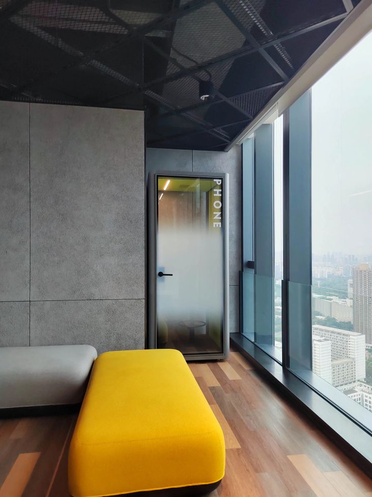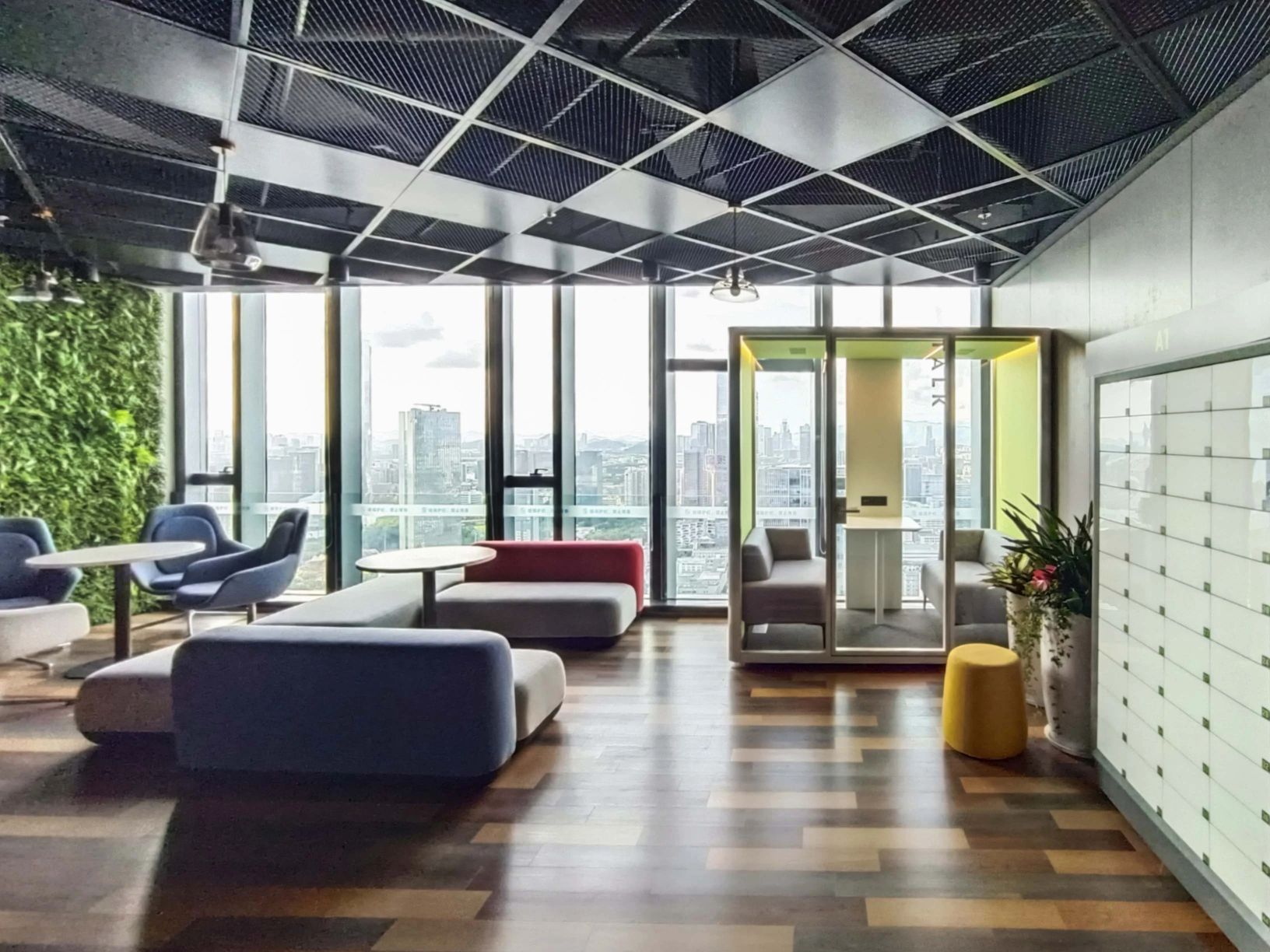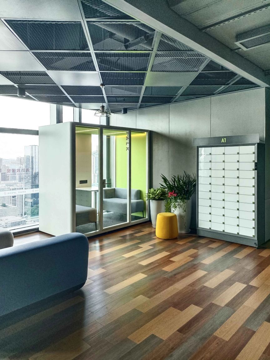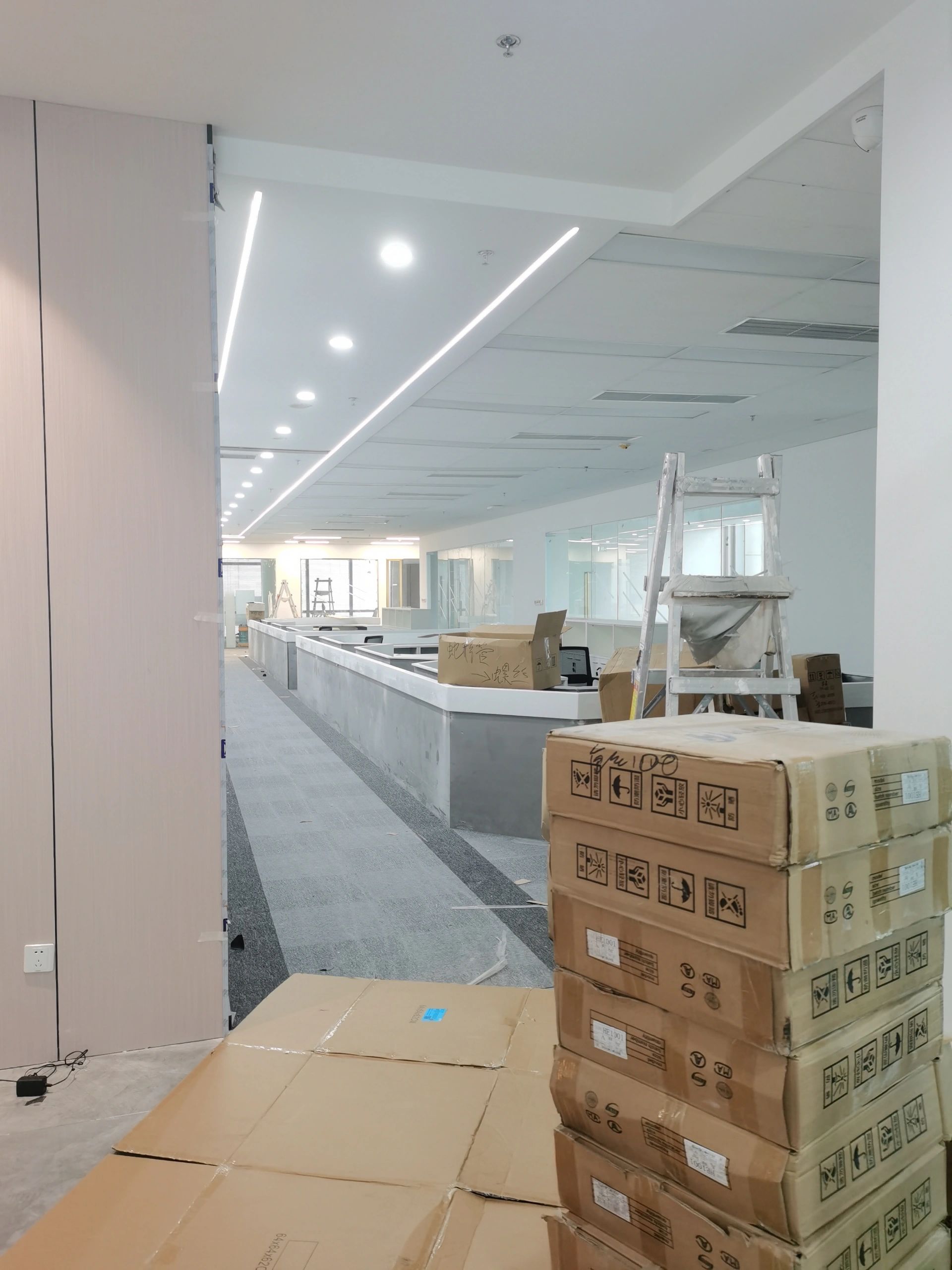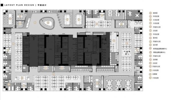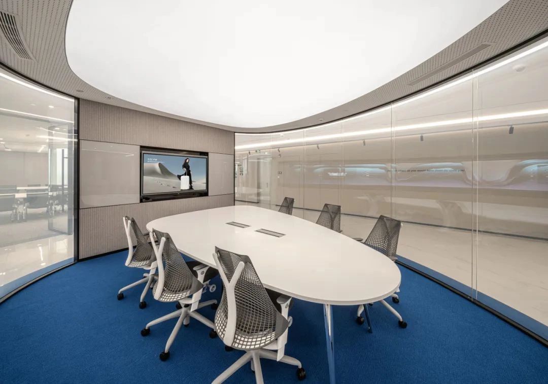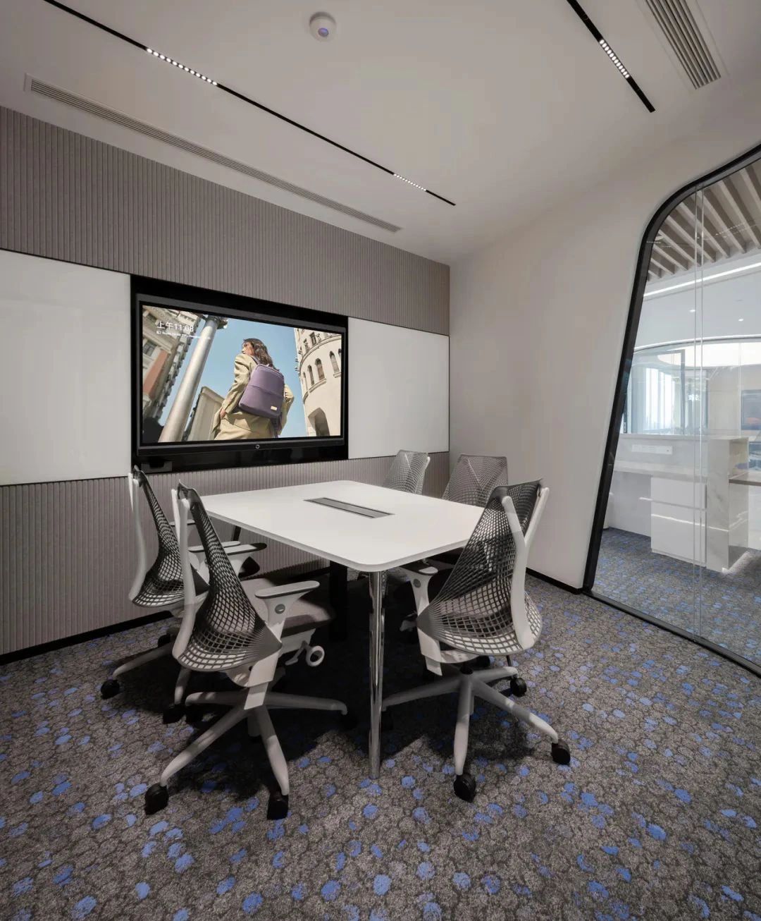 一楼前台 | 接待区以醒目的名称和灯光作为引导,人们依照自己的期待赋予专属的记忆空间,进入一个充满朝气的工作世界。开放式办公区域设计师将开放式办公区域、会议室,接待室办公元素打通集合一起,这样在整体办公的环境下,也有着高效独立的高层办公组合空间。在空间与空间之间不仅仅是利用设计媒介分割,而且利用具有空透、连通性的元素进行分隔,即空间的分割合理。