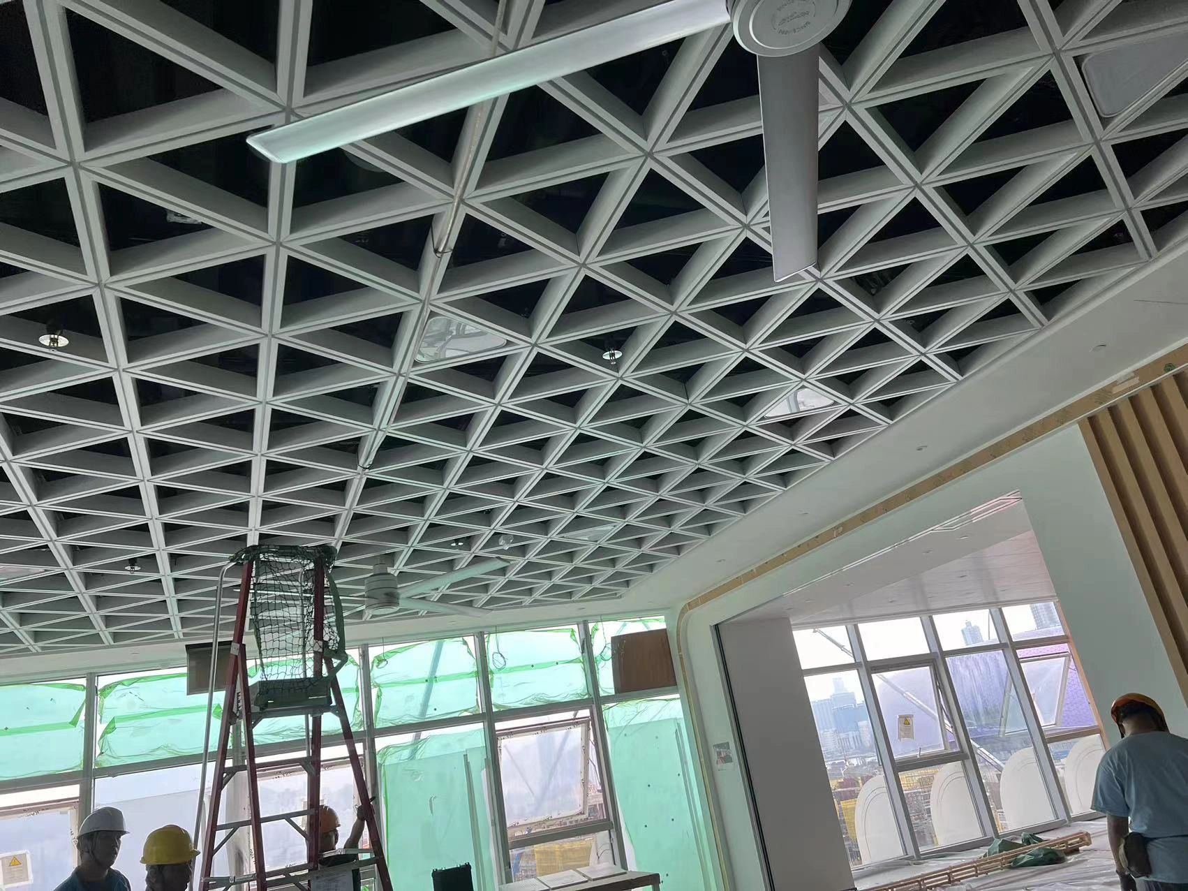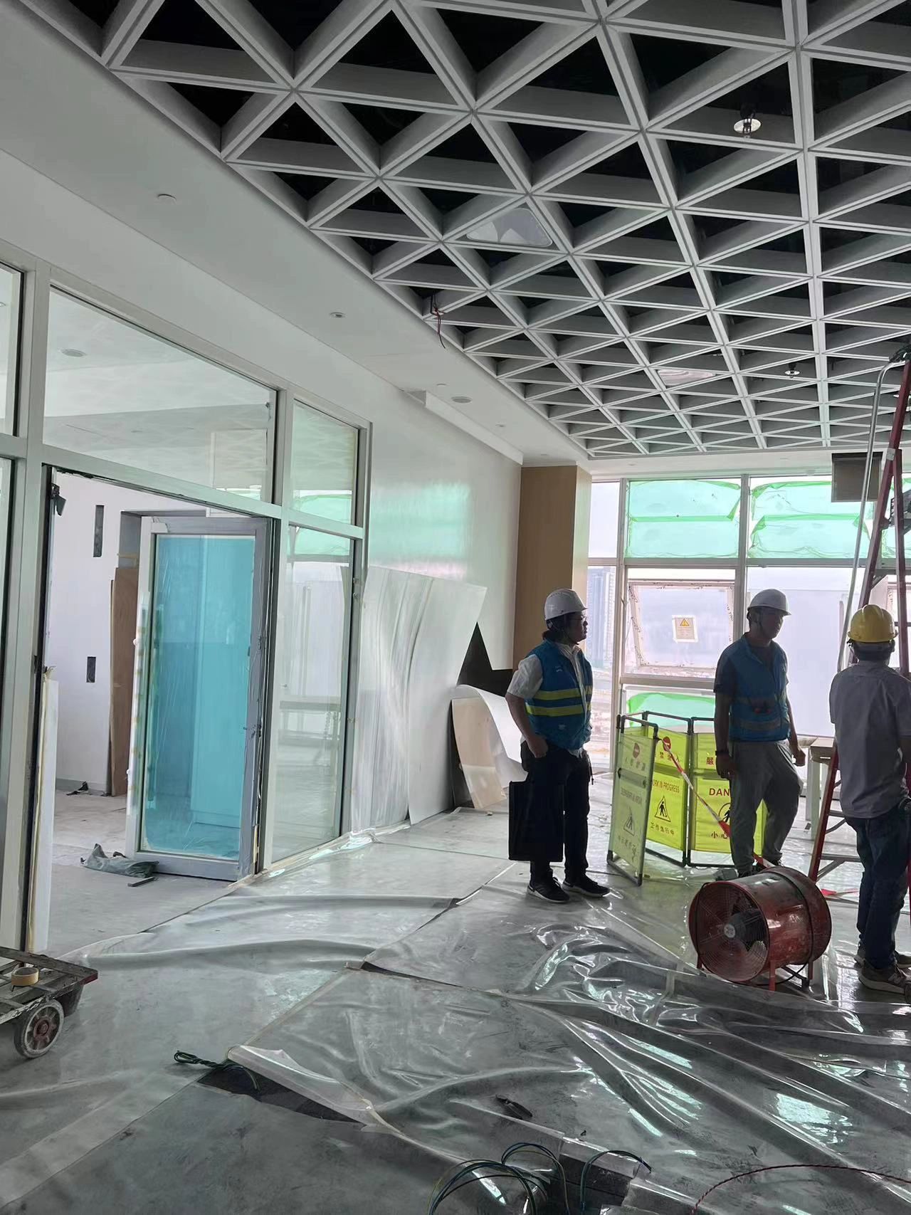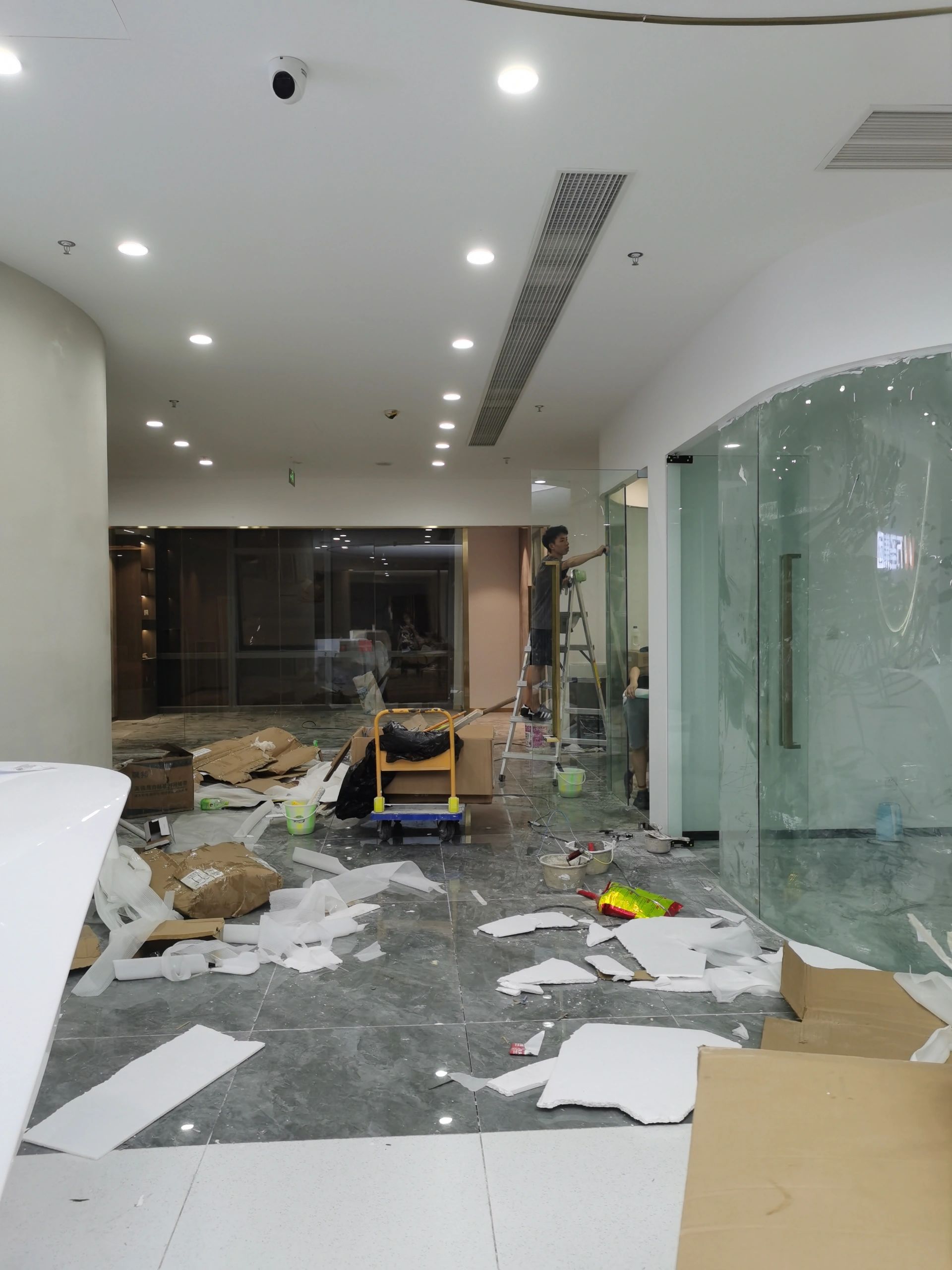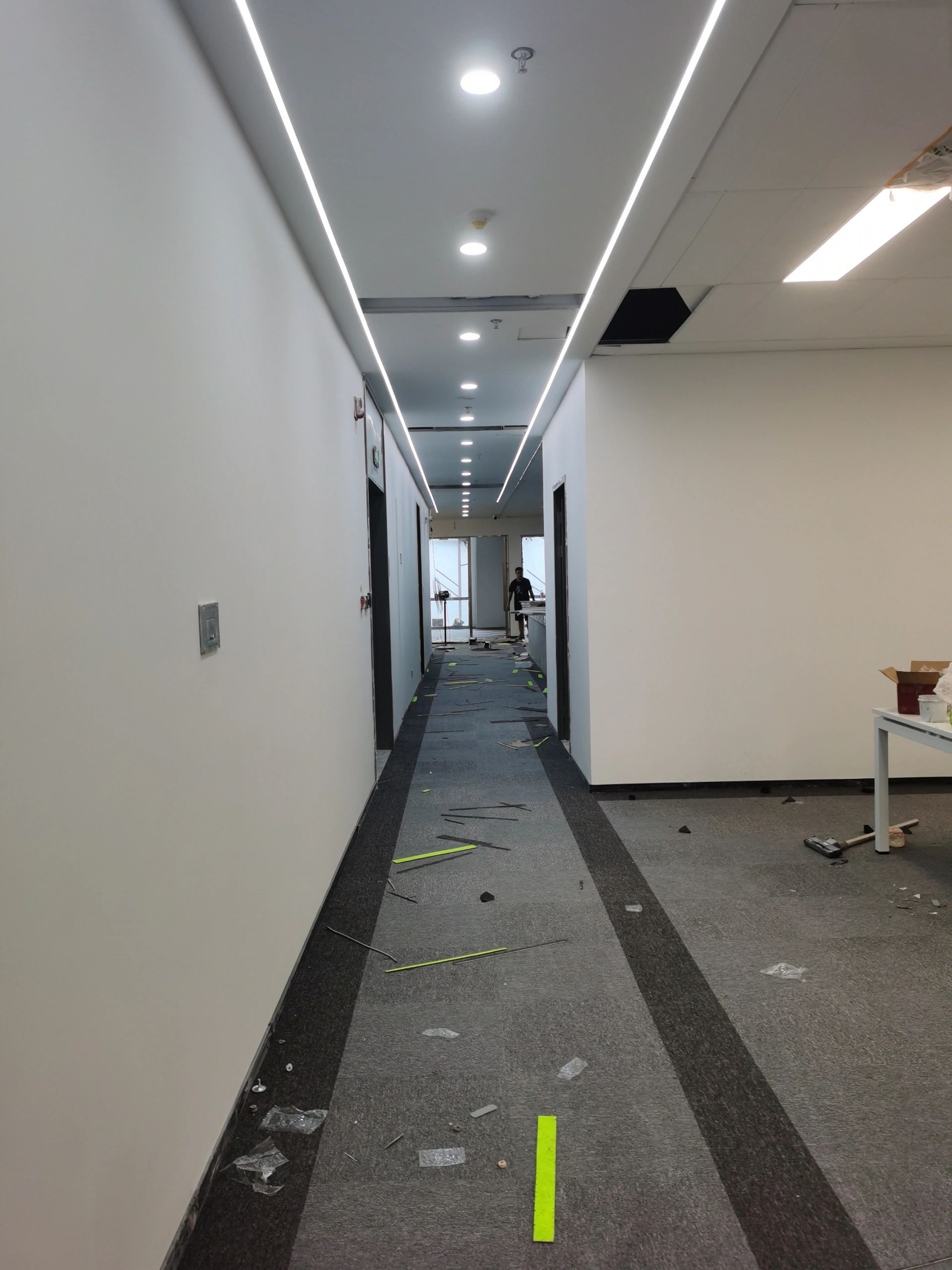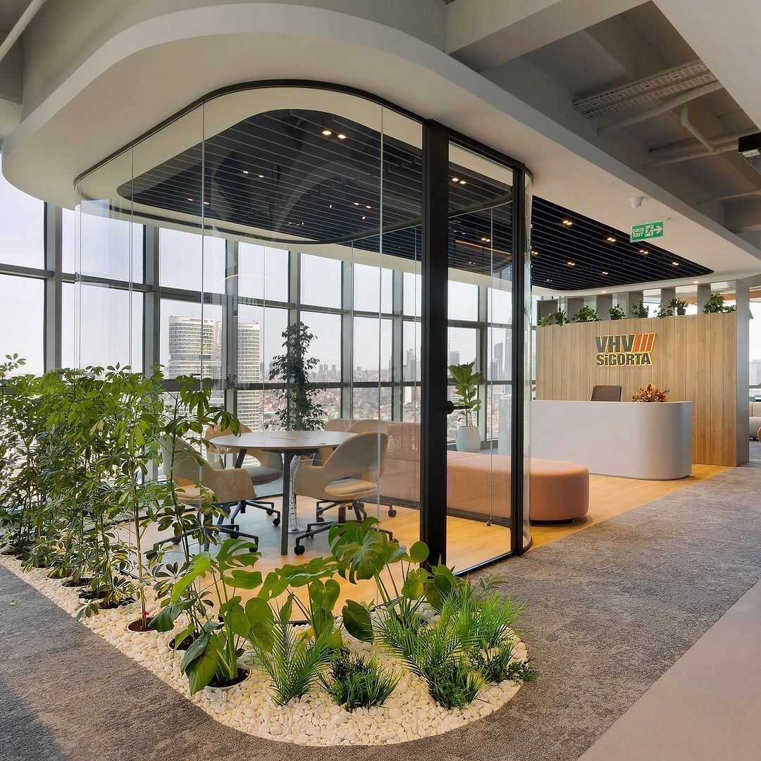 一楼前台 | 接待区以醒目的名称和灯光作为引导,人们依照自己的期待赋予专属的记忆空间,进入一个充满朝气的工作世界。开放式办公区域设计师将开放式办公区域、会议室,接待室办公元素打通集合一起,这样在整体办公的环境下,也有着高效独立的高层办公组合空间。在空间与空间之间不仅仅是利用设计媒介分割,而且利用具有空透、连通性的元素进行分隔,即空间的分割合理。