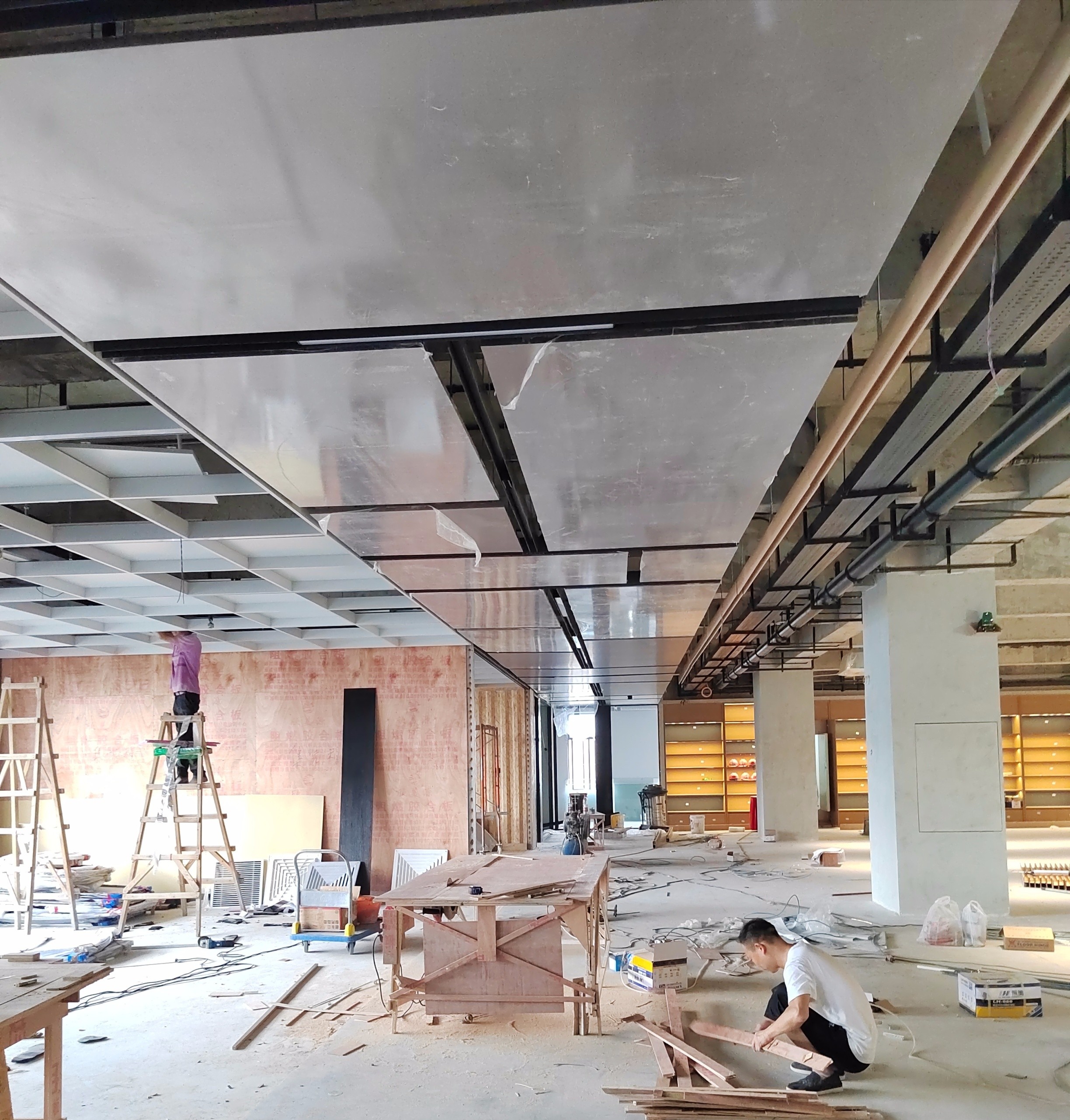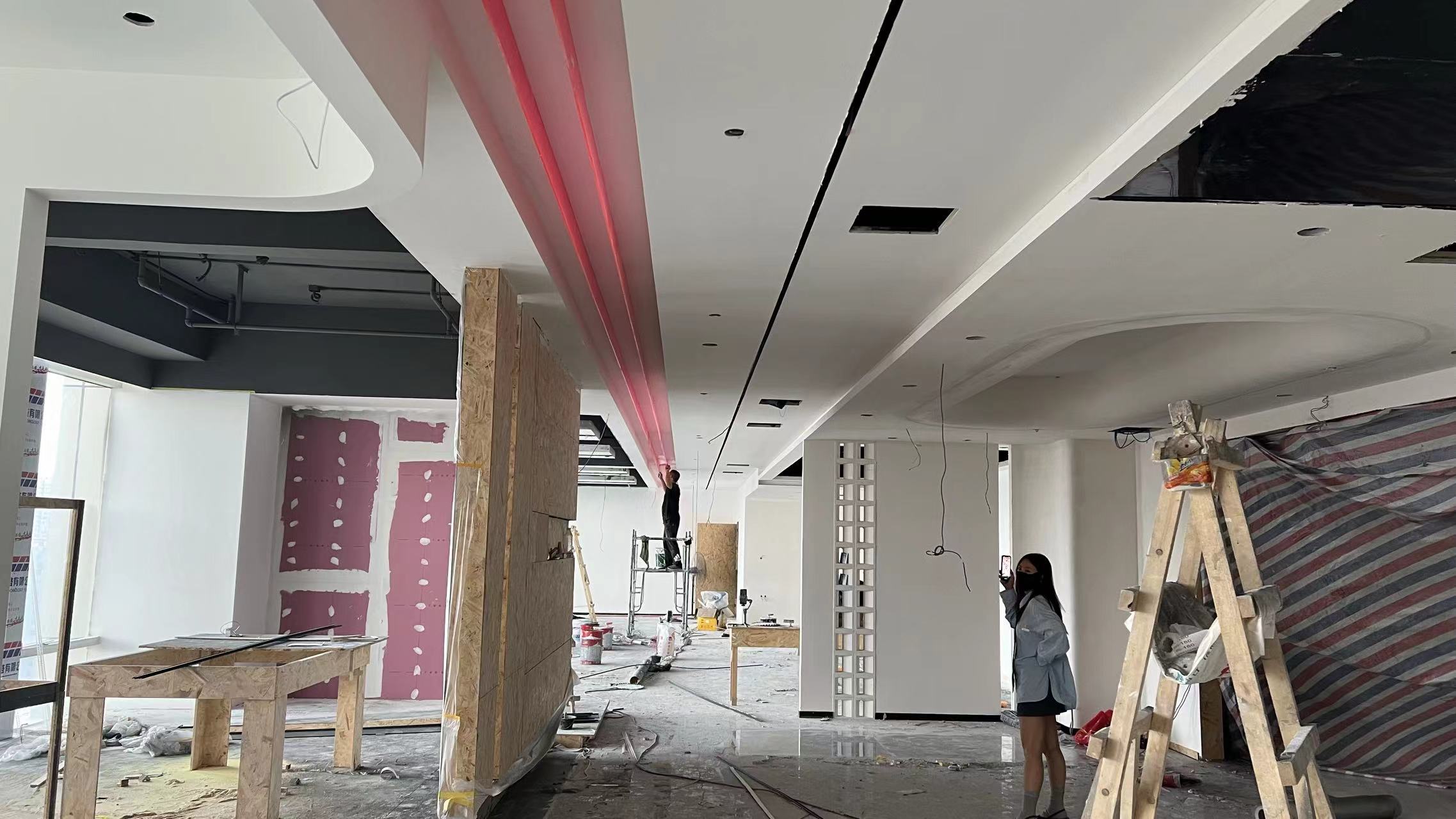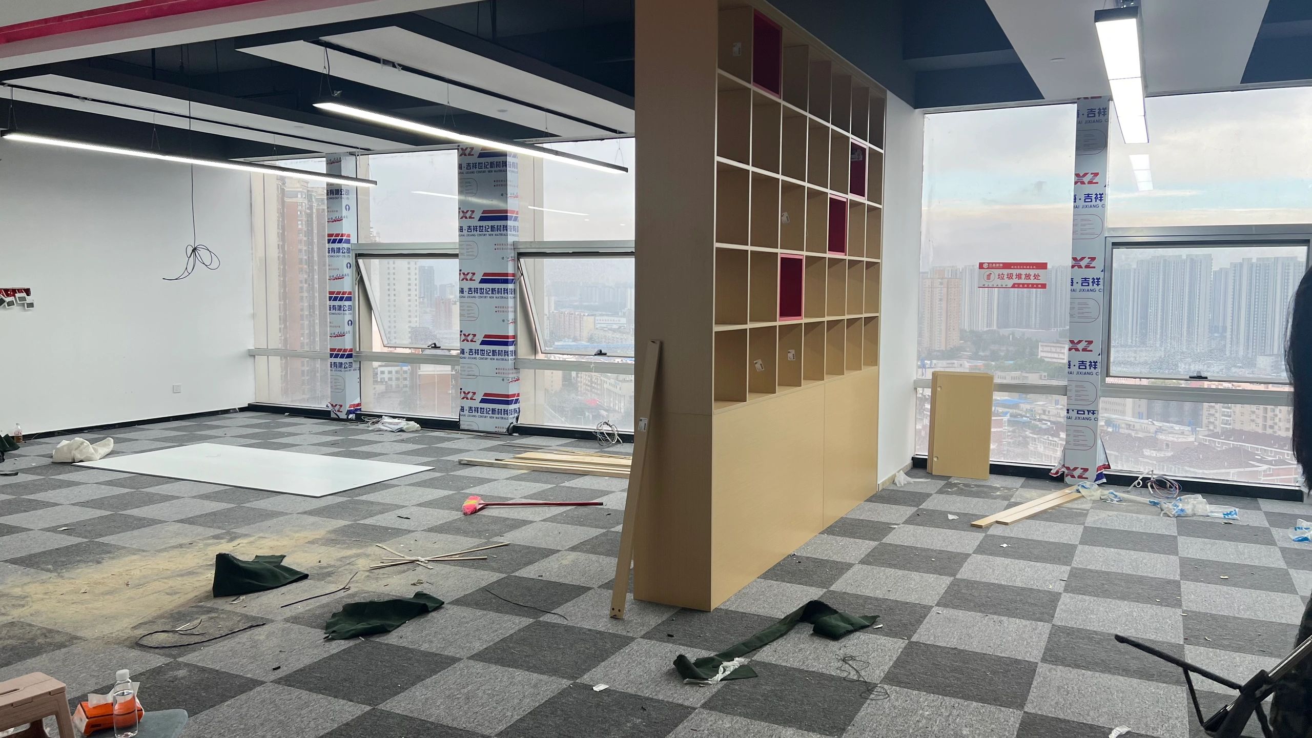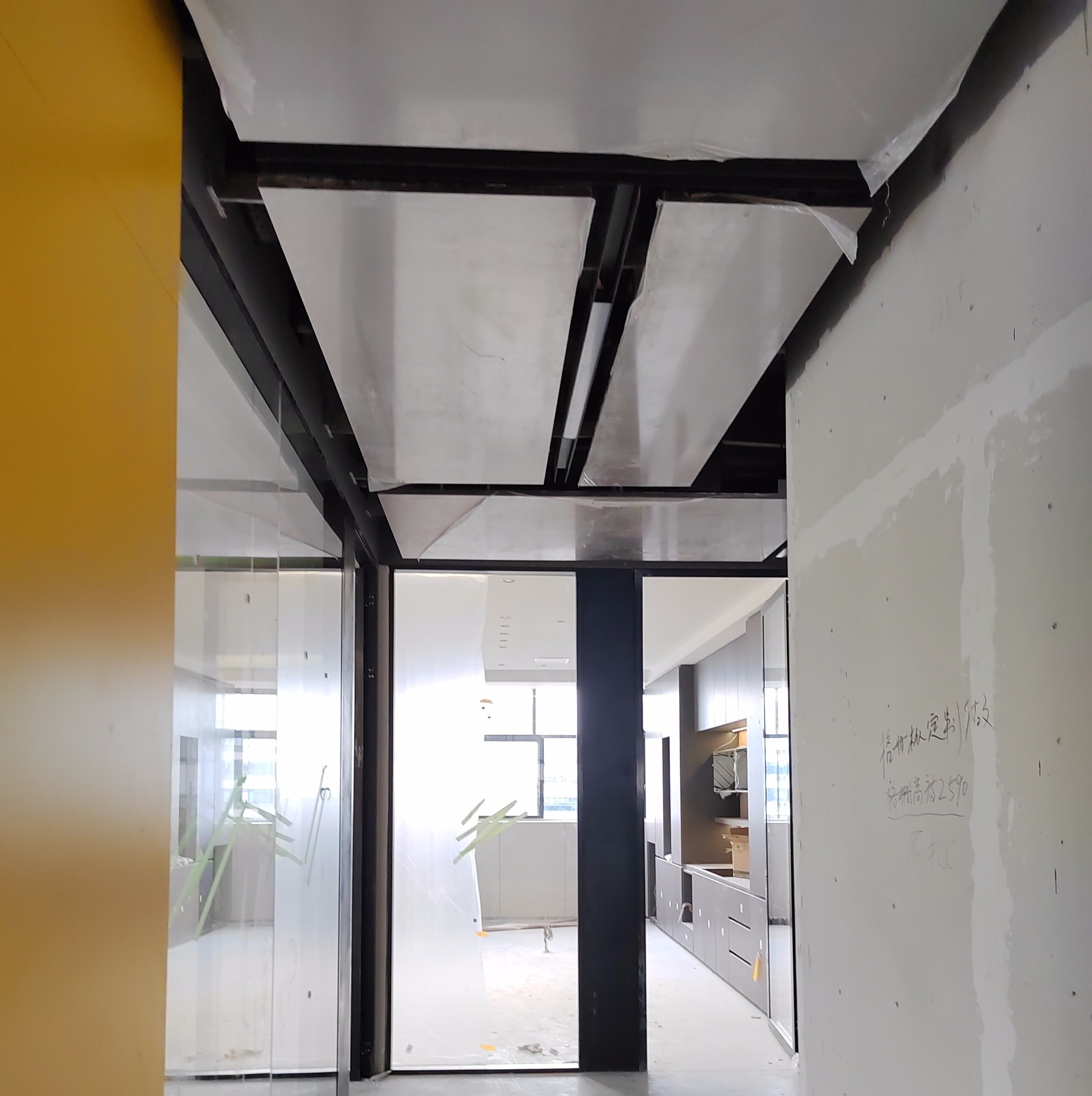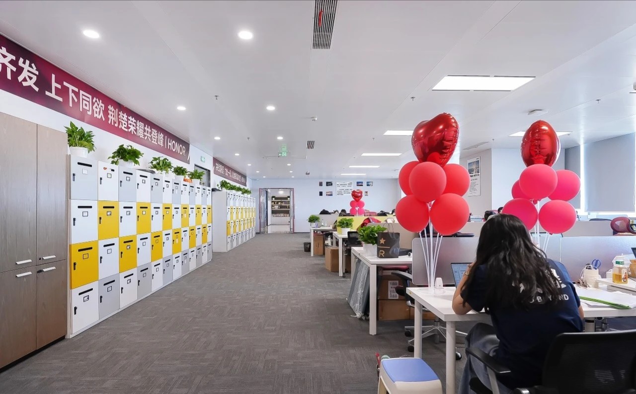 进入前厅,银灰色阳极氧化铝板打造的背景墙,流露出自然柔和的金属质感,通过设计手段将品牌文化可视化,创造出科技元素与自然融合的场景体验,延展空间的科技感与品牌的无限想象力。前厅的造景意蕴深厚,流光无声,浮沉错落,树影与灯光相对应,勾勒出雅致的诗意之美。立面删繁就简而成的轻盈感,让光影的明暗、重叠都有序可循。茶水休闲区,以最大的容纳度阅览万象,原木风包裹的返璞归真之境,传统审美法则,在潮流生活中被再造,渲染,办公群体在此转换成社交共享者。