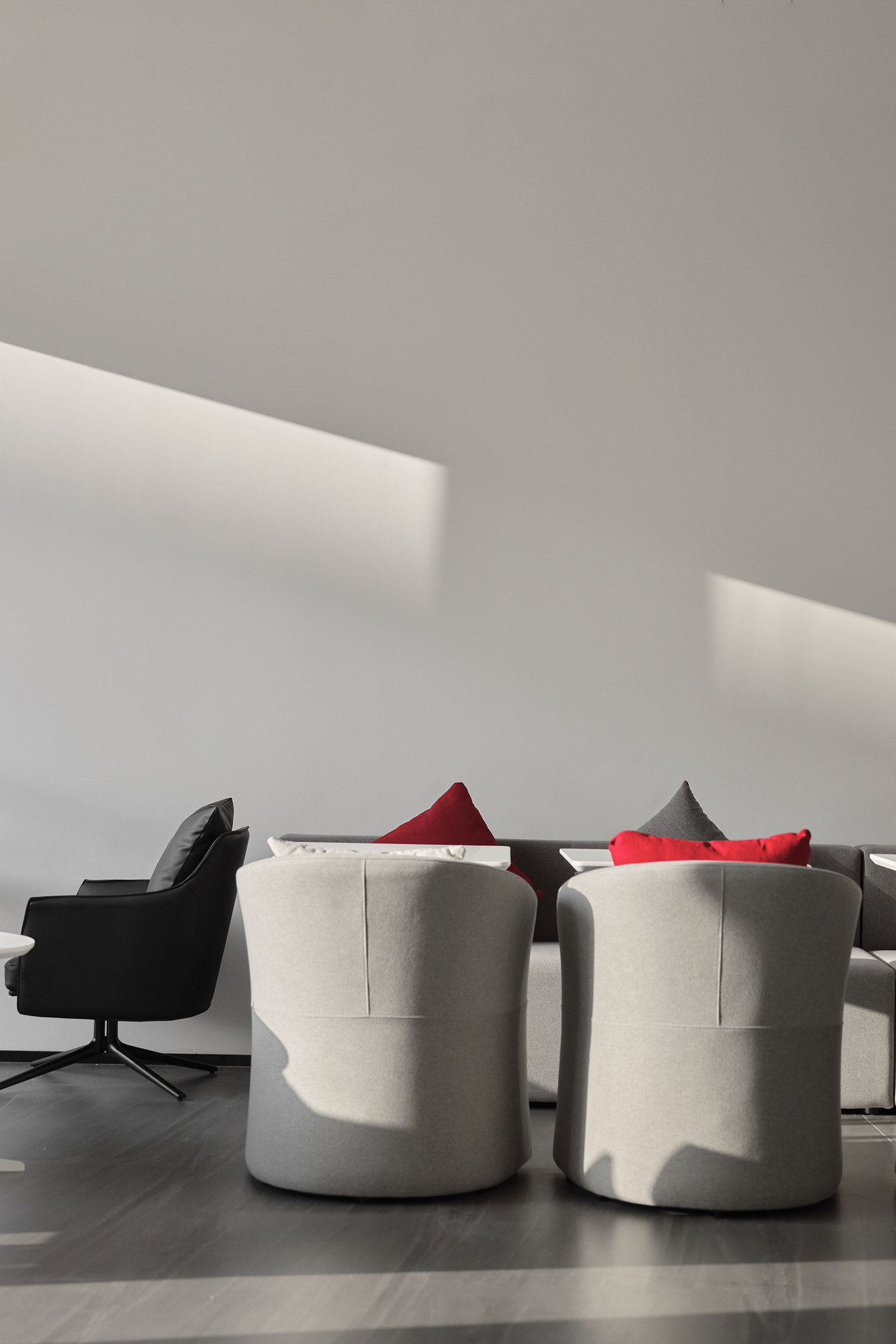 白描任写意,天然去雕饰,灰白色调撑开素练干净的画布,尽显公共办公区的开阔与轩敞,浅色的克制与沉稳,烘托虚怀若谷的包容气场。越内敛,越深邃,总经理办公室司空见惯的庄重感,在超越空间本身的限制后,变得意趣非凡,耐人寻味。
