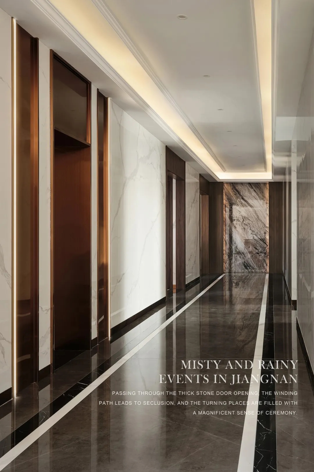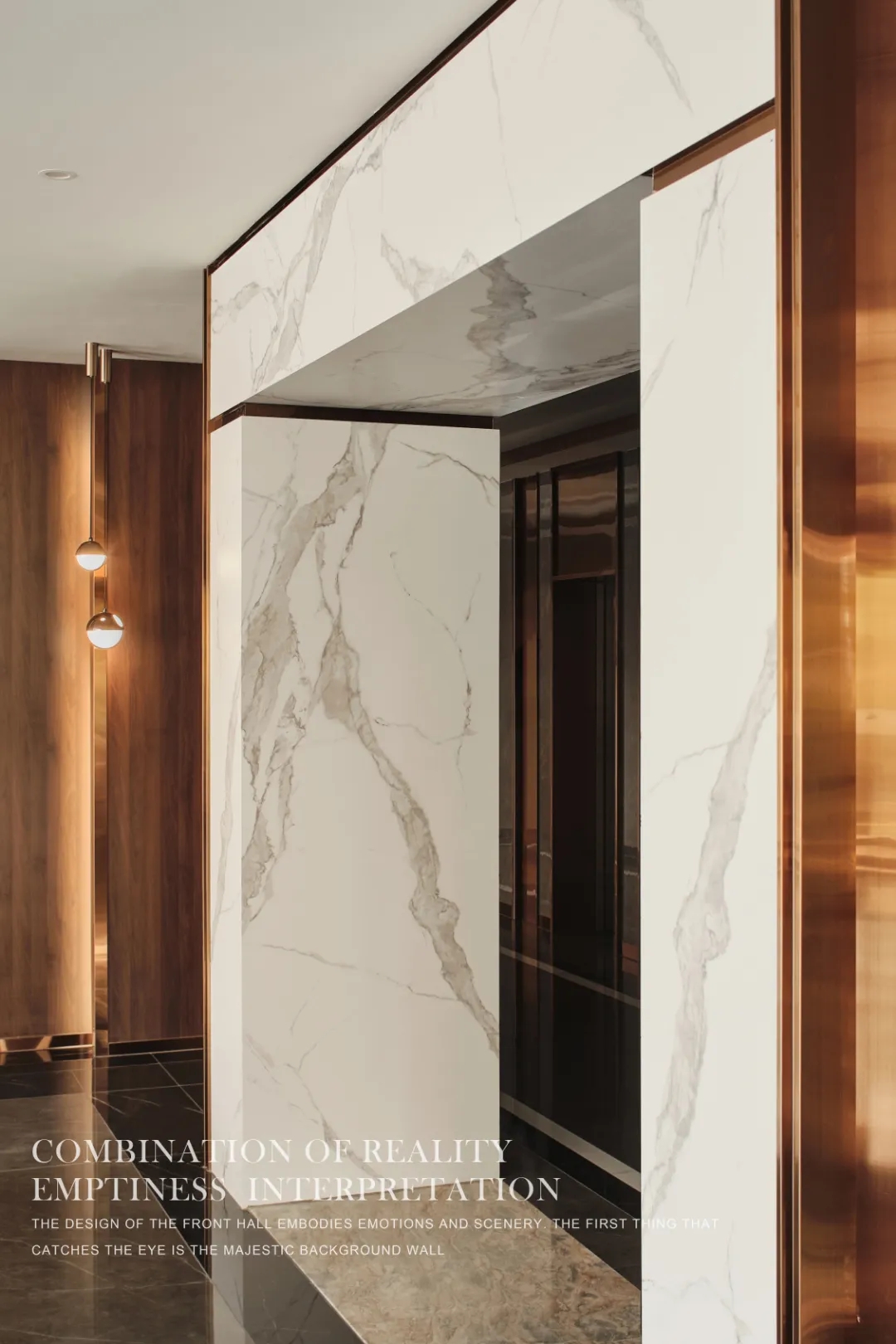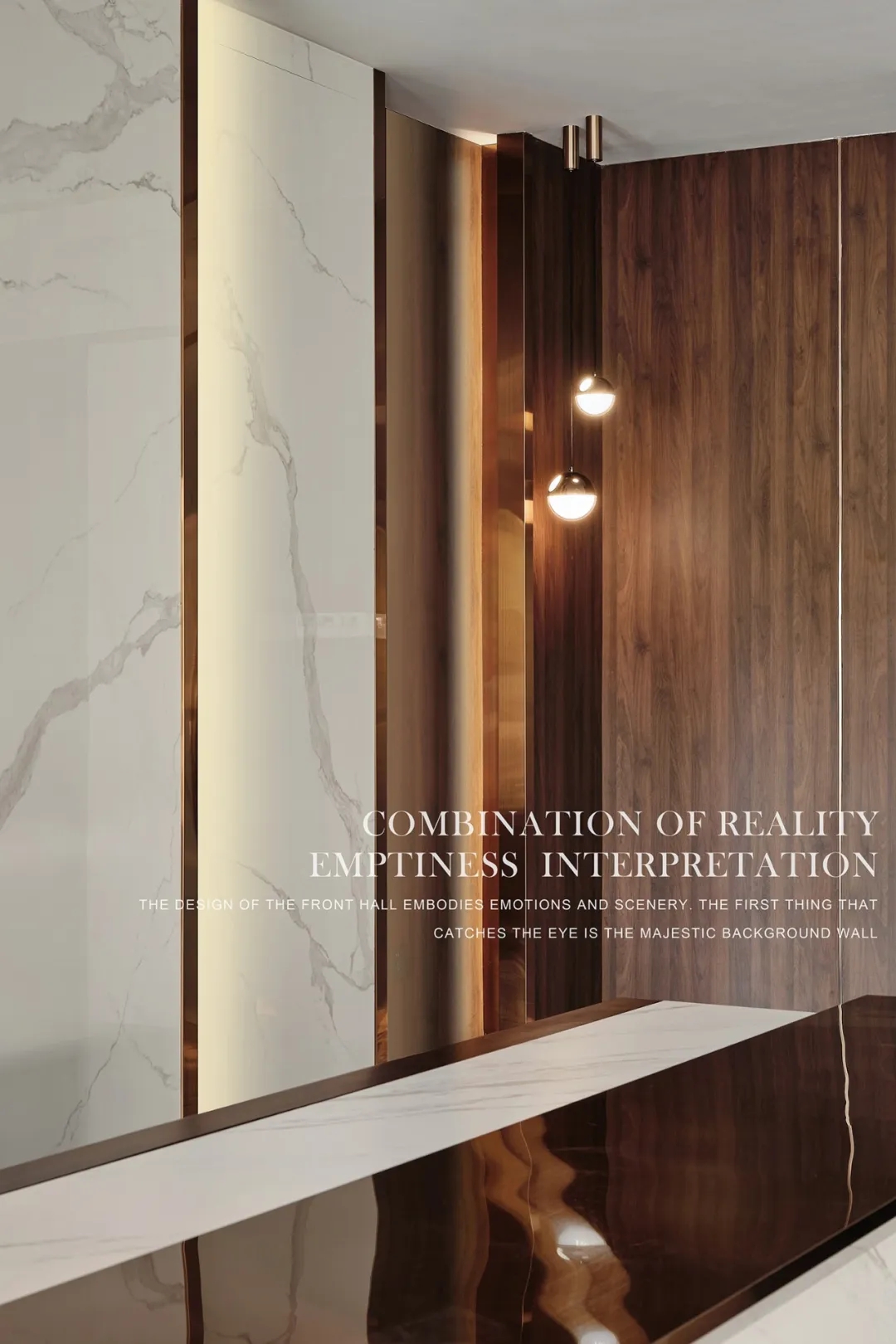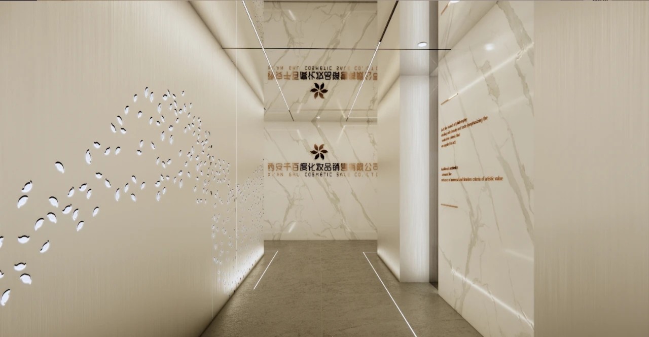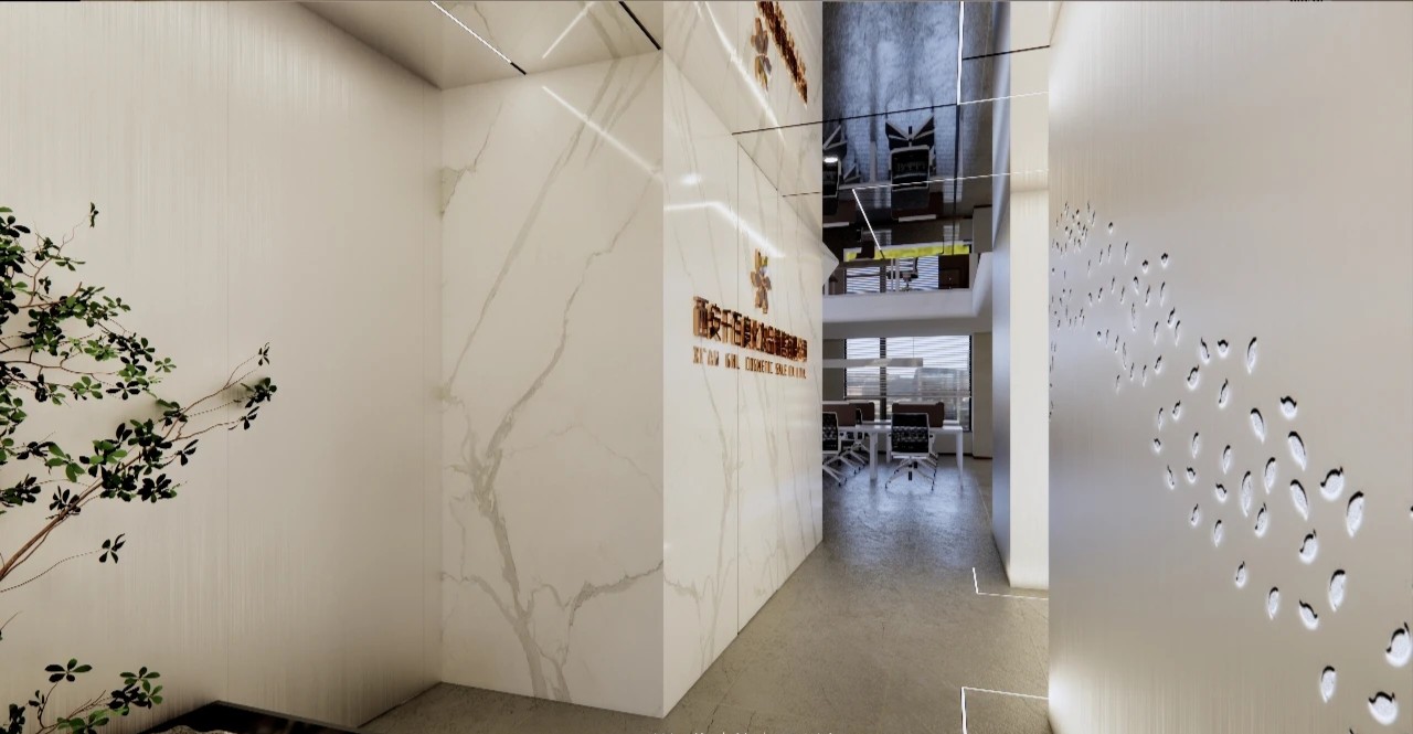 旨在对办公空间进行全新的、前卫的且具有现代艺术性的新探索。设计师打破原有的理性模式,在门厅区域采用金属冲孔板,镜面不锈钢,岩板等材料展示全新空间。