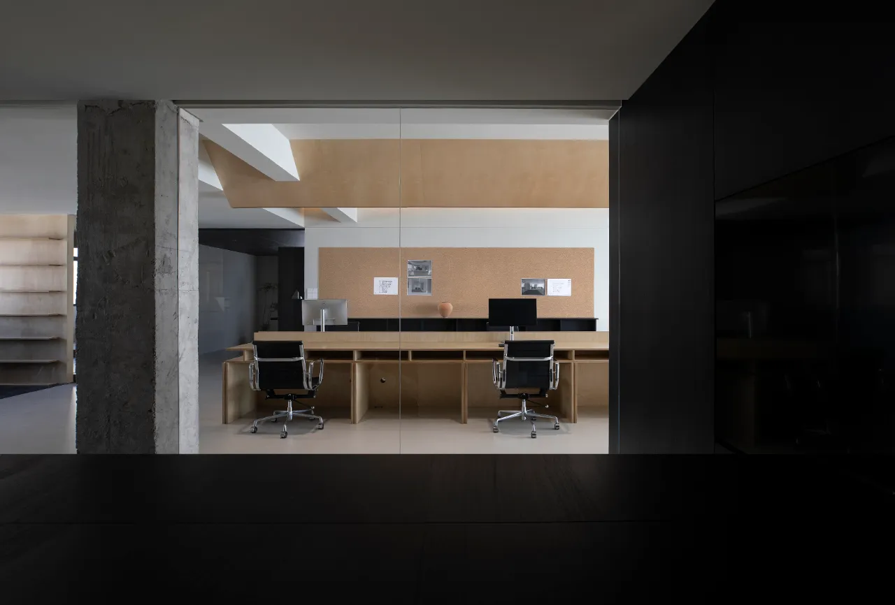 本案是我们设计团队的新工作室。整体方案主要以极简主义为设计基石,以空间互动为设计重点,在满足设计师创作表达的前提下,使不同空间紧密联合,形成和谐的序列关系。整个空间不仅做到通透,还提高了人与人之间的互动和交流。