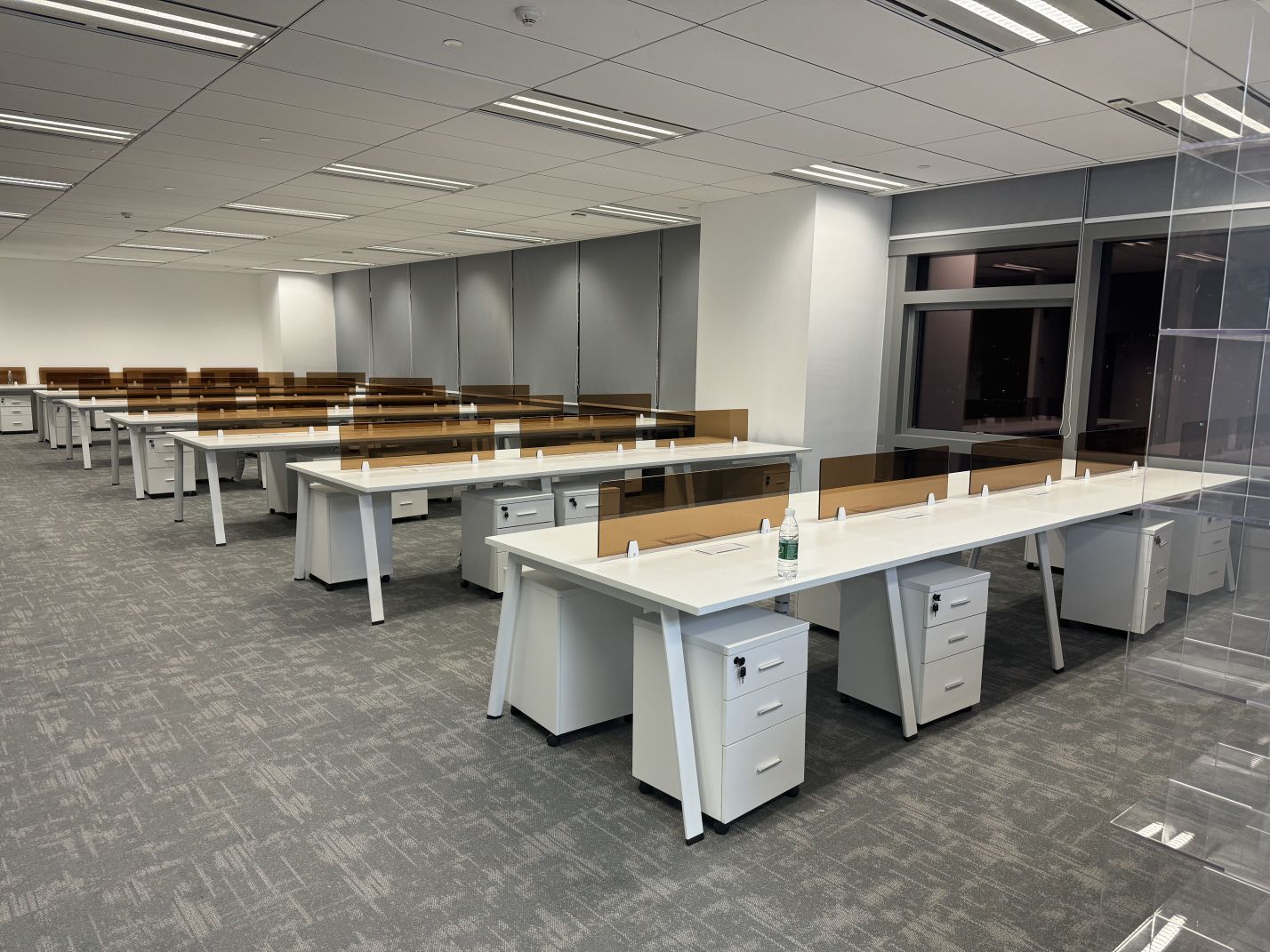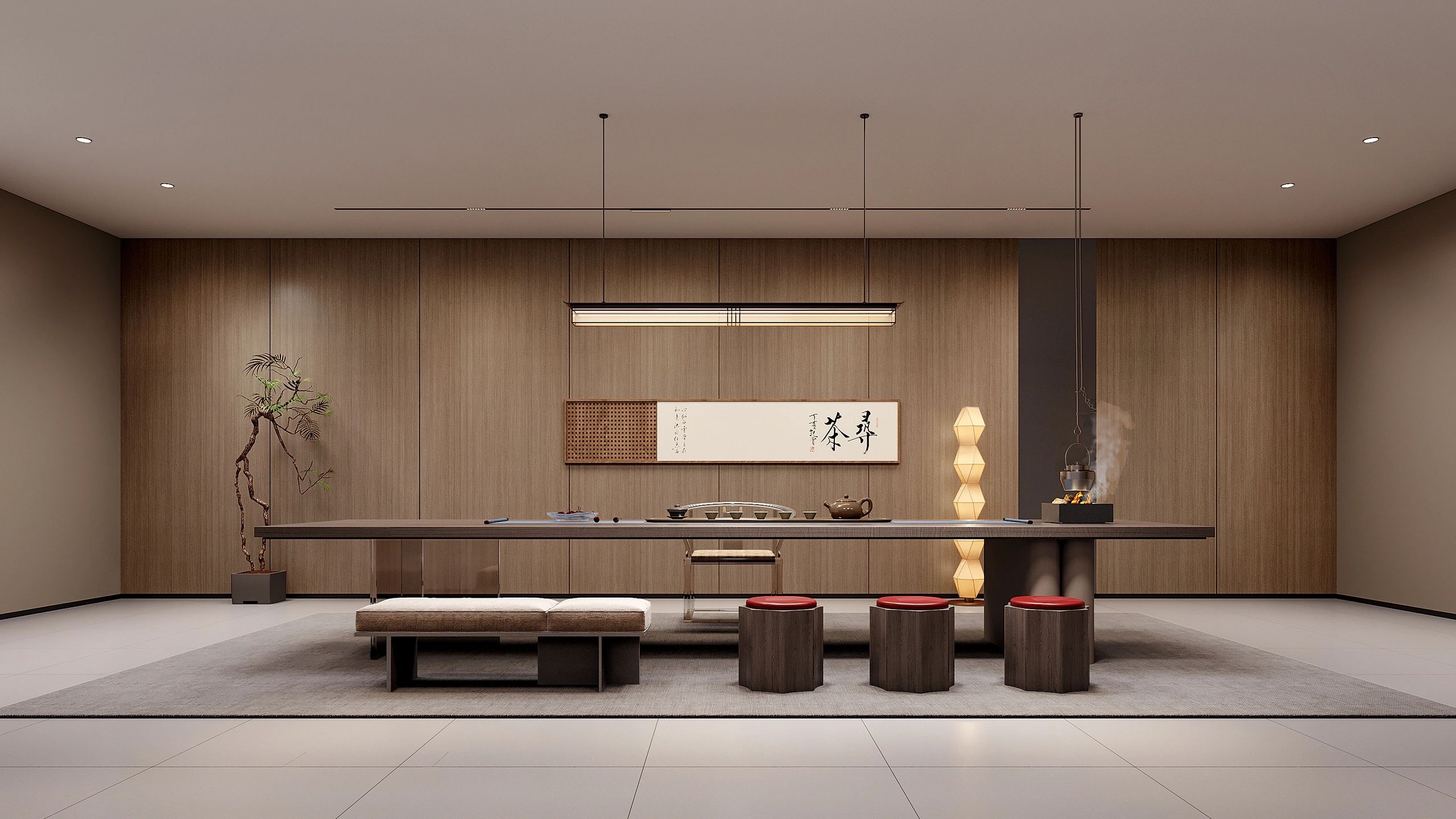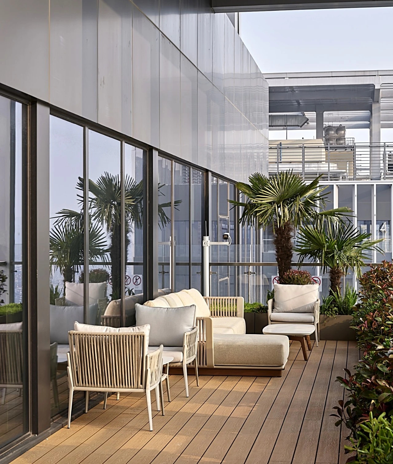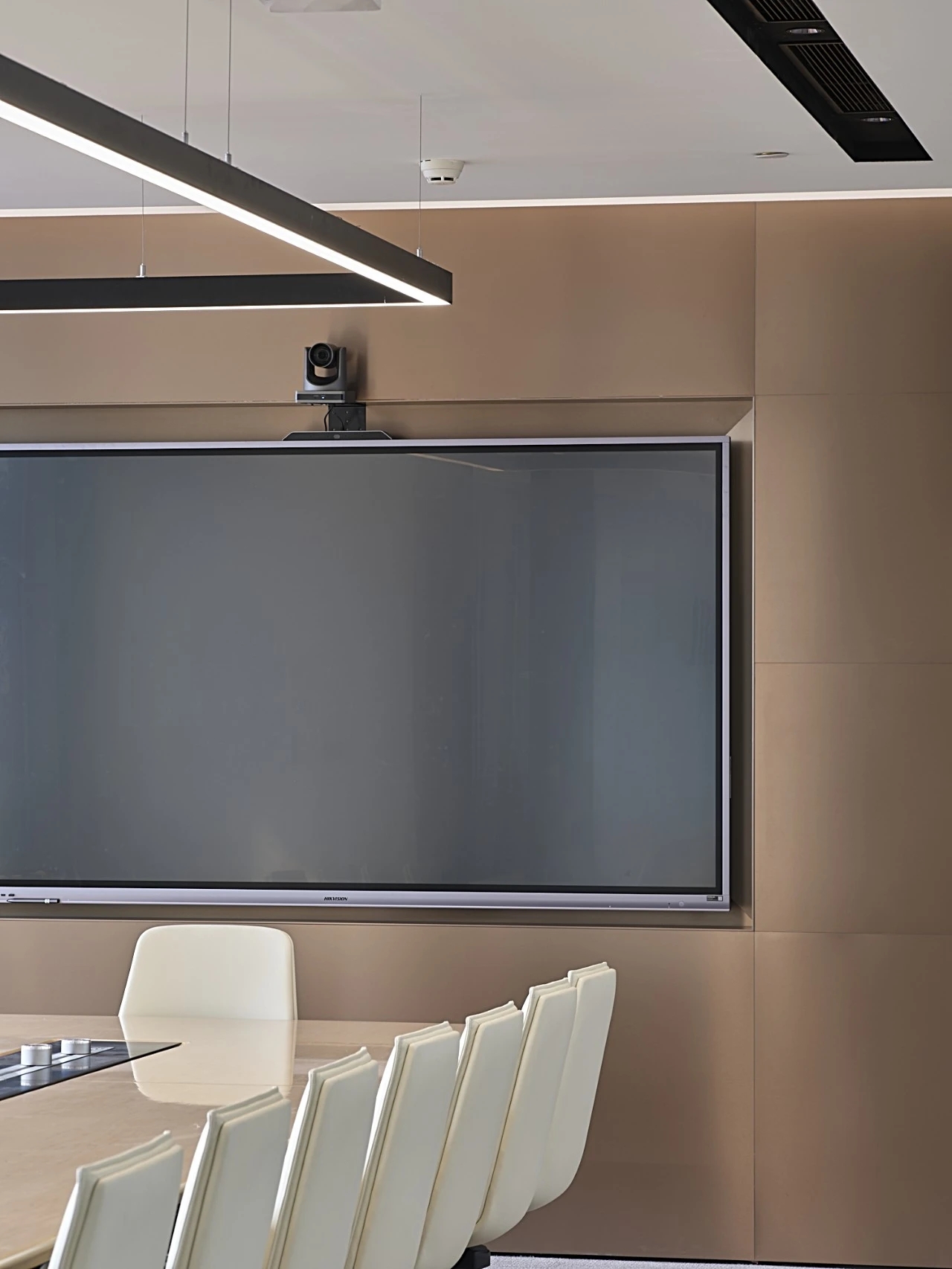 董事会议室通过三个超宽的玻璃转门与前厅贯通,视觉上不仅给前厅一种延伸的效果;而且在空间的使用上提供了更多灵活性-既可以单独作为会议室,也可以与前厅和户外花园合并作为举办大型宴会的场所。