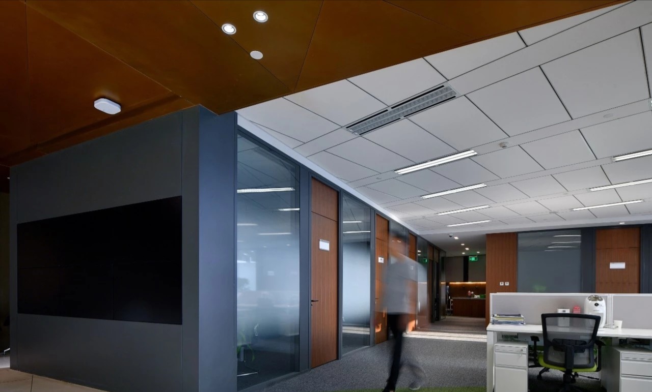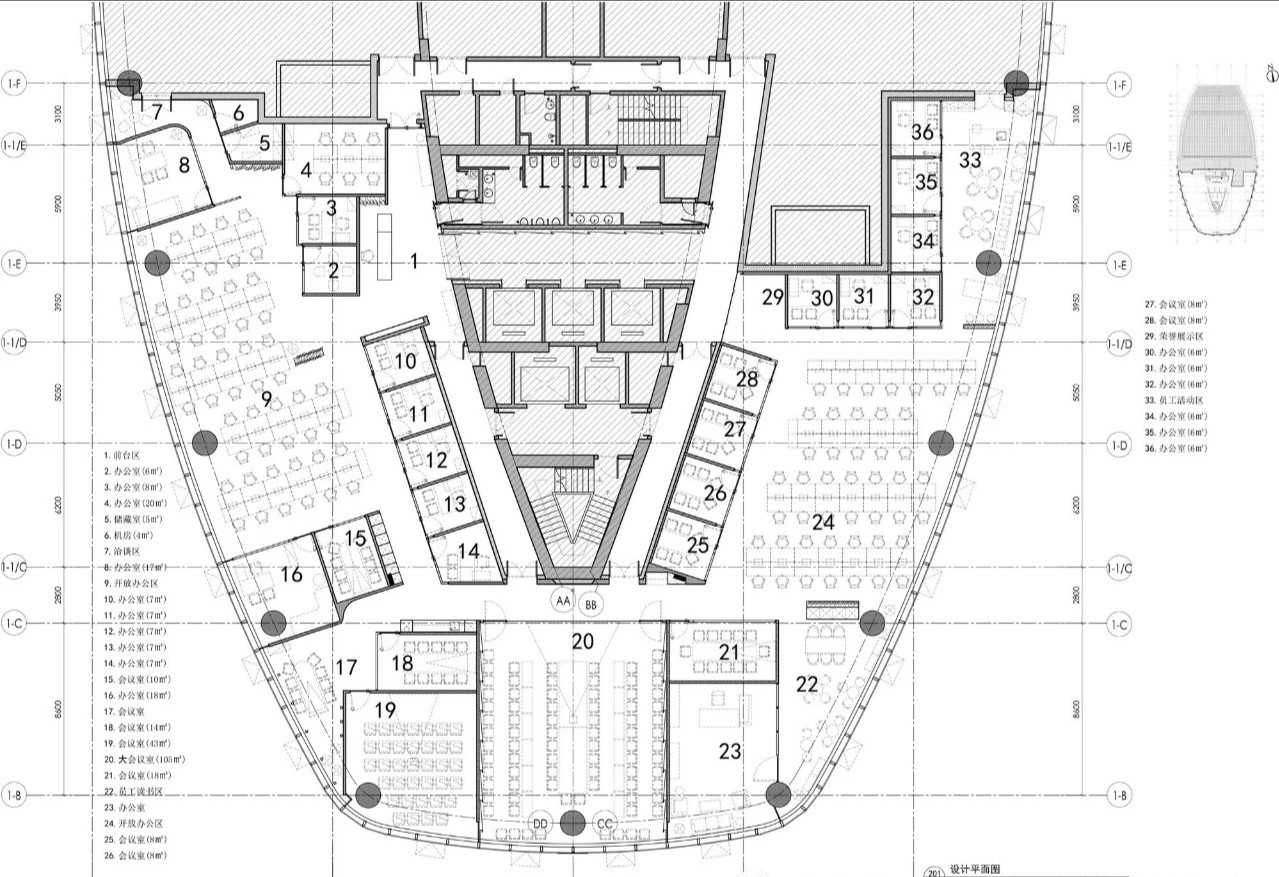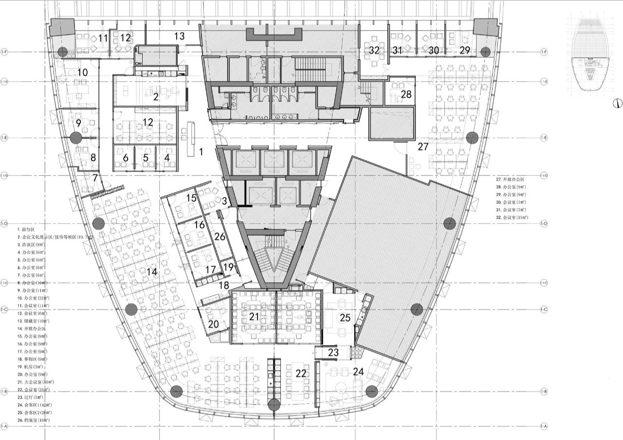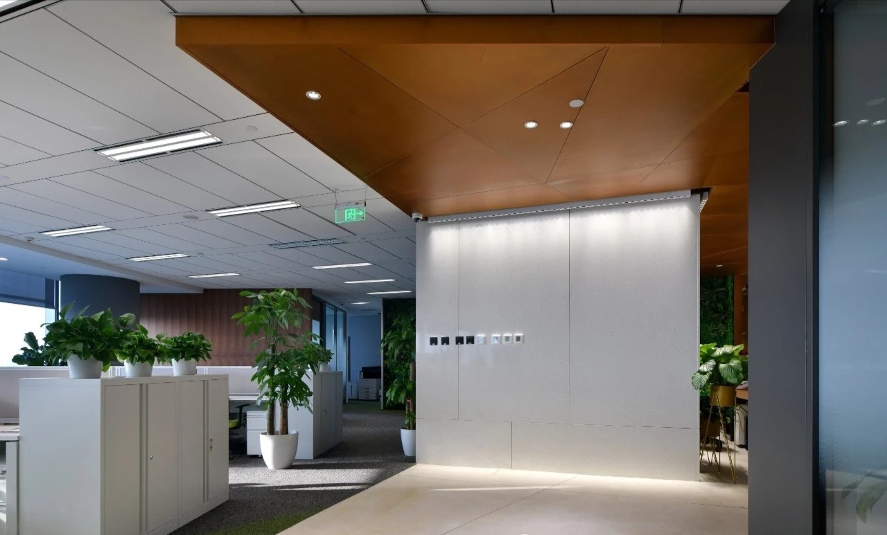充分考虑了建筑作为现代化办公场所的功能需求,通过运用大块胡桃木饰面的拼接,硬朗厚重的金磨石地坪,辅以极具空间层次感的立体绿植,营造出了高效、干练、大气、硬派的简约商务风格。在整体布局上,本案例的人性化区块空间划分充分强调了空间功能性与艺术性的结合,同时也最大限度地体现了企业的核心价值、人文内涵与商业追求。