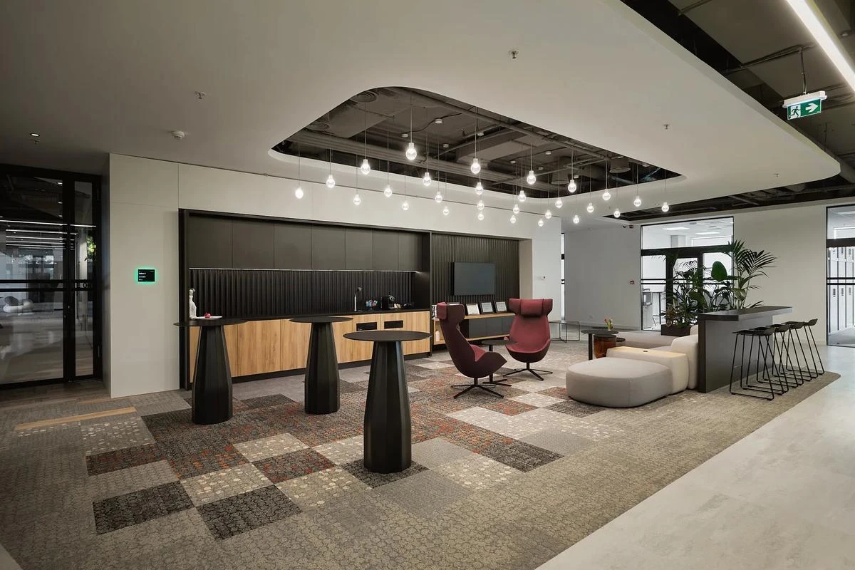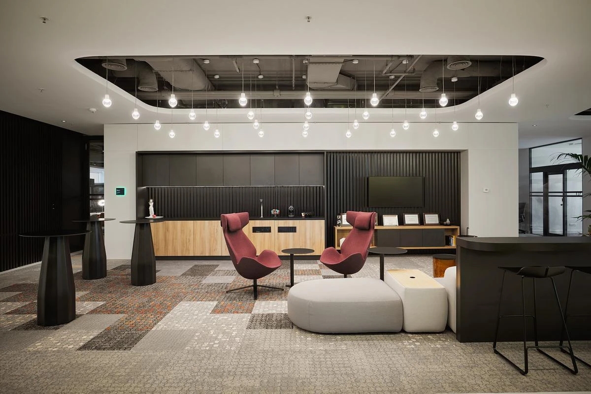 在休息区和接待区,我们着重凸显公司的热忱与周到,运用互补色彩搭配和材质选择,营造出既温馨舒适又不失专业性的空间氛围。