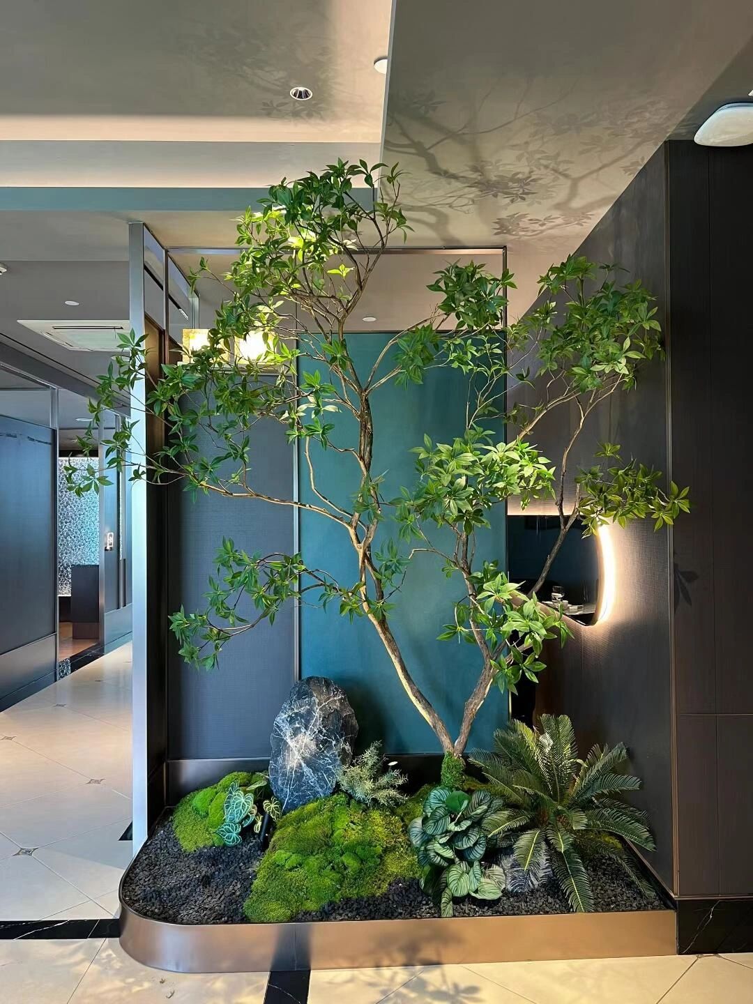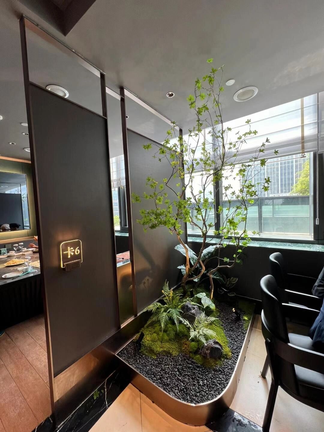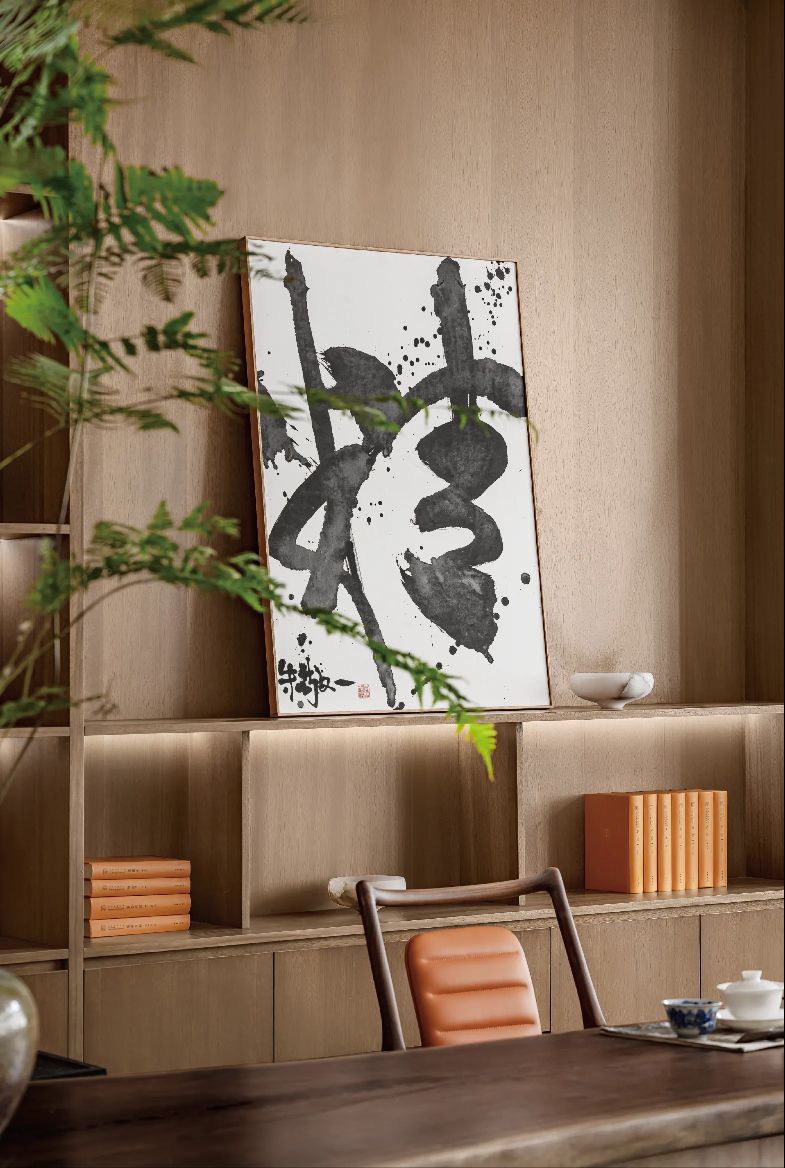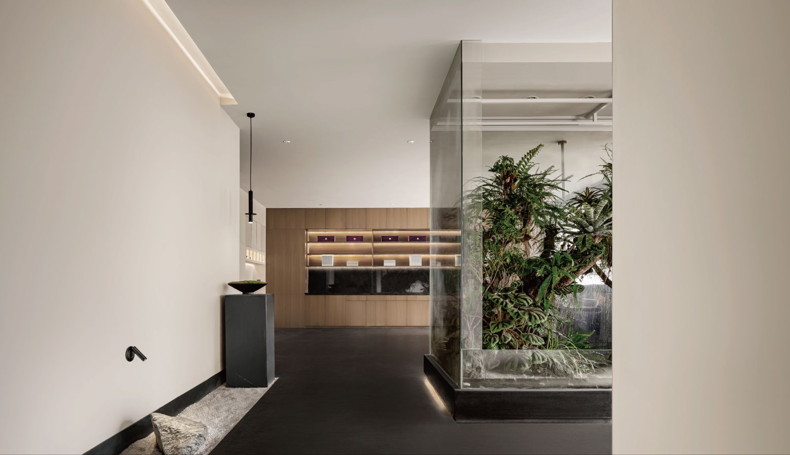 柔和的灯光下,茶具摆放得井井有条,散发出淡淡的光泽,时间仿佛变得缓慢而充实,让人忘却了外界的喧嚣与浮躁。整个空间的软装以侘寂风为主,颜色低调雅致,材质采用天然的石材、木头,结合棉麻布艺及大自然的花草果实、有故事的中古家具及饰品进行装饰。在这里可以品茶、斗茶,尽情体验优雅闲适的艺术享受。