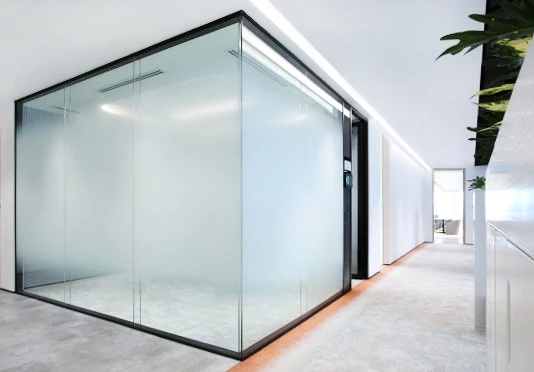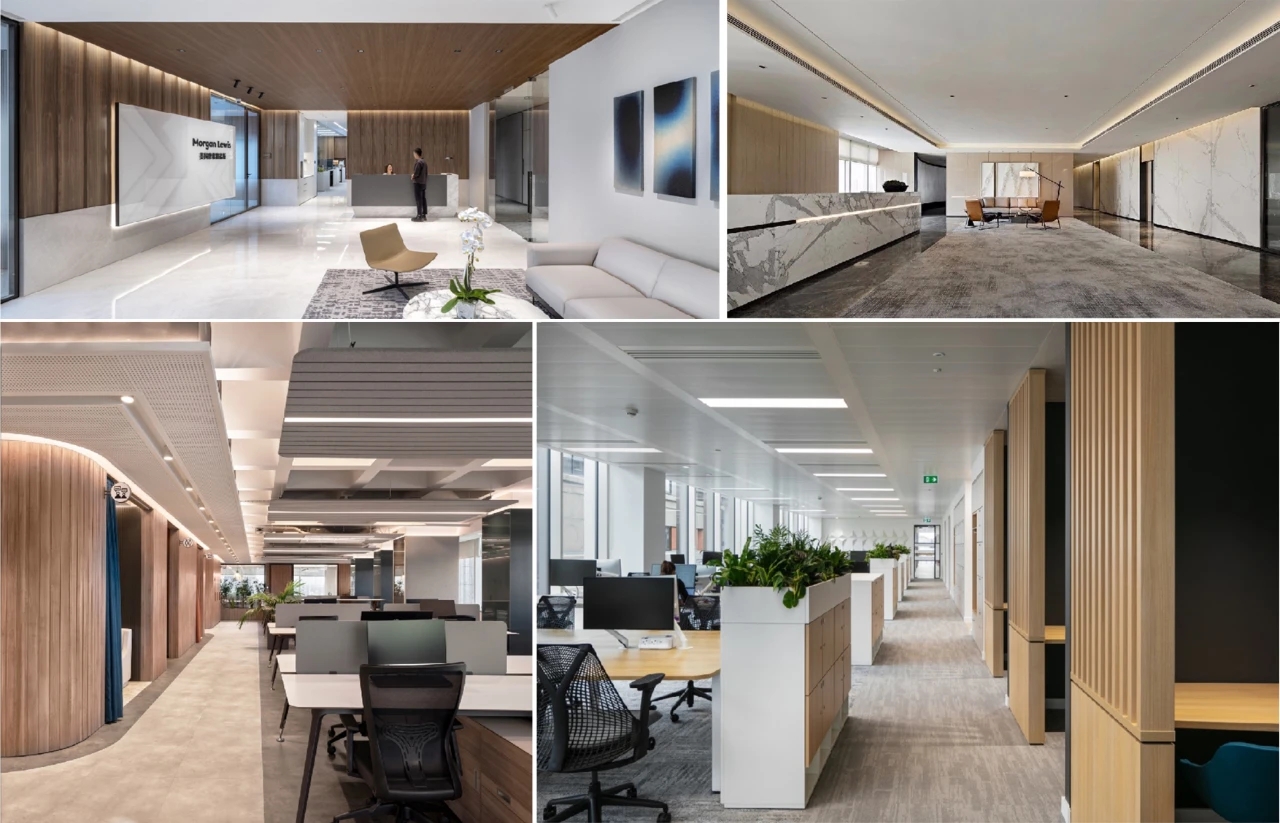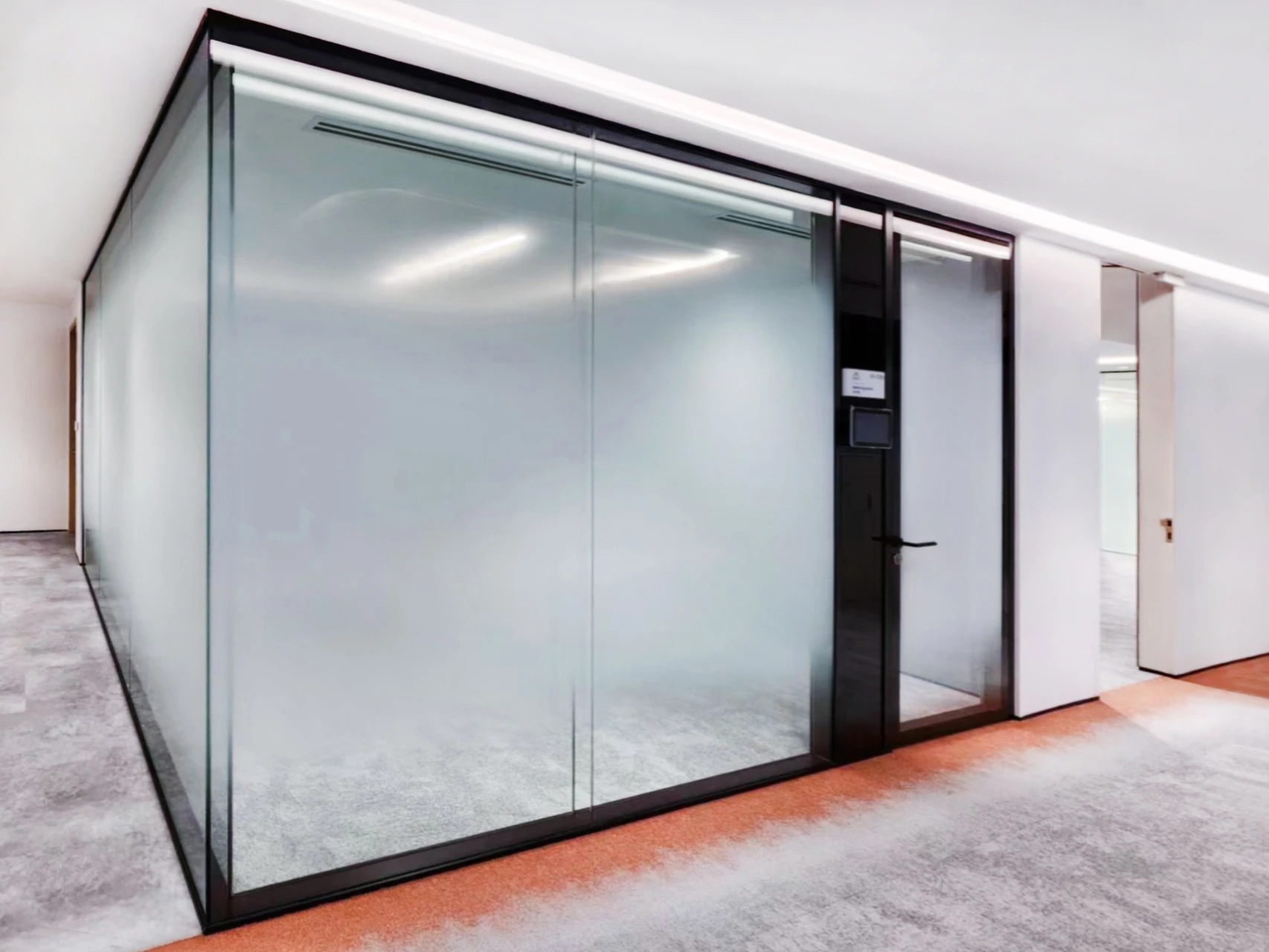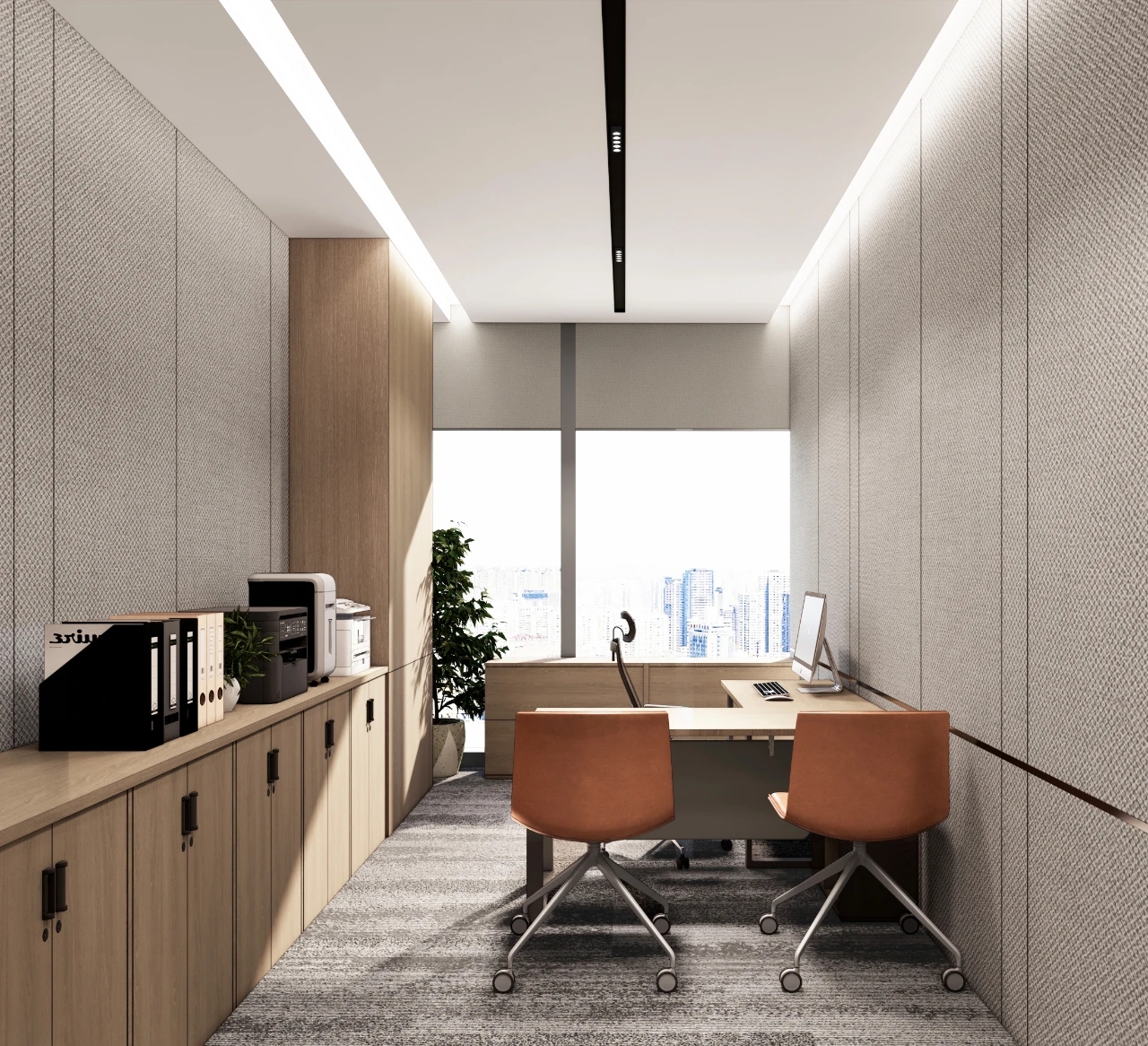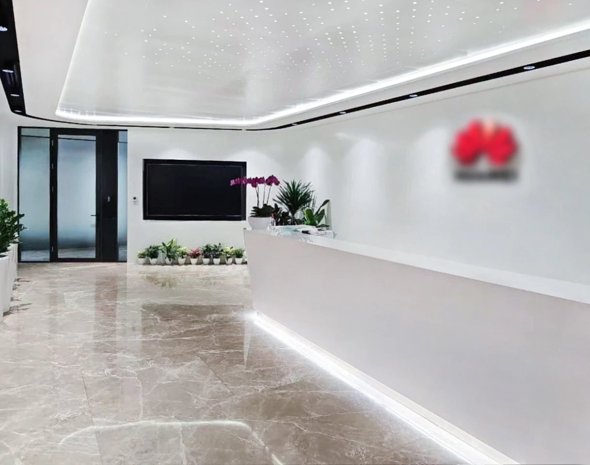 在入口处两侧功能区采用了超大半径的弯弧玻璃,把原本有限的视角无限延伸至室内,框架底边独特的坡度设计,为庄严的办公空间注入了柔和的元素。直角拼接的全景玻璃,对于安装工艺的要求非常严苛,用巧夺天工形容并不夸张。