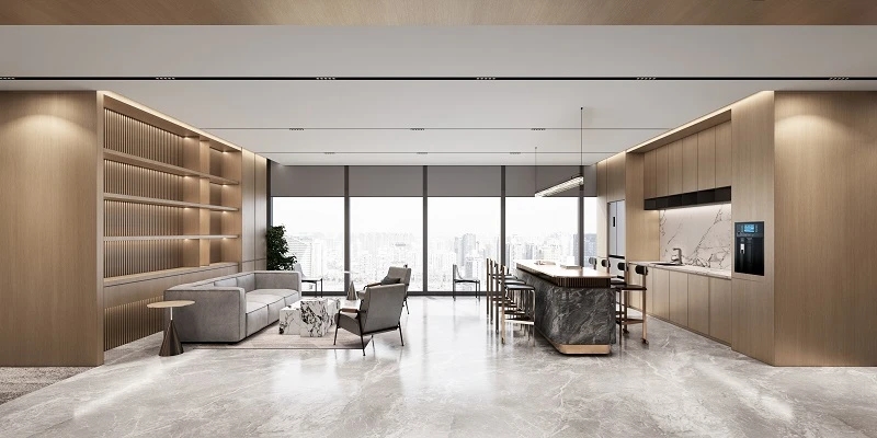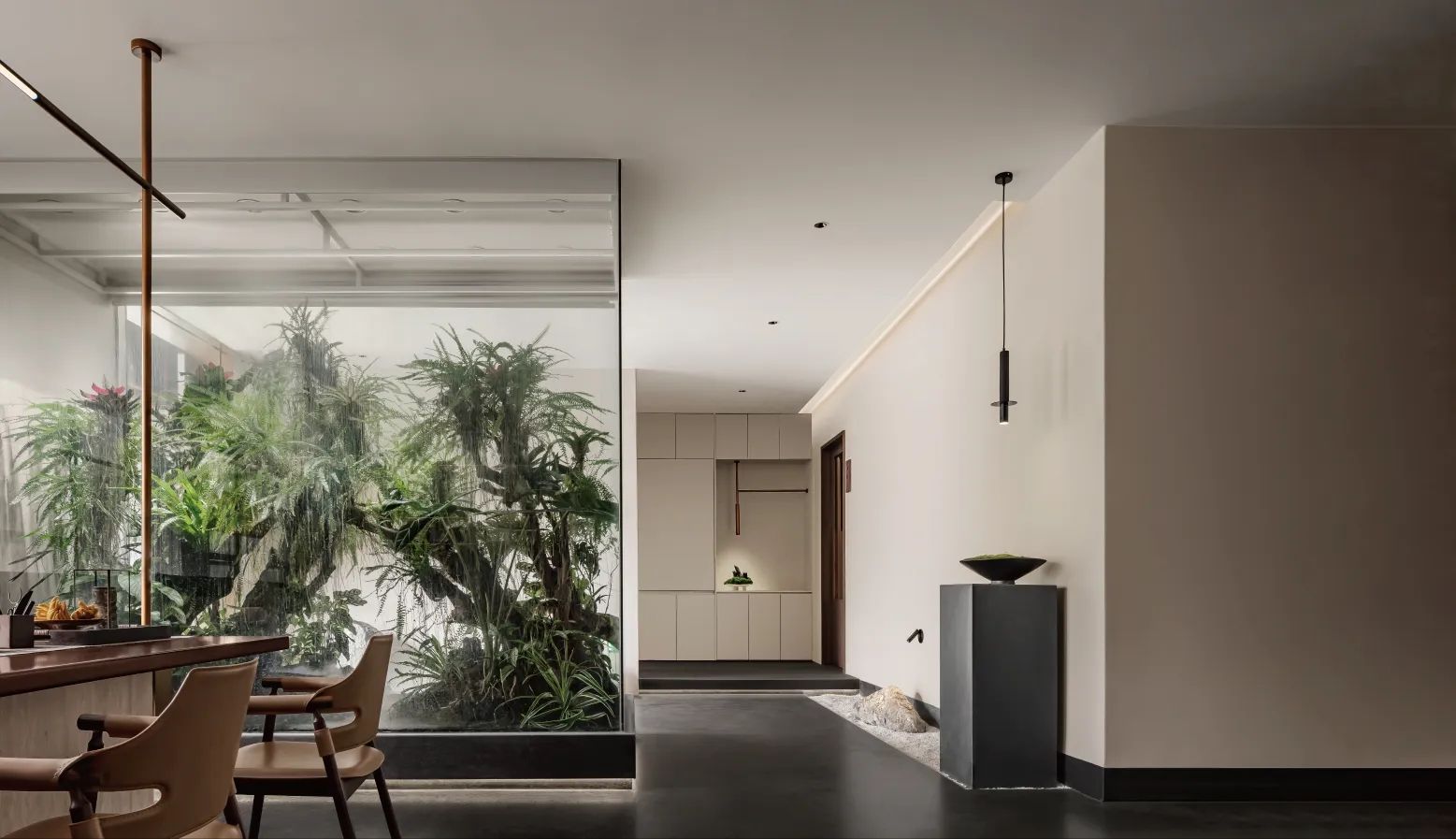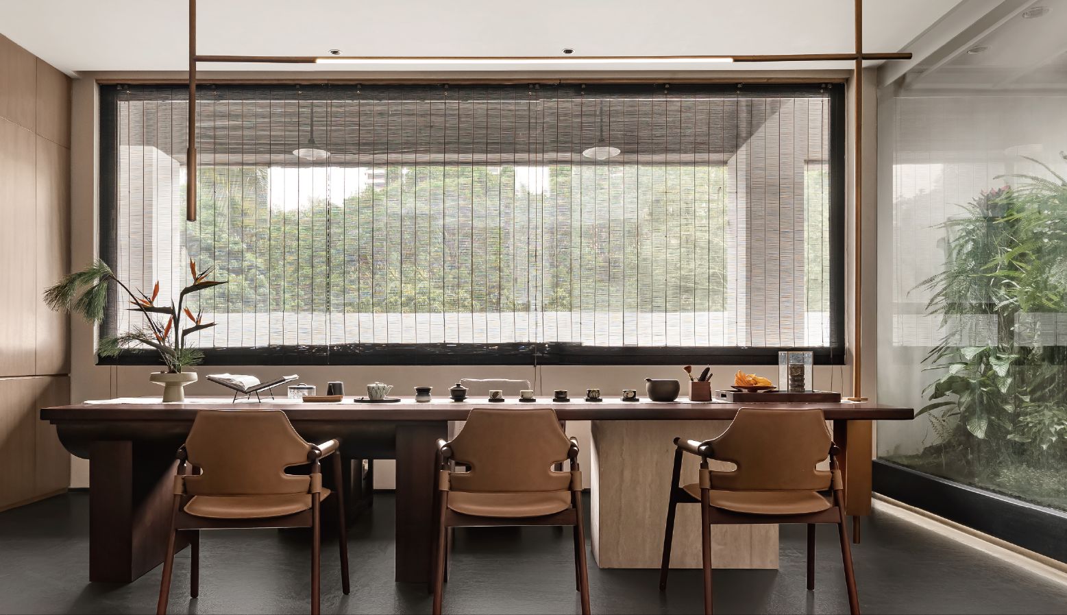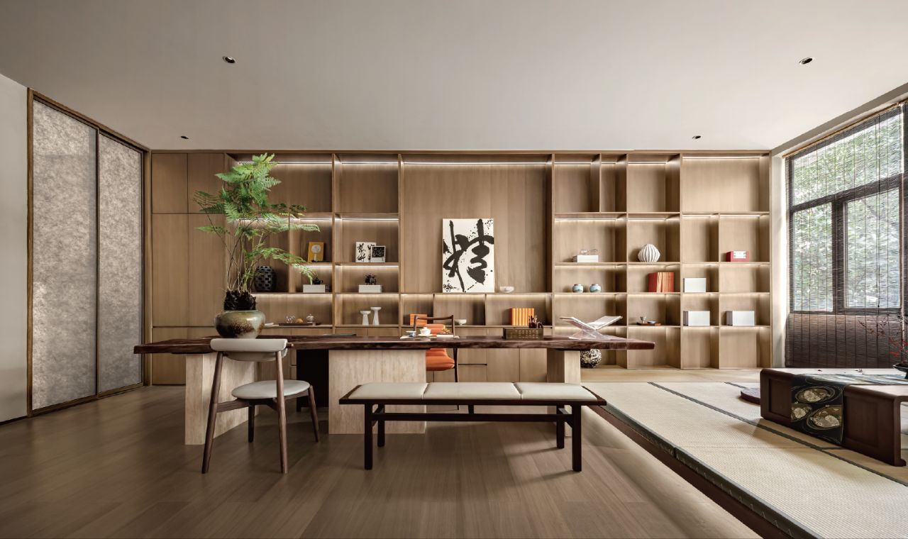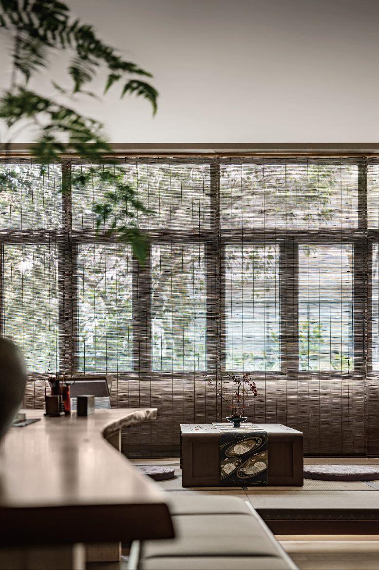 在茶室空间中,我们通过灯光的布置、材质的纹理质感以及空间的布局,共同构建了光与空间之间的紧密联系,通过光的投射获得明暗对比,为茶室赋予了一种特有的氛围和气质,进而展现出独特的美学价值。