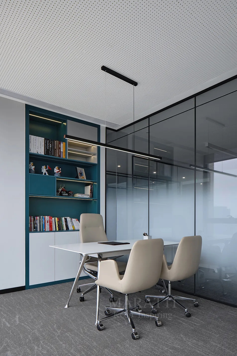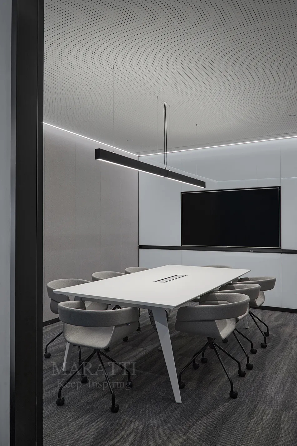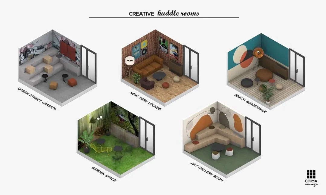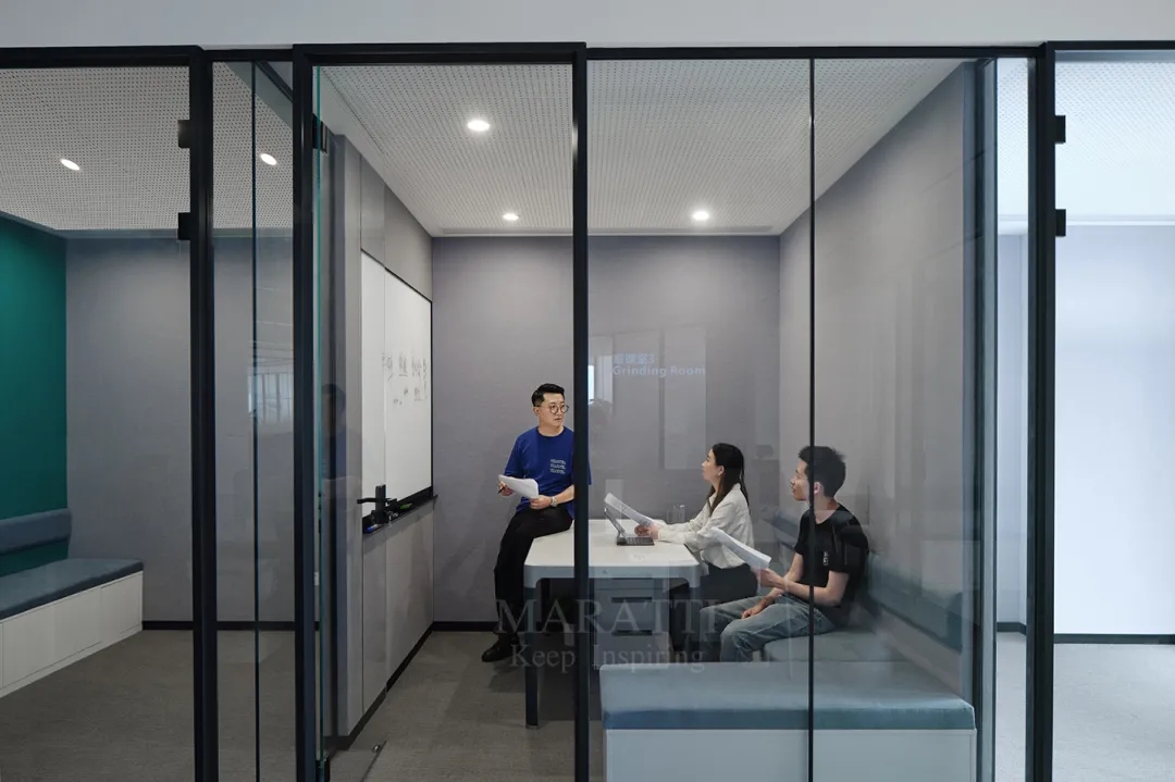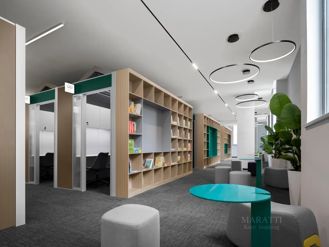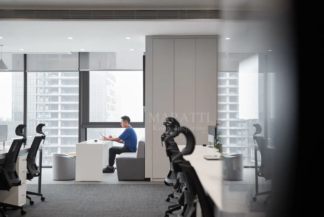 MARATTI 以黑色、白色、绿色为主色调打造办公空间,以实用空间和闲暇空间串联将空间划分,打造开放、活力的复合工作空间。来自 MARATTI 的 COCO椅子、MARS椅子、ELLA椅子、TANK可移动置物茶几,在办公空间中展示了出色的实用性与高颜值,为空间增加亮点的同时也有助于团队交流及激发创新思维。