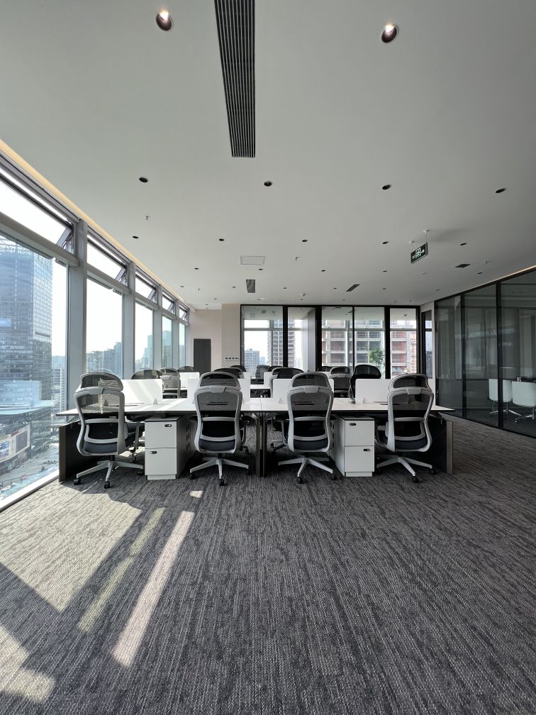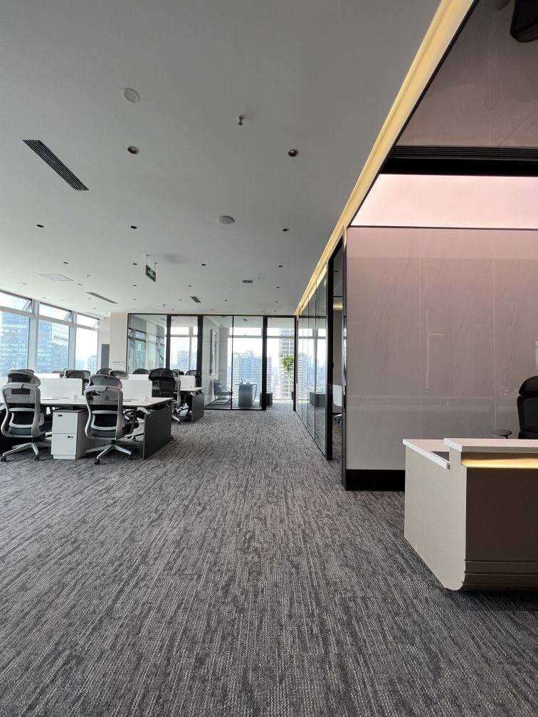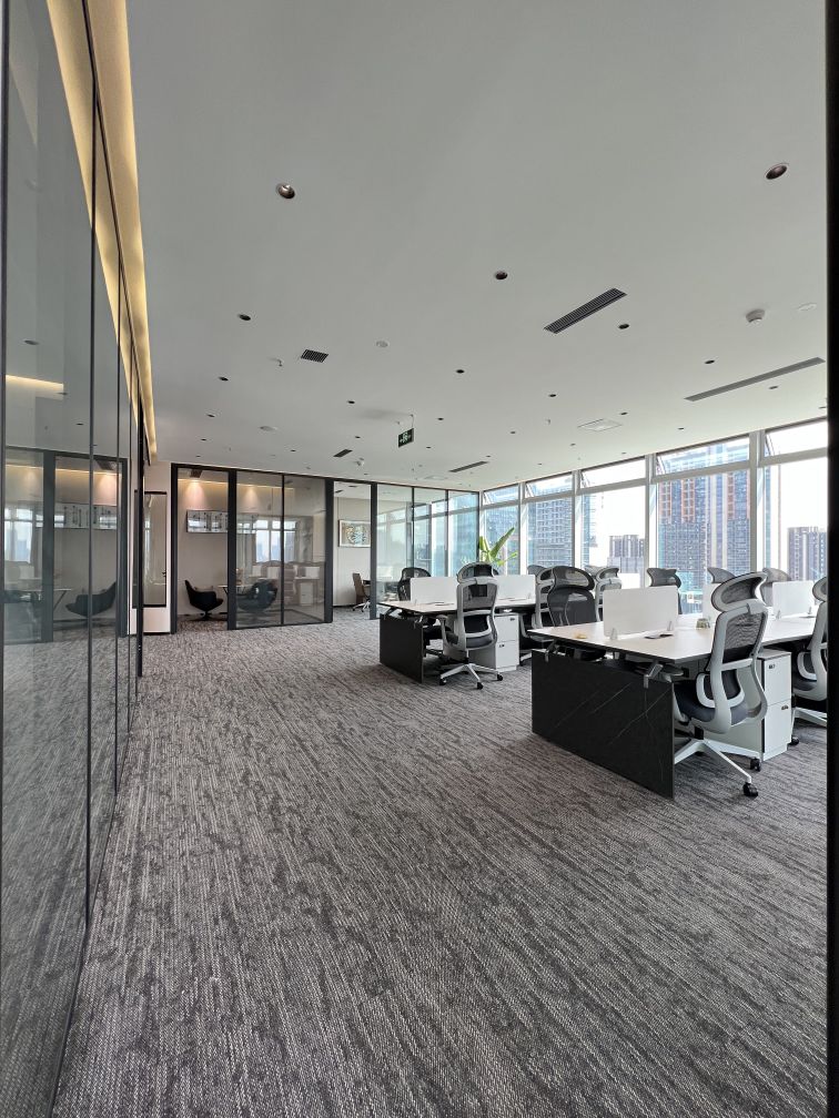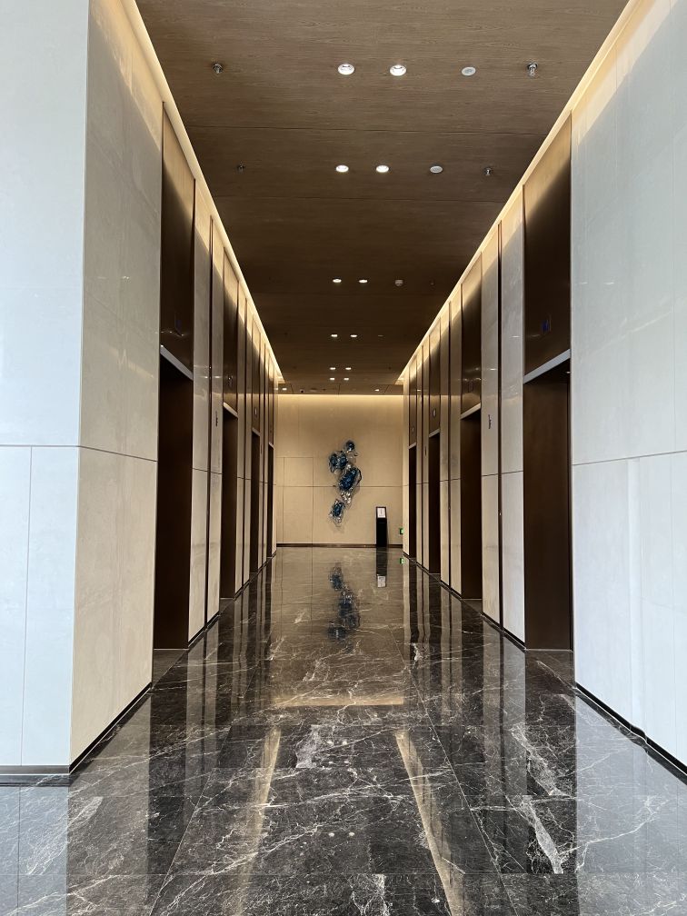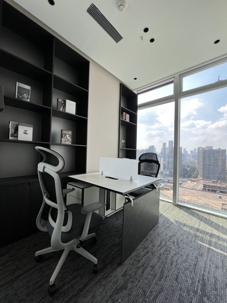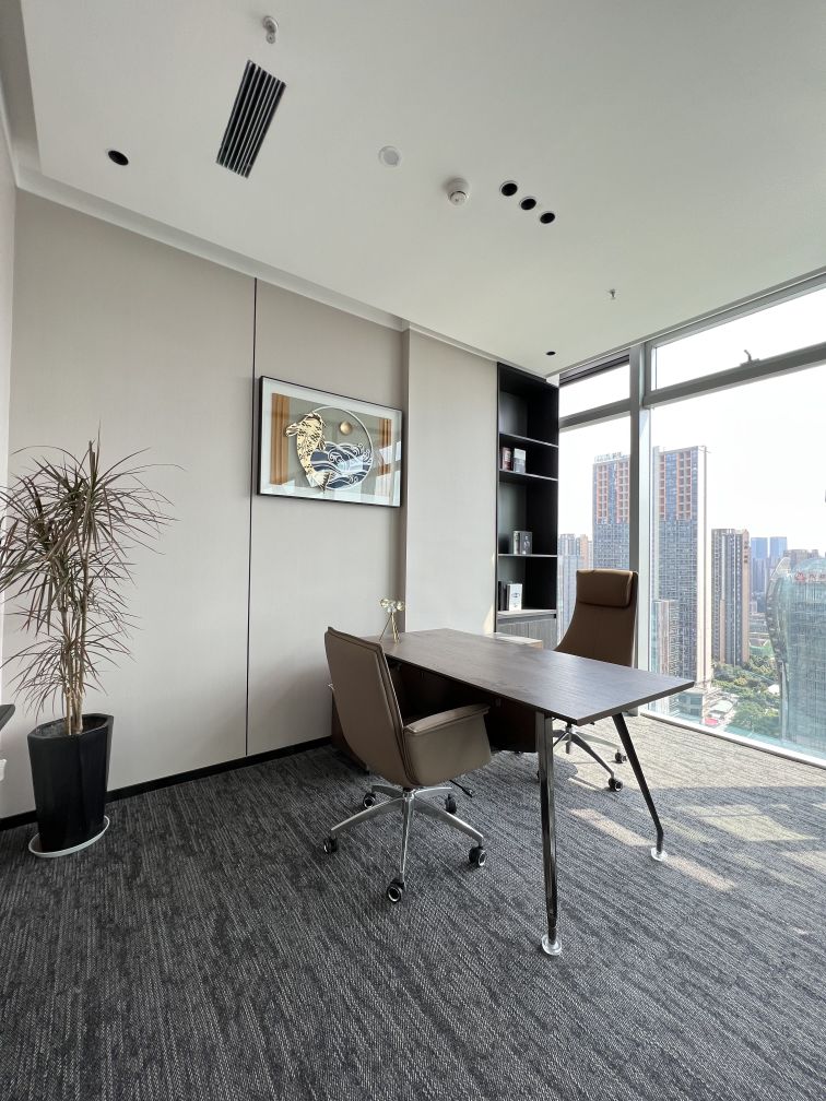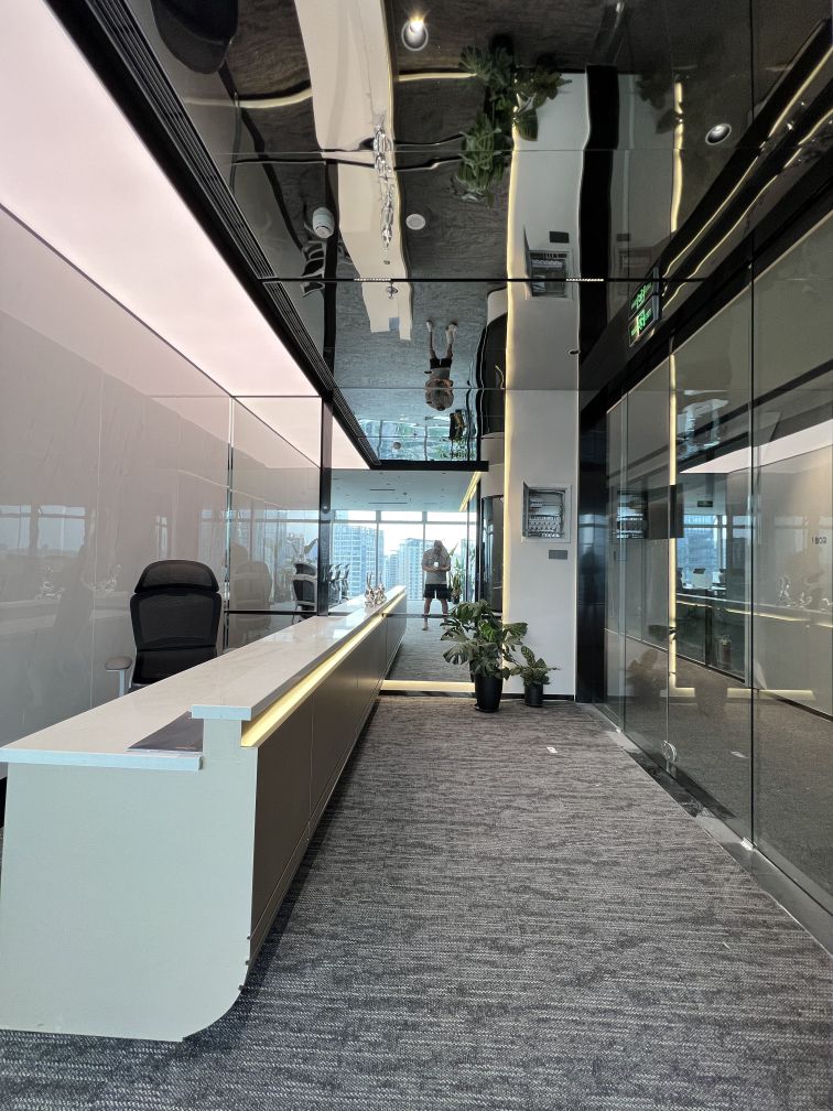 设计师取其“静”的精神,将沉静淡雅的风格立为此次设计任务的“文眼”,希望通过构建这样一间办公空间,来匹应金杜律师的专业气质。简洁的线条、素雅的色调,使得每一位进入这间办公室的人们都能感到舒适放松。斜向分立两侧的主题墙面呈现出拥抱欢迎的姿态,亲切而体贴。设计师将前厅的视野中心留给了等候区,访客在这里落座,窗外正是金陵壮阔的天际线,动静结合、内外呼应,譬喻着金杜律师与客户合作发展的前景长远辽阔,必达于无限。