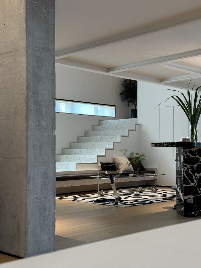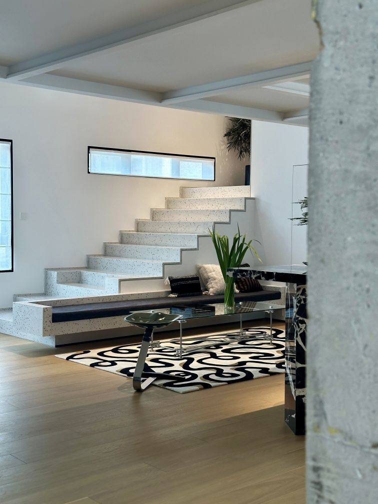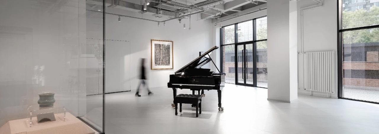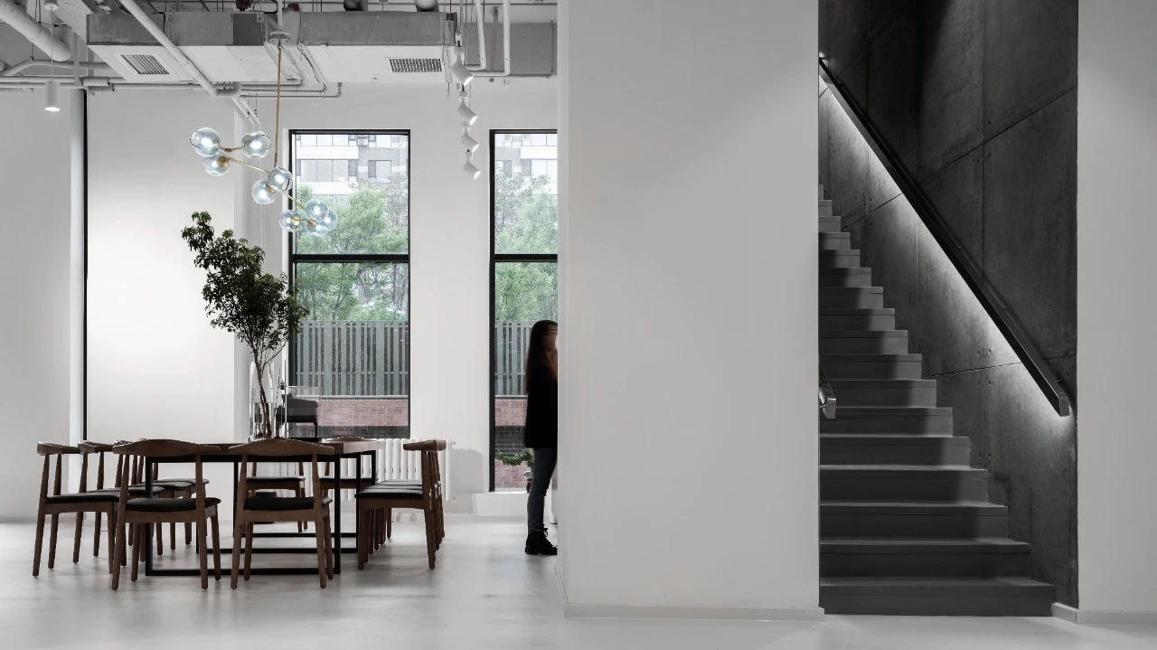 项目作为多功能复合业态空间,建筑总面积2100㎡,一层为接待前厅区,会客休憩区,艺术收藏区,钢琴音乐厅,茶饮餐厅区、独立办公室;二层为办公区域。 业主是著名制片人,从事内容创造行业多年,希望能在这方寸天地中表达自己对审美与文化的直觉。设计师以纷繁空间譬喻家的容器,介于灵动与静谧之间,删繁就简,向美而生。