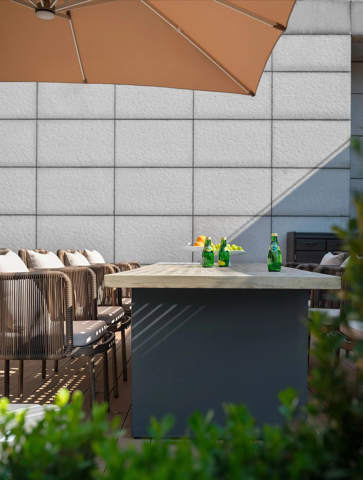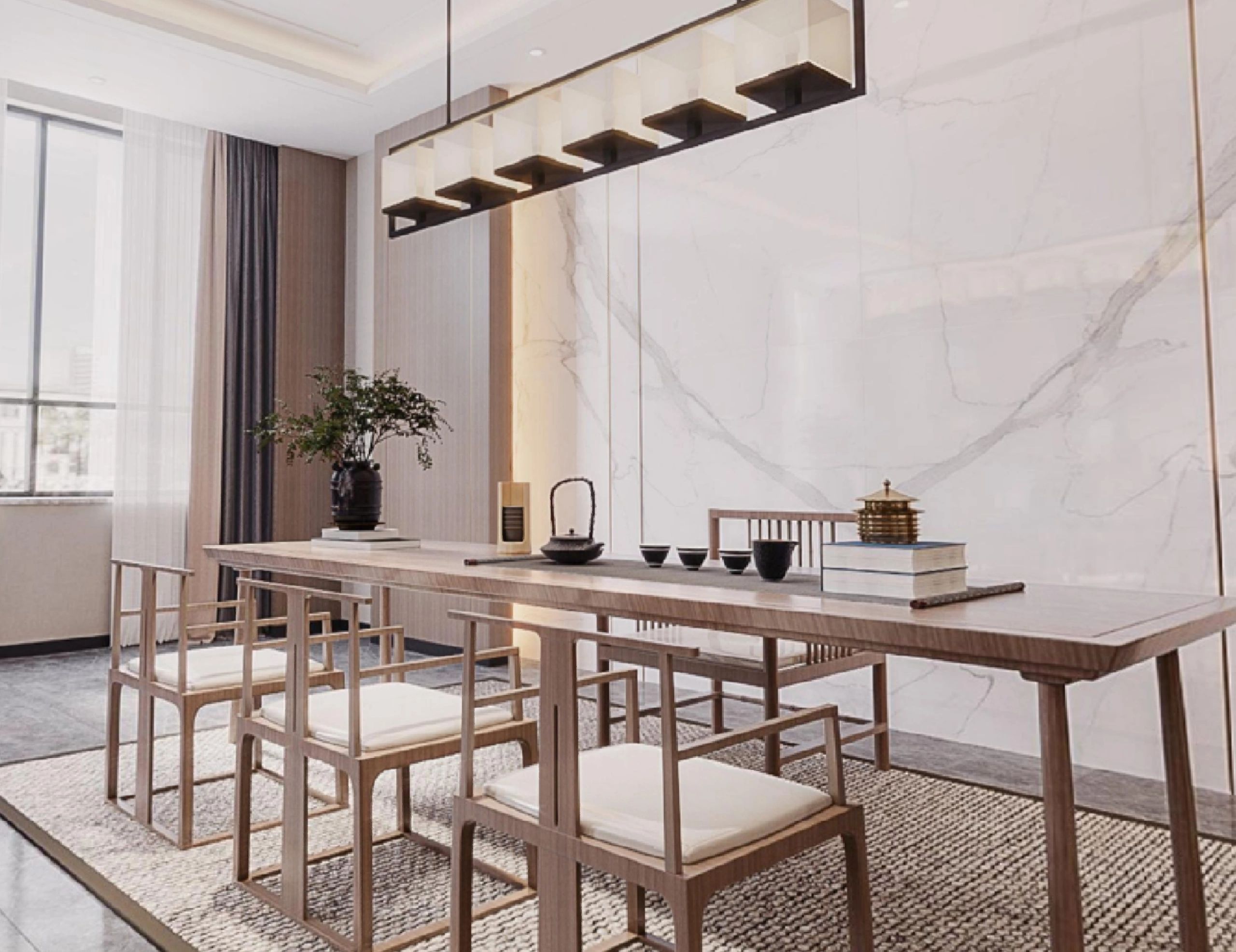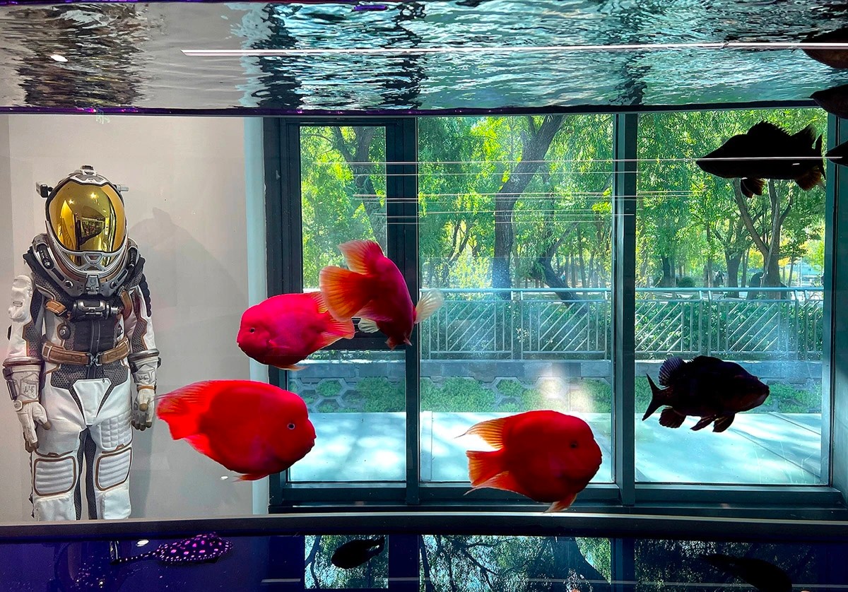 “疏影横斜水清浅”,流光无声,浮沉错列,廊道两侧,树影的斑驳与鱼水的明澈相对应,素描出雅致与清欢的诗意之美。立面删繁就简而成的轻盈感,让光影的明暗、轻重、厚薄,都有序可循,如同电影中的造型语言,技法纯熟,直观形象,在体验者迂回踱步之时,将“潜台词”尽皆吐露。