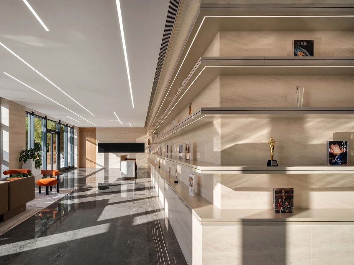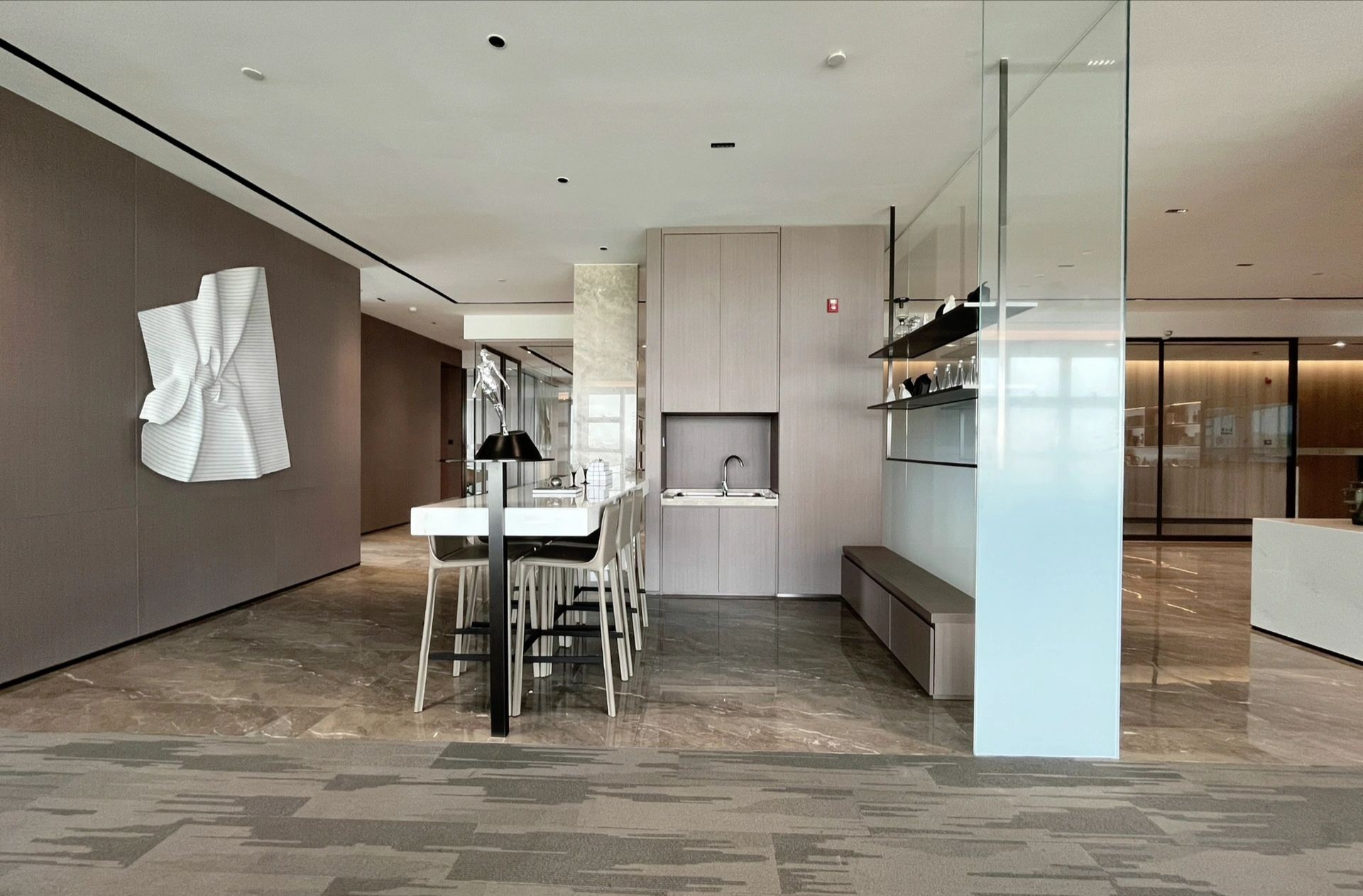 设计师将现代都市生活的缩影,浓缩进多元化的办公场域,以直线界面的方式叠加组合空间,并以沉浸式的影像化手法,重新梳理人与物质实体的连接脉络,助推不同存在实体的深度连接。