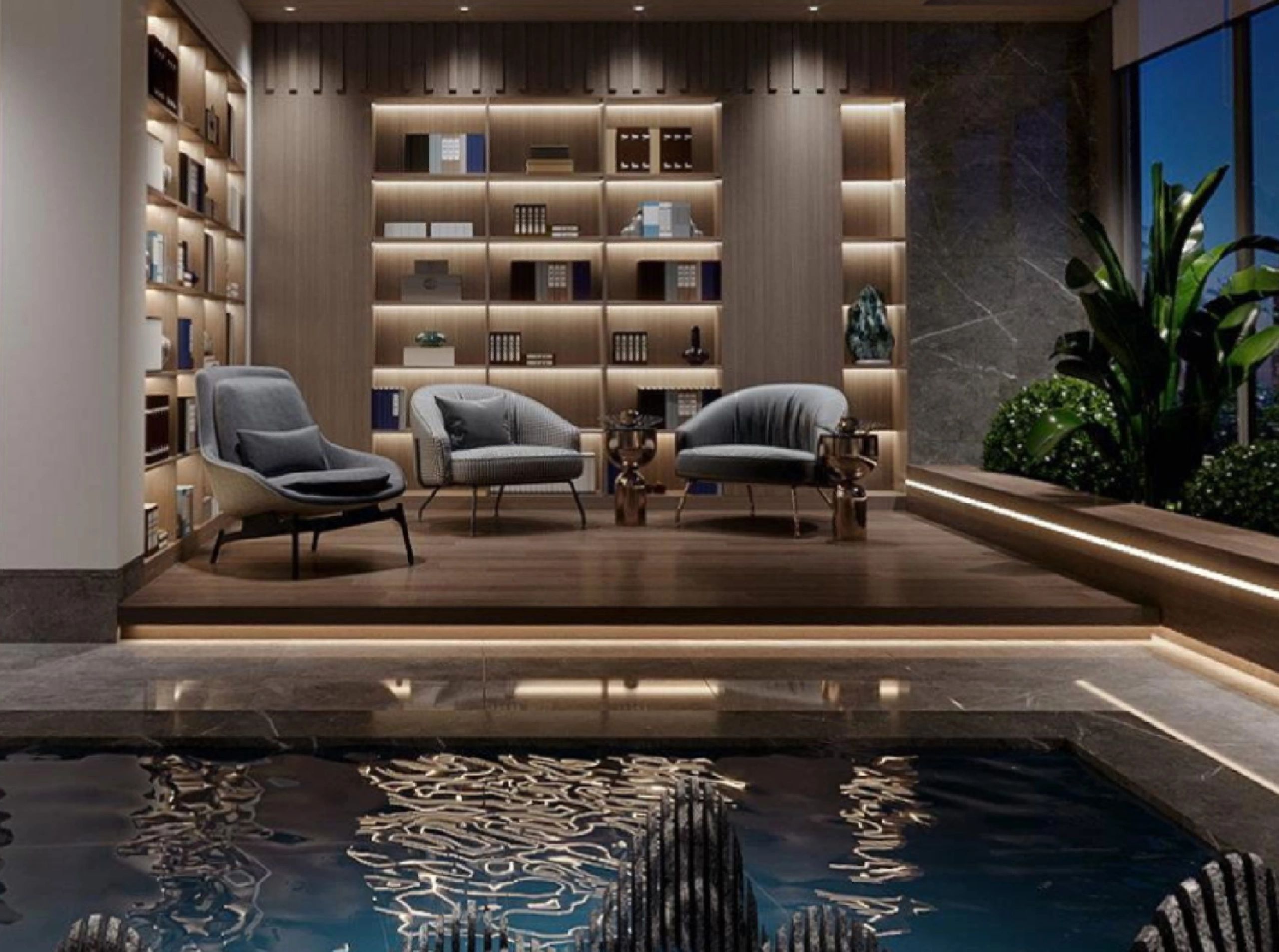 光从自然界来,自带晕染情景的“天赋”,将生活美学和盘托出,连接艺术感知与实际生活,使空间的体验感具有无限可能性。设计师在前厅区域,通过对自然光线的运用,凸显空间的清晰布局,触动人的视觉感官,演绎通透、开放之境的魅力光影。