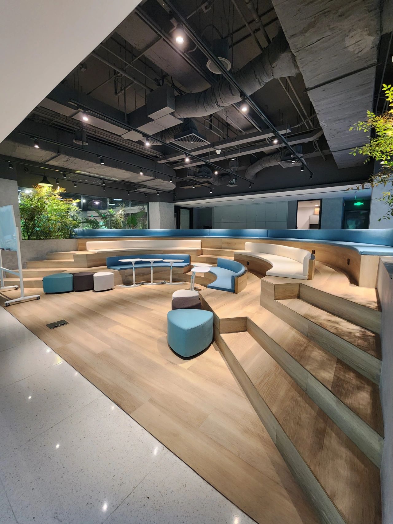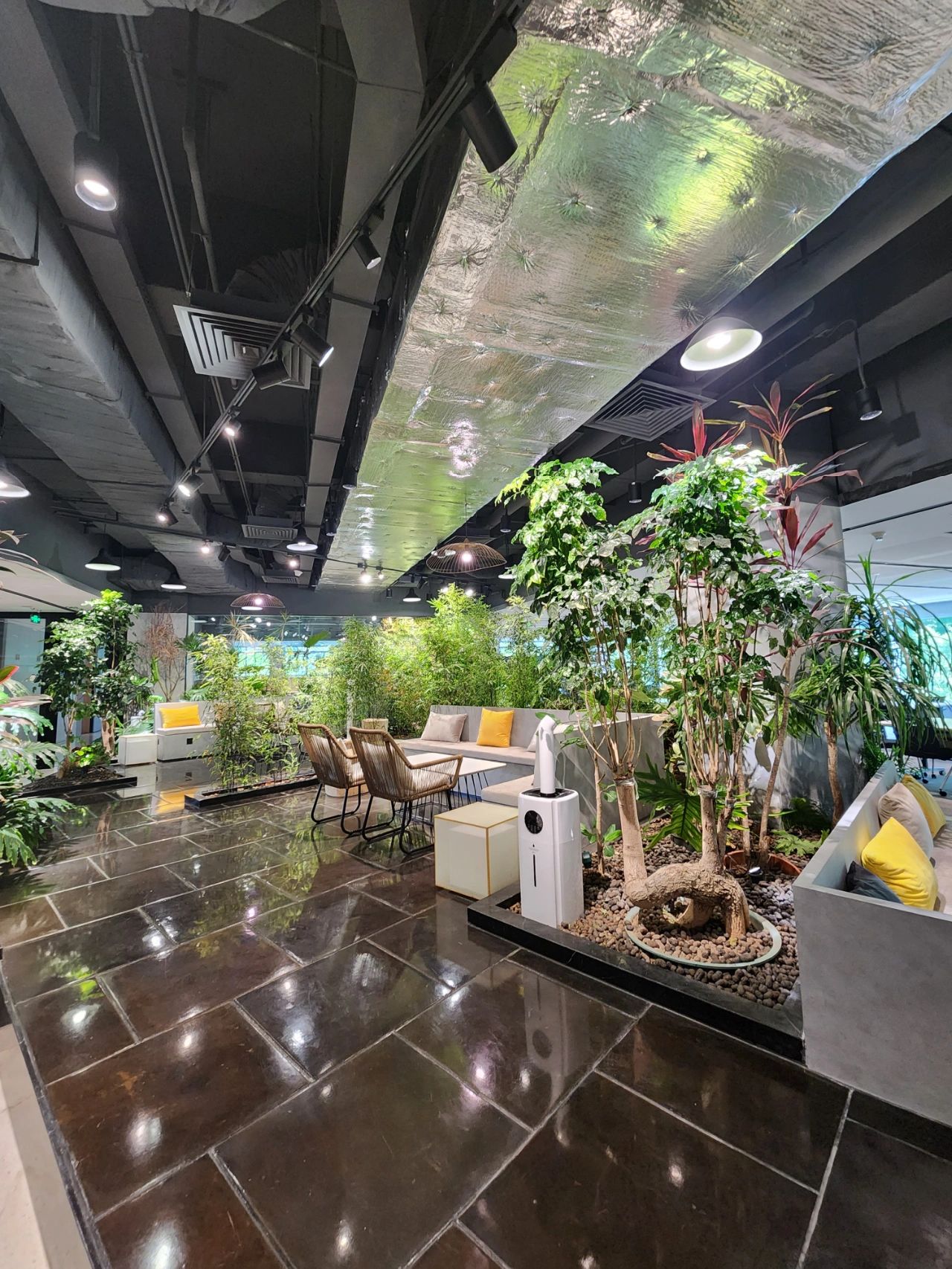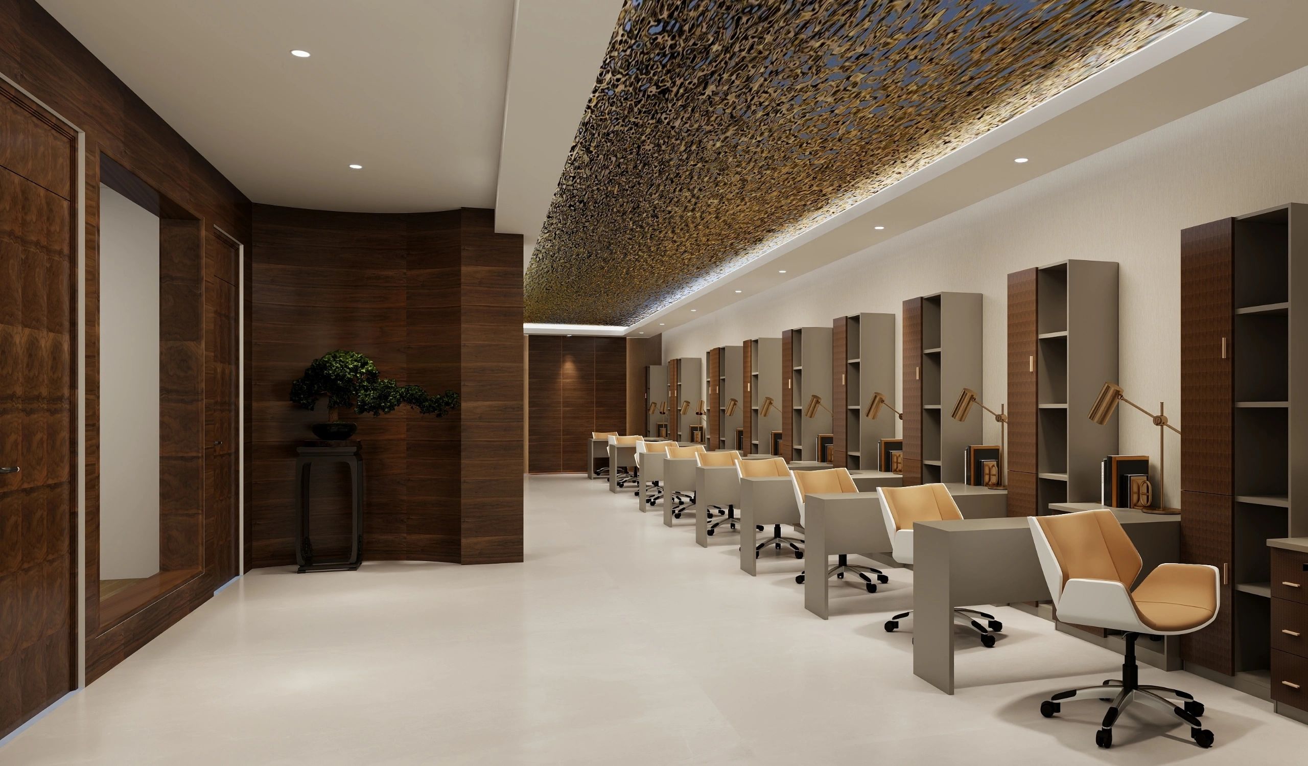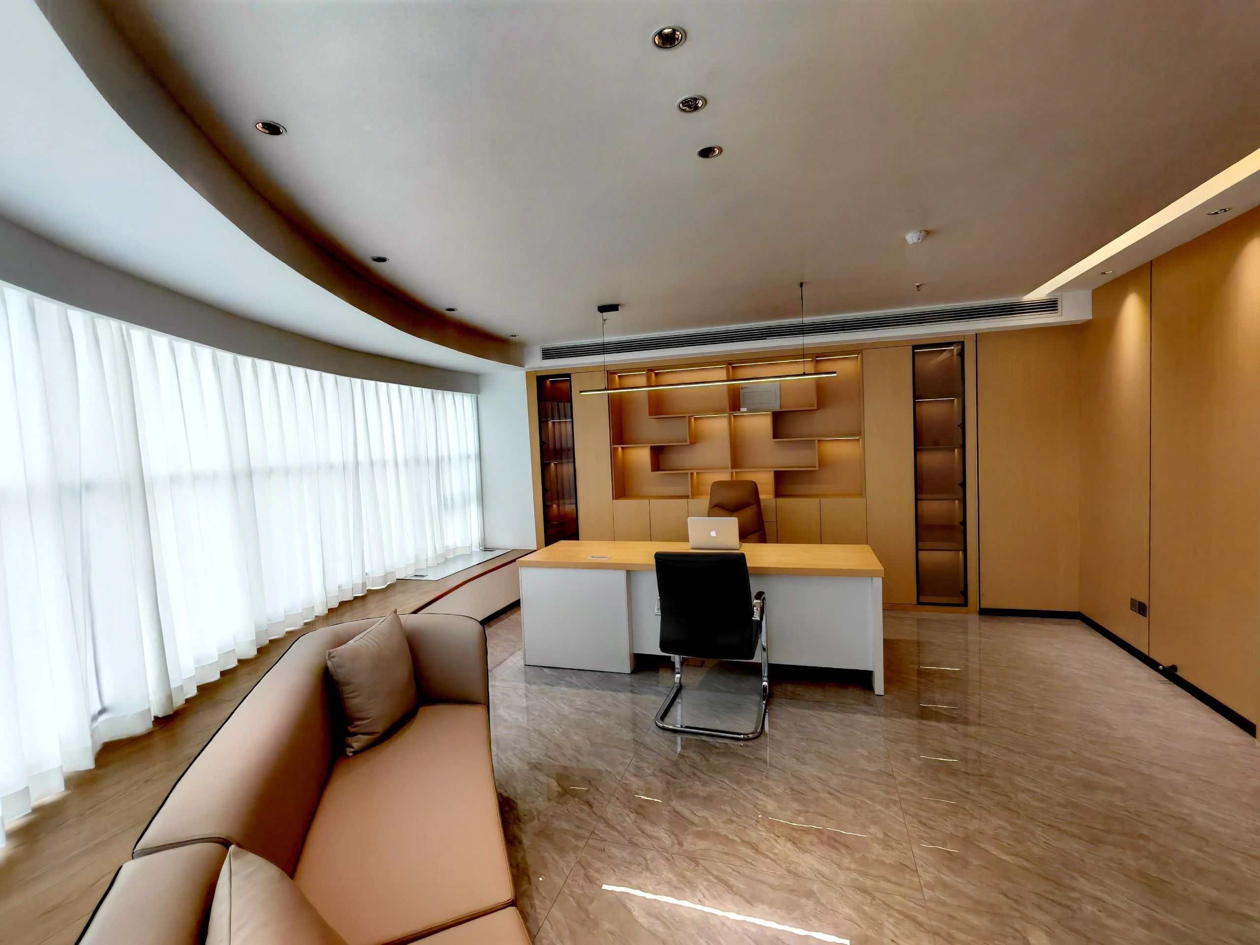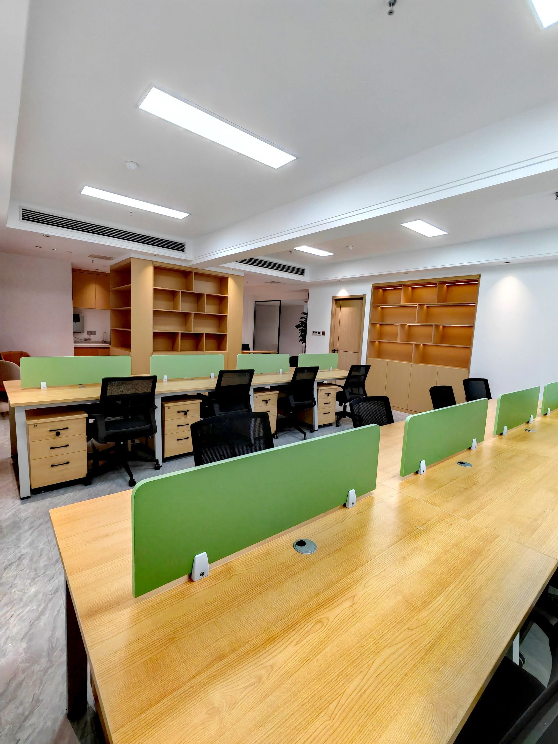 办公空间的基调是理性,带着冷静的思考,同时迸发思想性与活跃性,激发感性的领悟。墙顶地以干净的白色作为空间主基调,木饰面、绿植墙与办公家具适配空间氛围,营造理性与感性结合的办公空间。在空间构造上,设计团队尝试用建筑的手法去表达,通过拆除前厅区域的楼板,最大限度的引入自然光线,营造出通透明亮的接待区域,拔高的竖向空间带来了强烈的视觉感受,同时串联起整个场域。开放式的办公空间需要一个清晰的布局和分区,以确保每个人都可进行视线交流。
